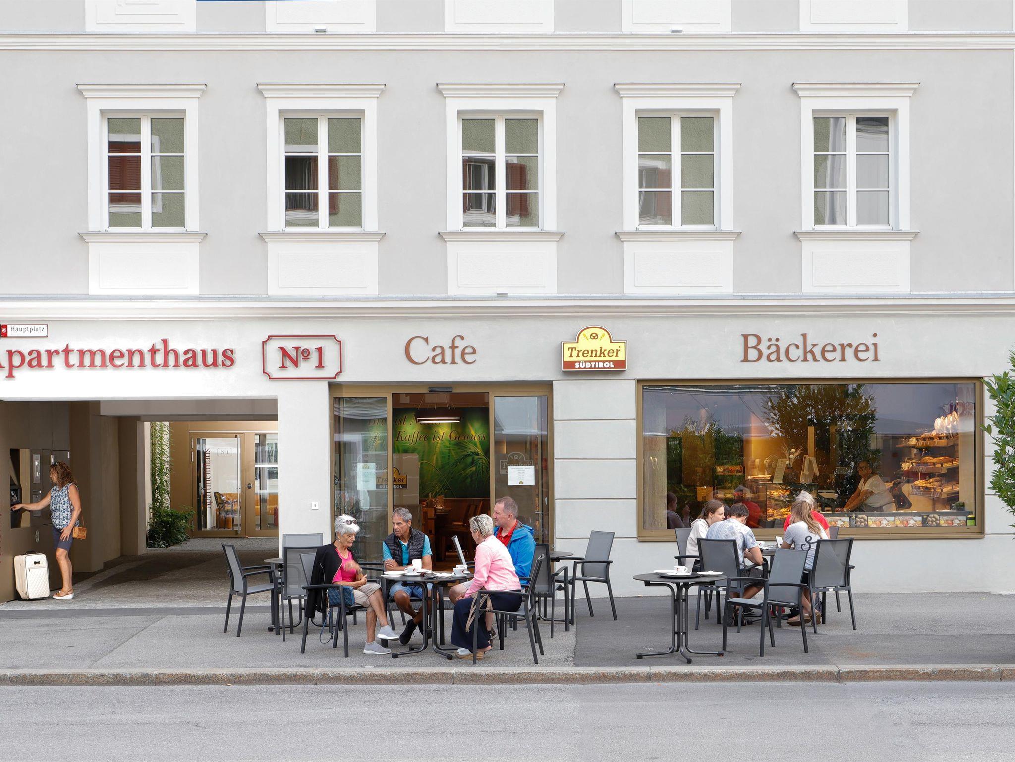 Mit dem hauseigenen Lift gelangen Sie direkt in die Bäckerei Trenker, wo Sie in gemütlicher Atmosphäre frühstücken können.