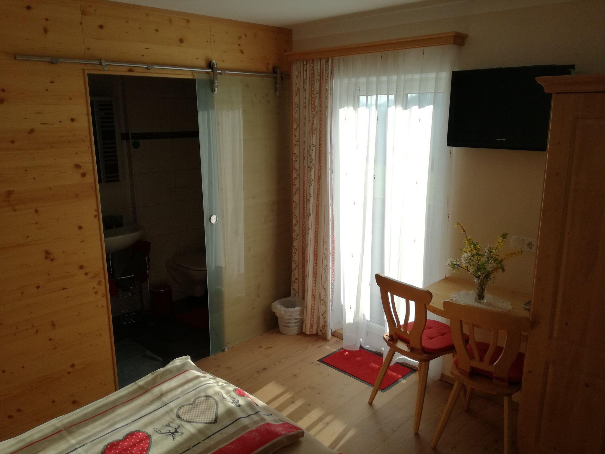 Das Zimmer Seeblick (16m²) mit einem Doppelbett 180x200cm ist westseitig gelegen mit Balkon und herrlicher Aussicht auf den Lunzersee. Das gemütliche Zimmer ist mit Vollholzboden und Vollholzmöbeln ausgestattet. SAT-TV, kostenloses WLAN und ein Kühlschrank sind vorhanden. Das Badezimmer ist mit einer großen Dusche und einem WC ausgestattet.