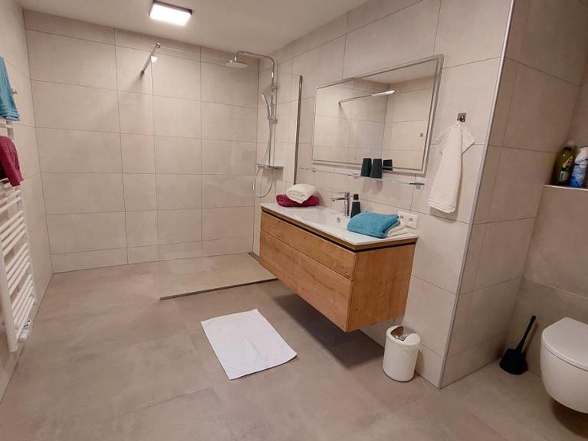 Sie besteht aus einem großzügigen Vorraum, einer gut ausgestatteten Küche, einem Ankleideraum mit großem Kasten, Wohn-Esszimmer mit ausziehbarer Schlafcouch, Schlafbereich mit einem Doppelbett (abgetrennt im Wohn-Esszimmer), 1 Schlafzimmer mit 2 Einzelbetten (bei Bedarf zusammenstellbar), Bad mit Dusche und einem separatem WC.