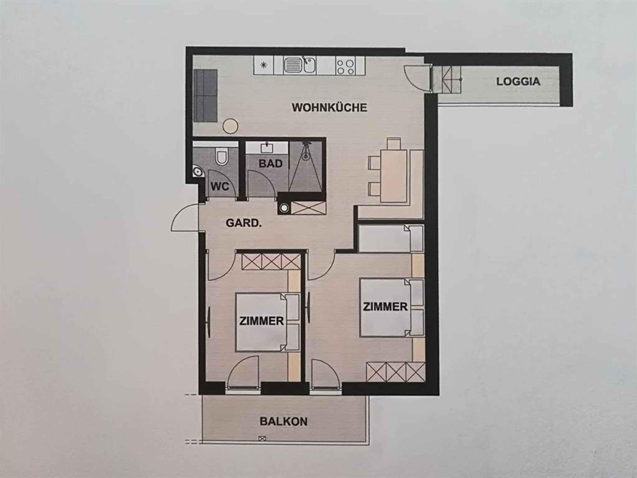 voll ausgestatteten Wohnküche mit Loggia und 2 getrennten Schlafzimmer mit Balkon!