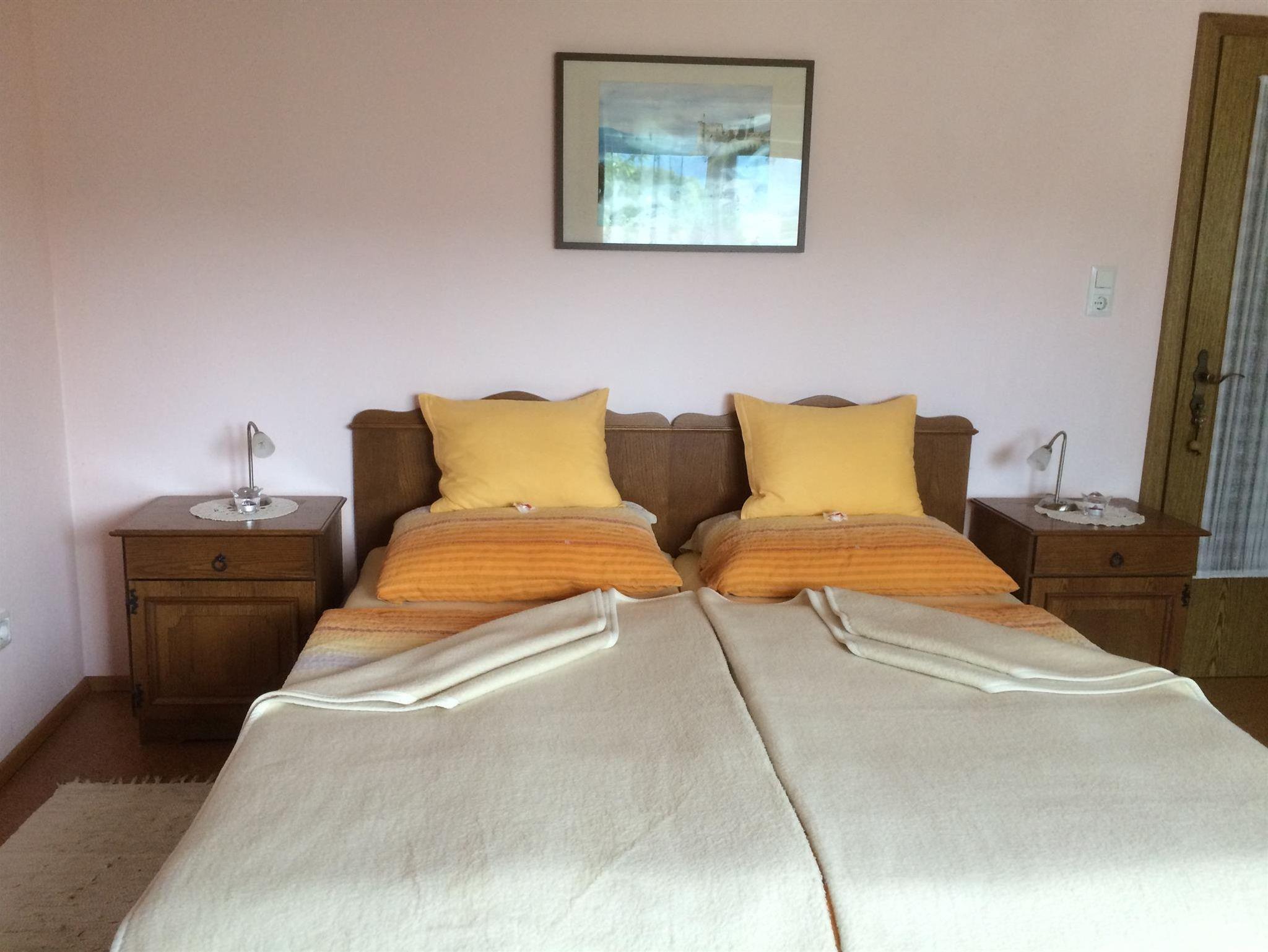 Geräumiges Doppelzimmer mit Schlafcouch, Sat-TV/Flachbild und Blick ins Grüne.