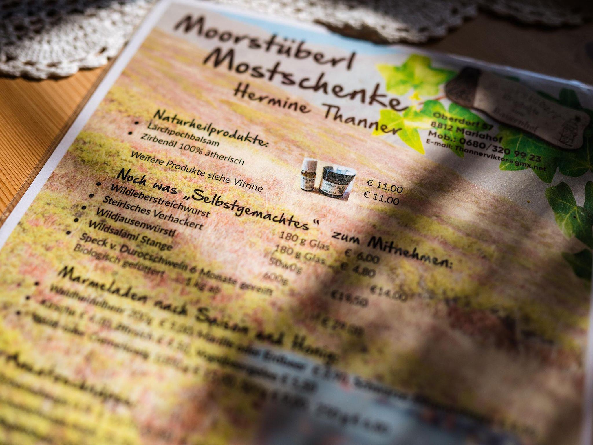 Auf Wunsch bieten wir diese Ferienwohnung auch mit Frühstück mit Bioprodukten vom Hof, an. Weiters stehen Ihnen ein Gartengriller, Schaukel, Liegewiese, Bücher und Spiele zu Verfügung. Wir bieten Ihnen ein reichhaltiges Frühstück mit hofeigenen Produkten, hausgemachte Bio- Mehlspeisen.Im Moorstüberl wird Most vom Streuobst aus dem Fass und eine zünftige Brettljause und viele andere selbsterzeugte Produkte serviert.