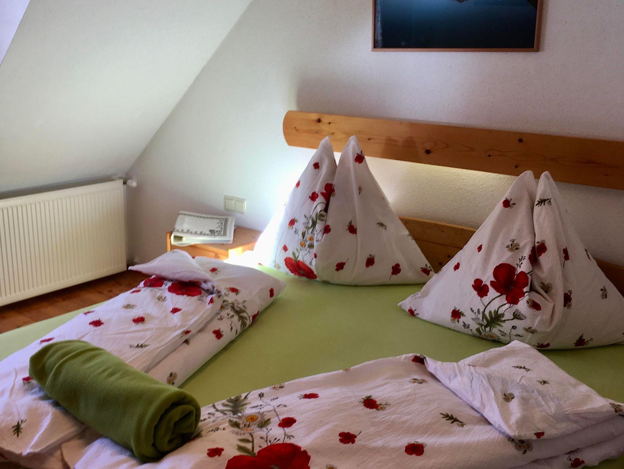 Doppelzimmer mit Bad und WC, Sat-TV, vorwiegend Massivholz, Schafwollteppiche