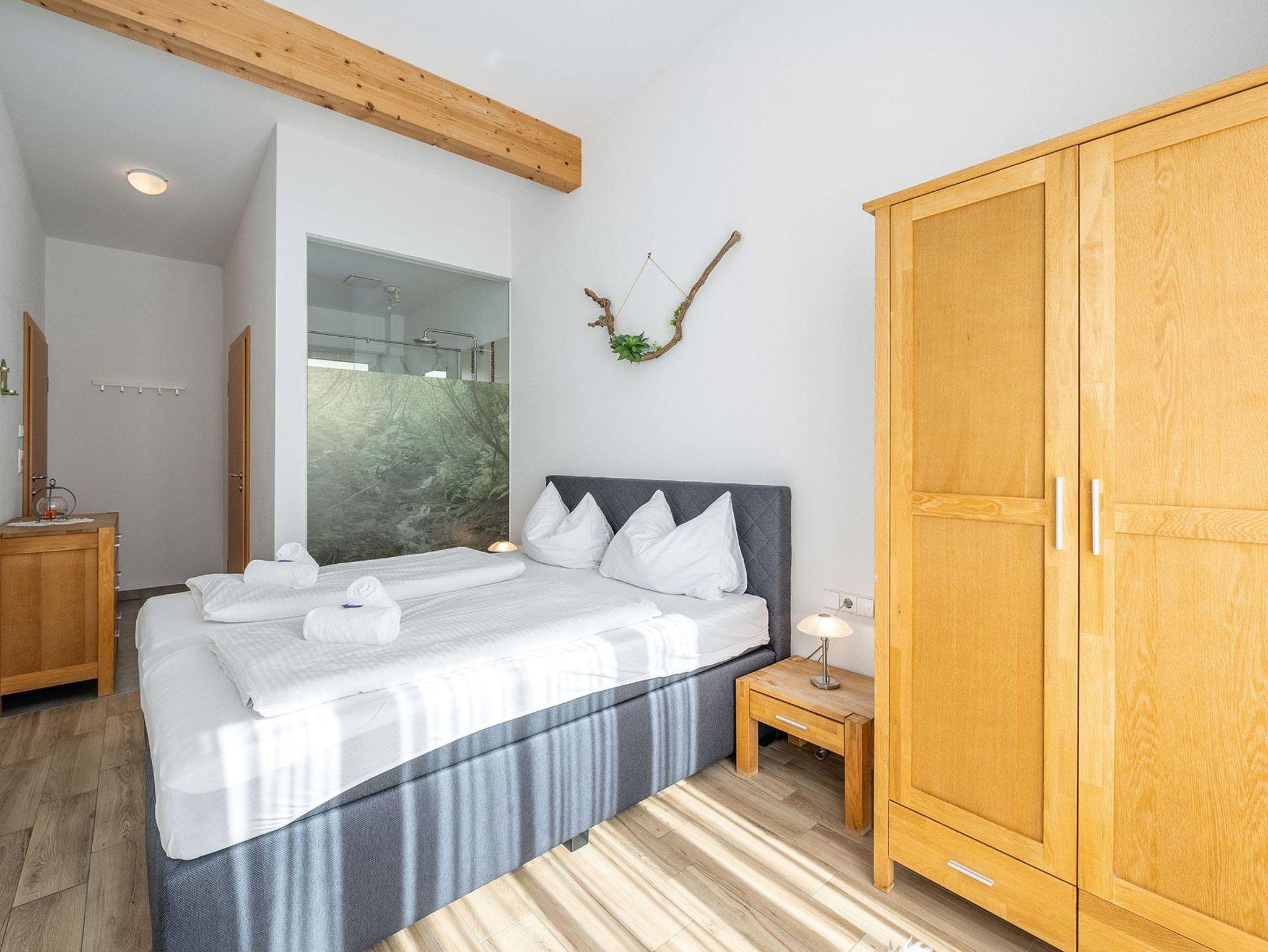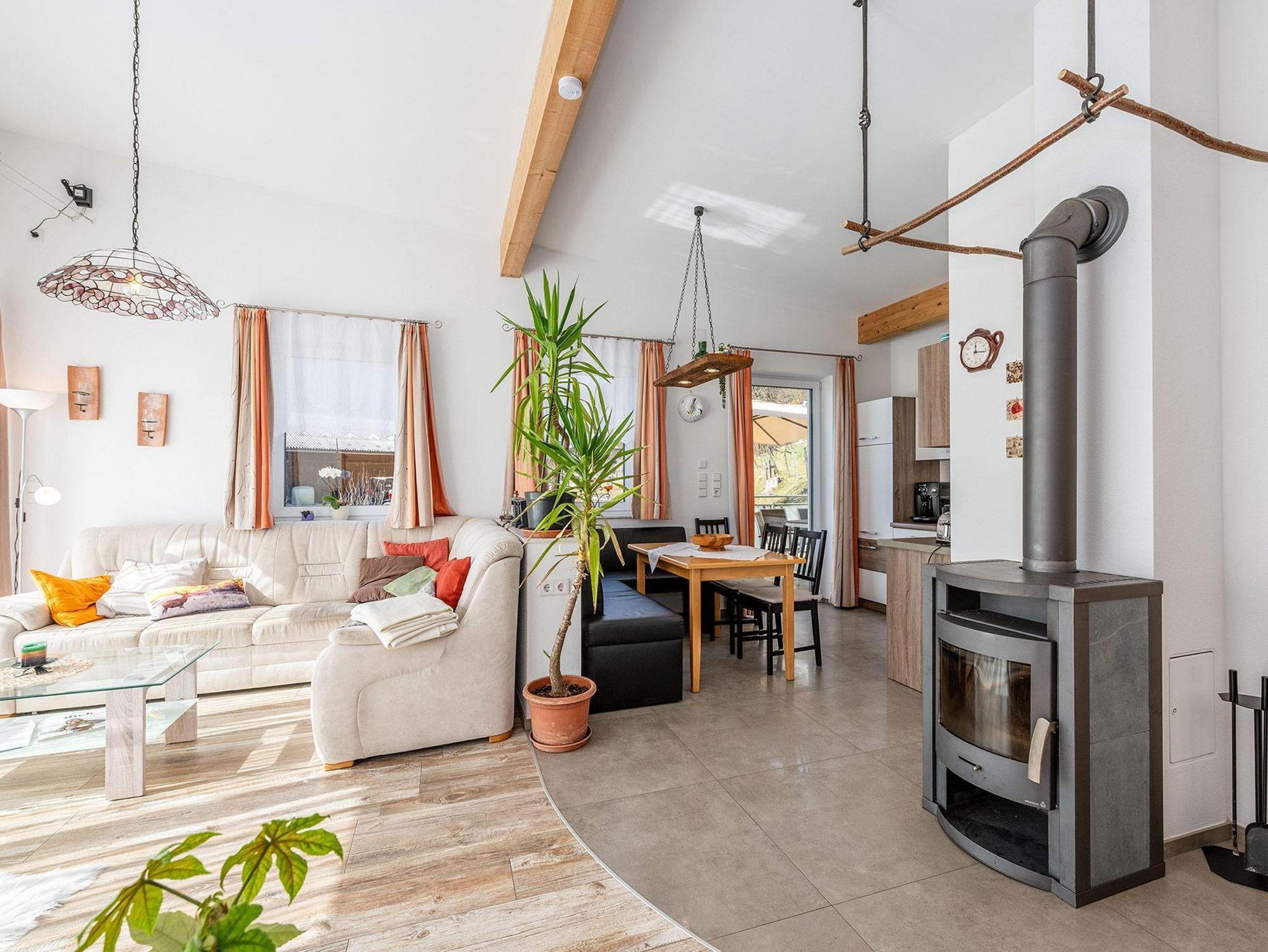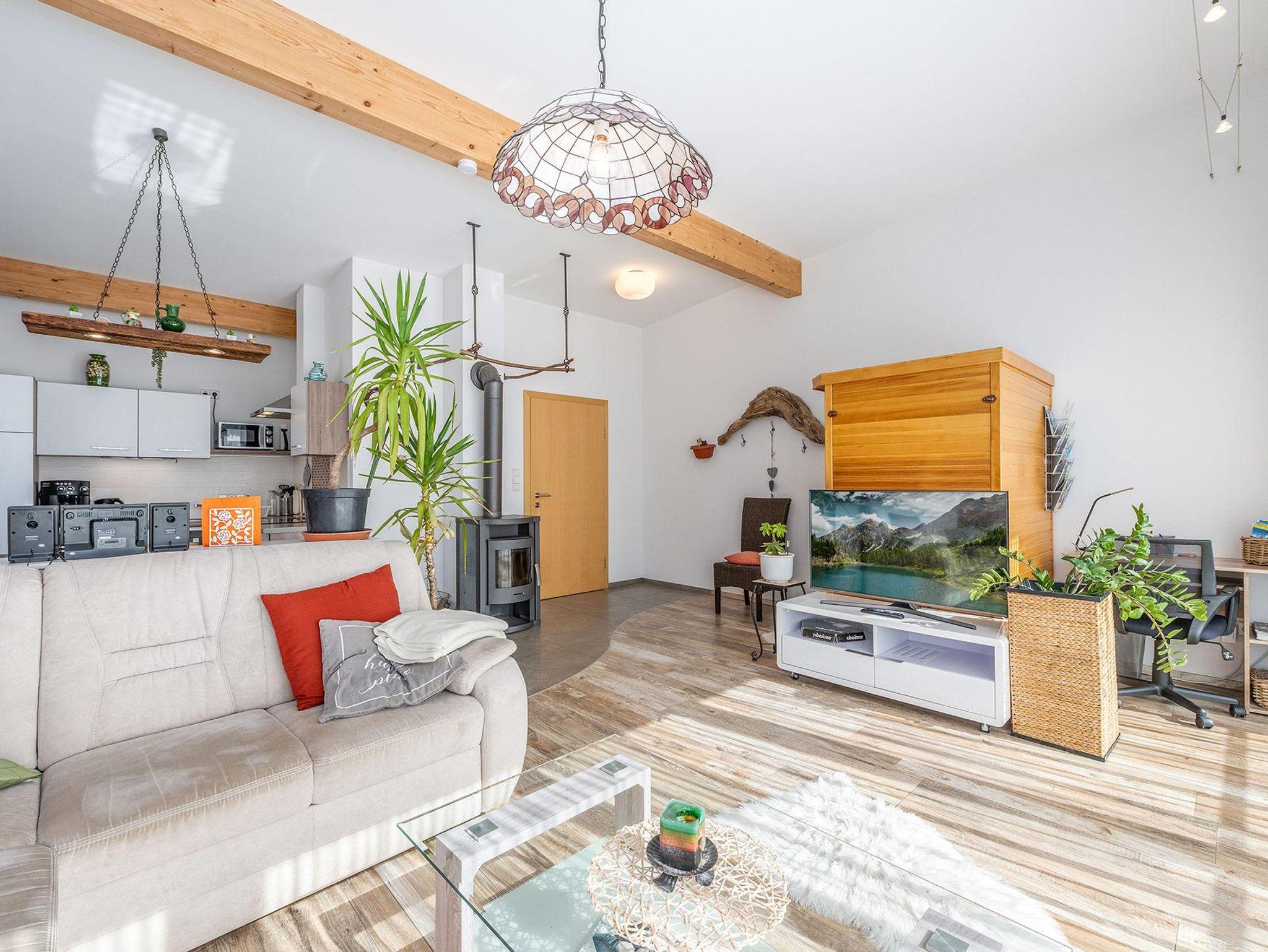 Zwei Schlafzimmer mit Doppelbetten und eigenem TV sorgen für erholsame Nächte. Zusätzlich stehen ein Zusatzbett für eine Person sowie eine Schlafcouch im Wohnzimmer zur Verfügung. Ein Highlight ist der Kaminofen, welcher genutzt werden darf – perfekt für gemütliche Abende.