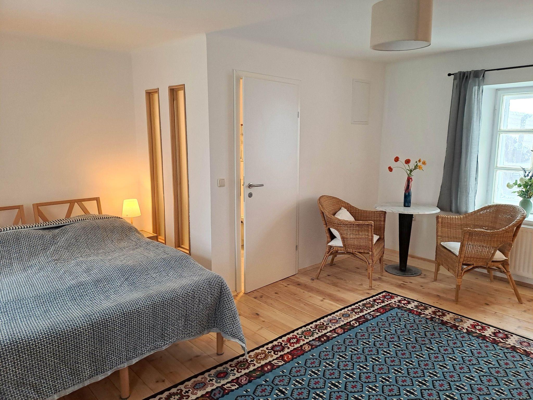 Zwei frisch renovierte Zimmer, jeweils mit eigener Dusche und WC stehen zur Verfügung. Das 2-Bett-Zimmer ist im Erdgeschoß, das Doppelzimmer im ersten Stock. Die beiden Zimmer werden durch eine gemeinsame Küche begangen, die zum gemütlichen Verweilen einlädt. Beide Zimmer verfügen auch über eine Leseecke.