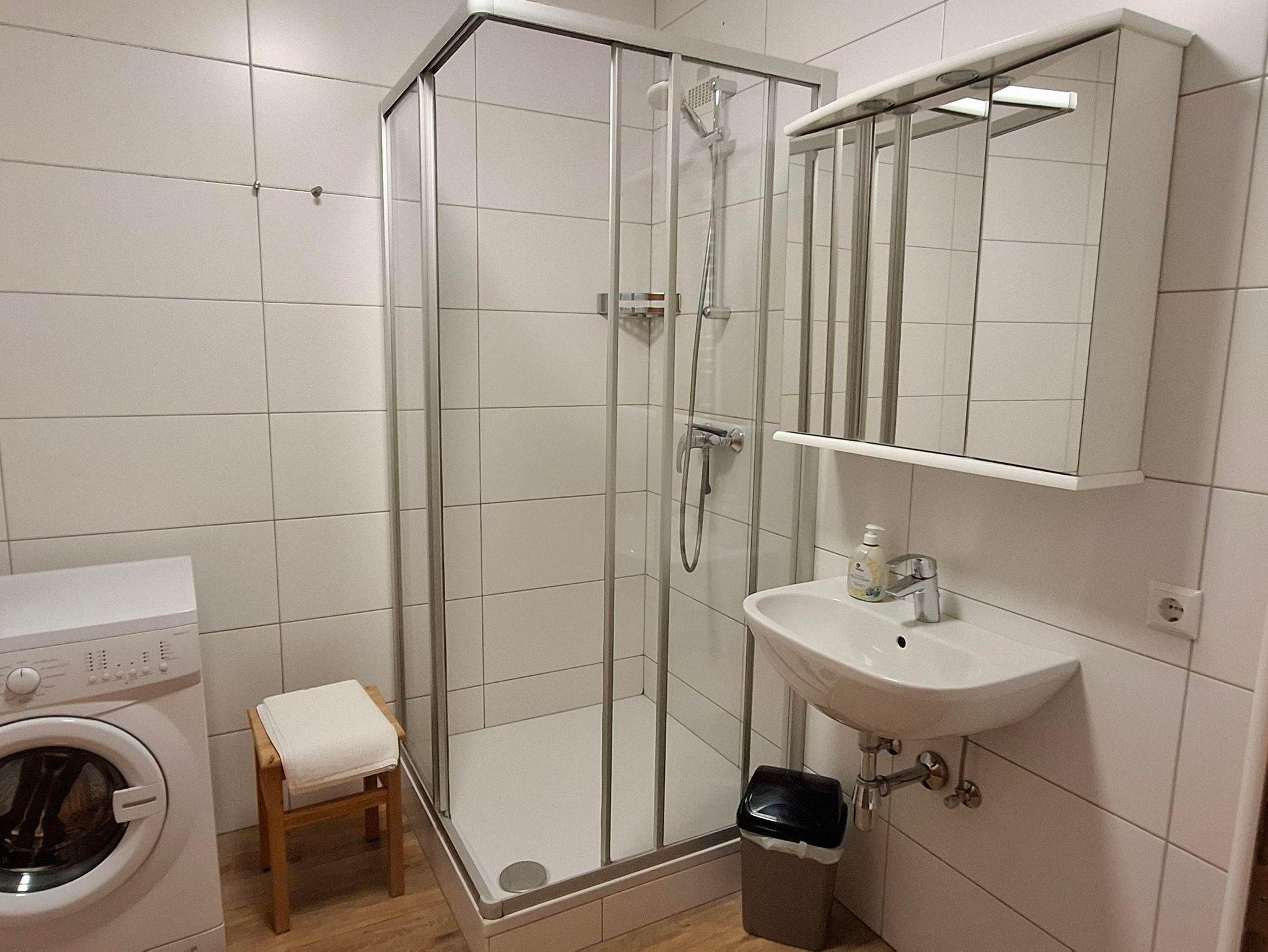 • Badezimmer mit Dusche und Waschmaschine
