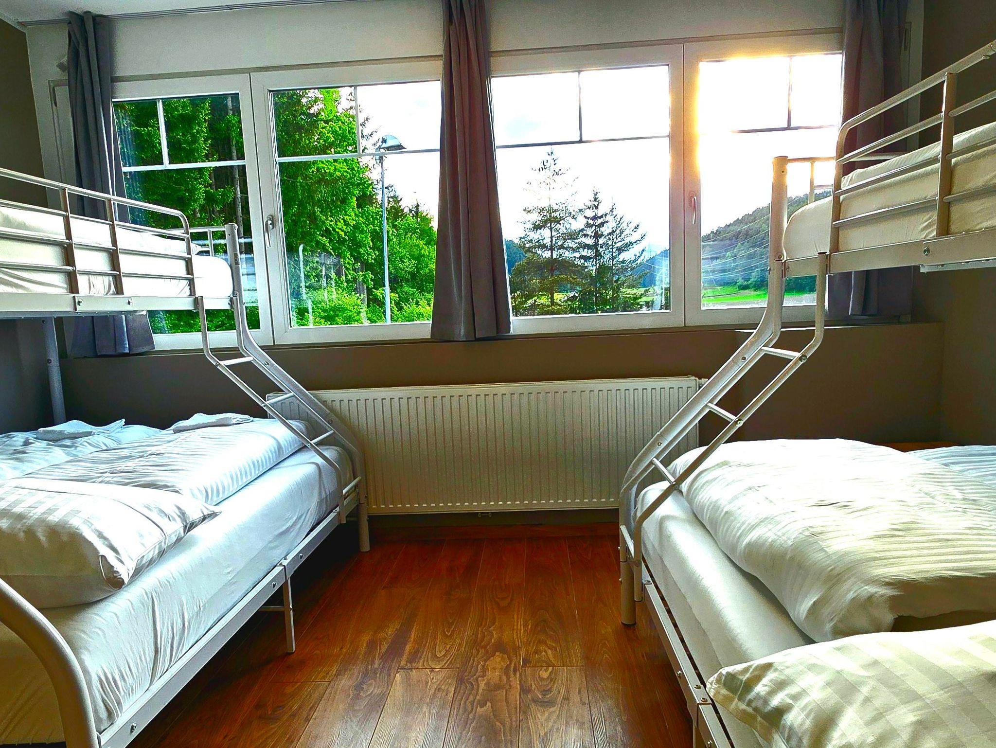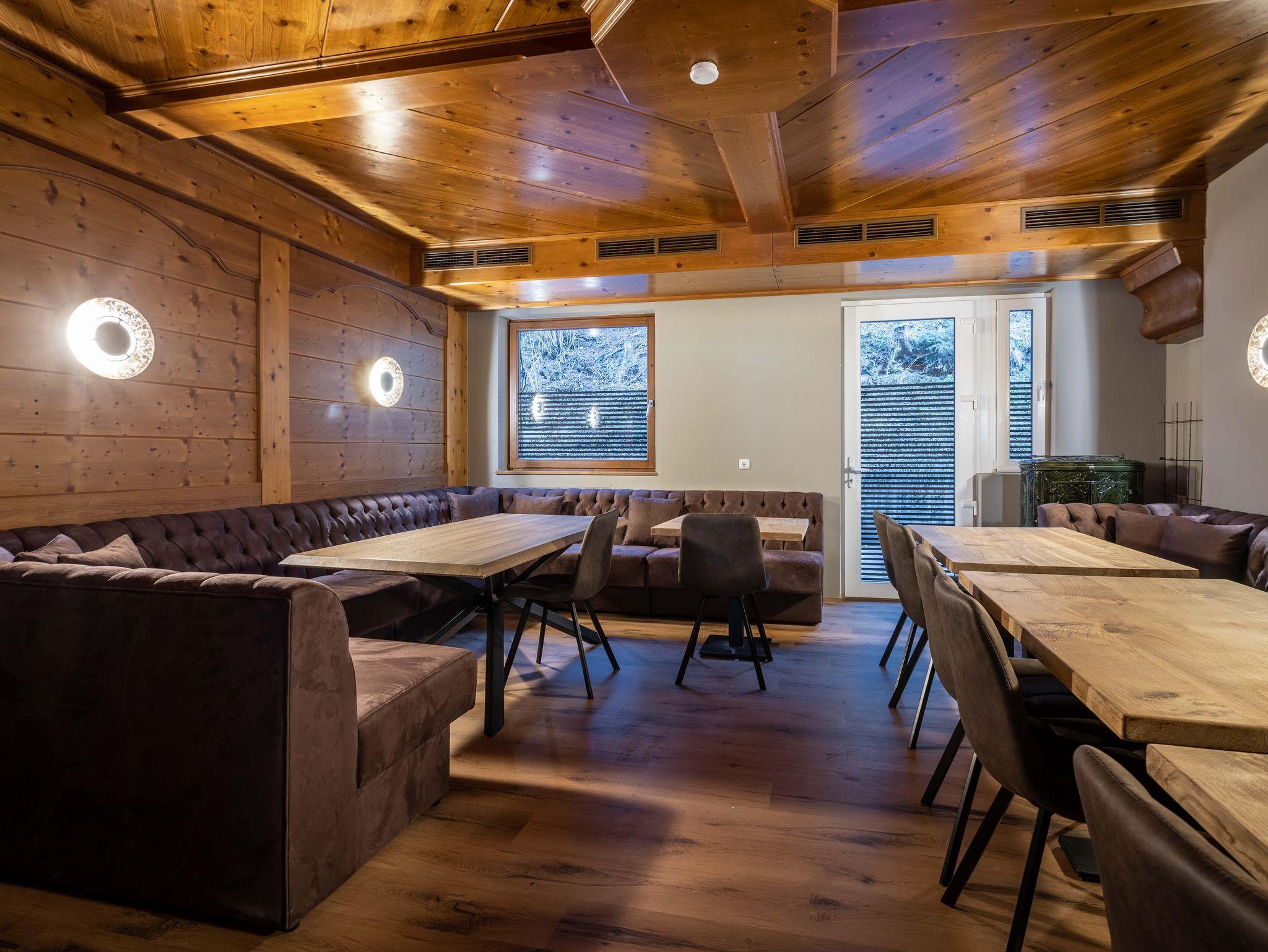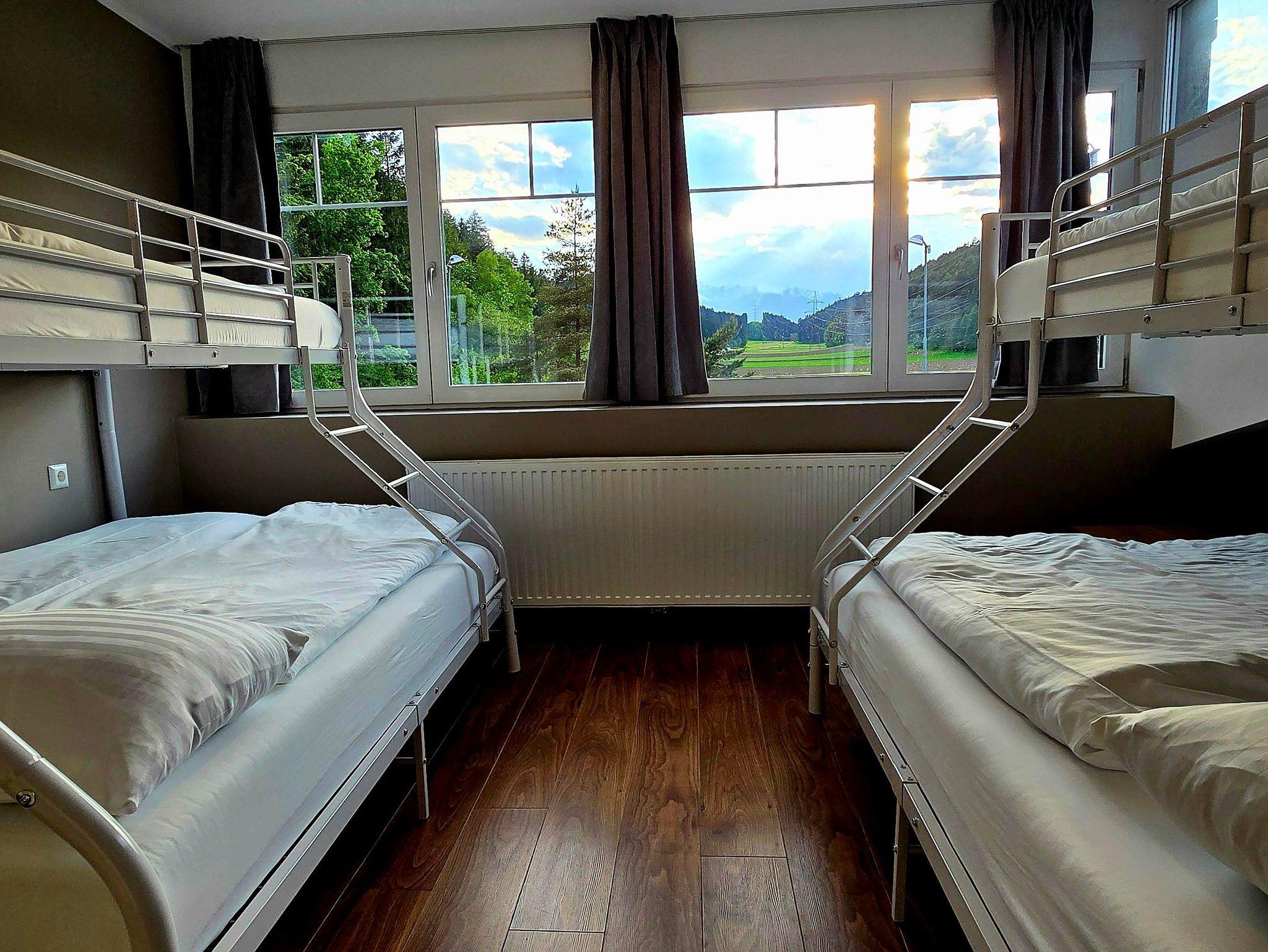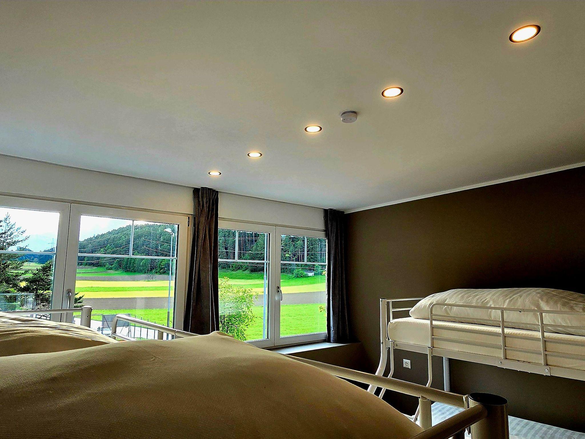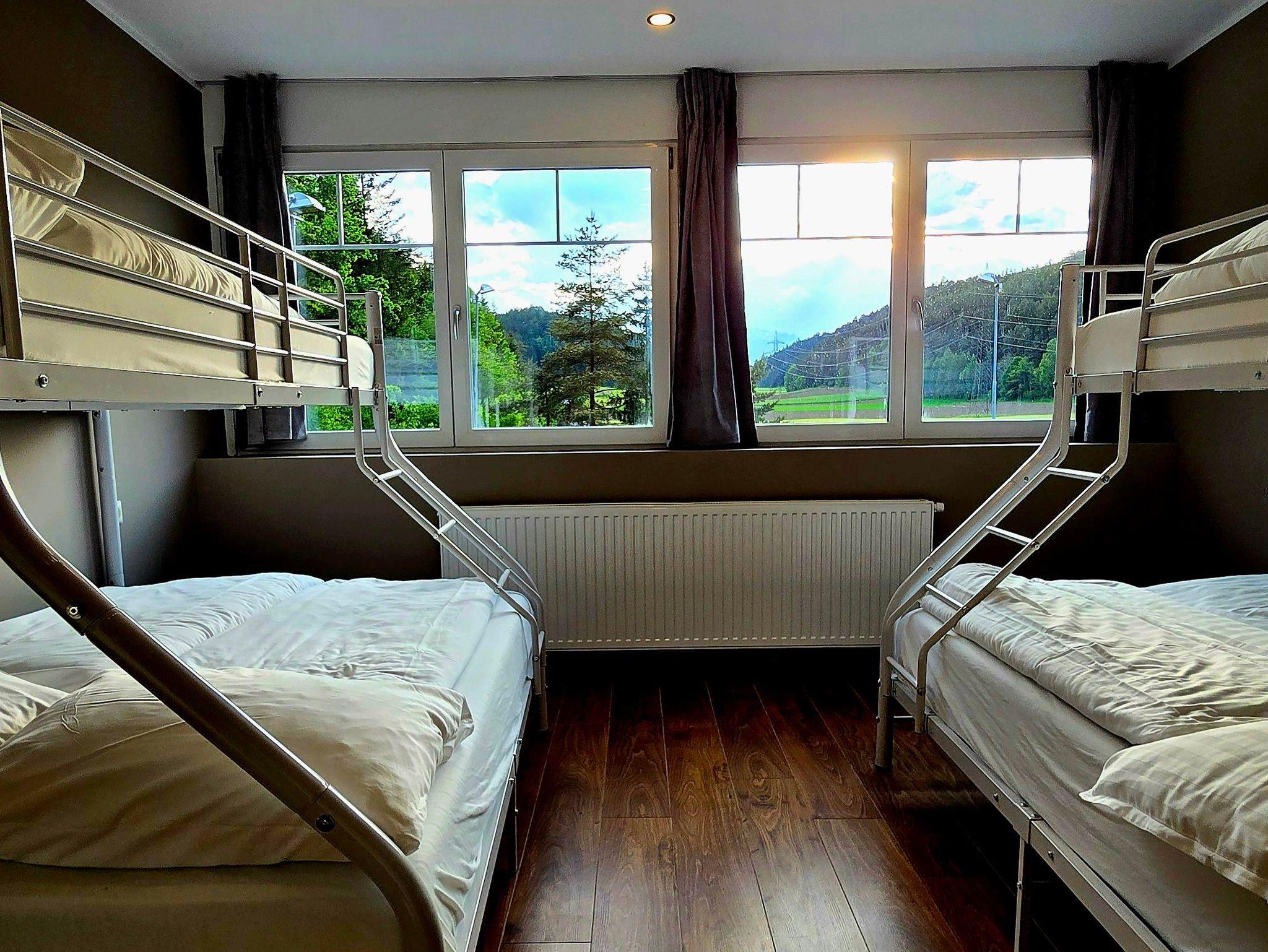 Die Penthousewohnung im Art & Sporthotel befindet sich im zweiten Stock, erstreckt sich über 160 m² und bietet Platz für bis zu 18 Personen. Es verfügt über drei Schlafzimmer, die jeweils mit zwei Dreierbetten ausgestattet sind, bestehend aus einem Doppelbett unten und einem Einzelbett oben. Die Wohnung umfasst zwei Bäder, die jeweils mit zwei Duschen und zwei Toiletten ausgestattet sind, sowie eine vollausgestattete Küche mit ausreichend Geschirr. Ein großer Esstisch und eine Sitzecke mit zwei Couches und einem TV bieten zusätzlichen Komfort.