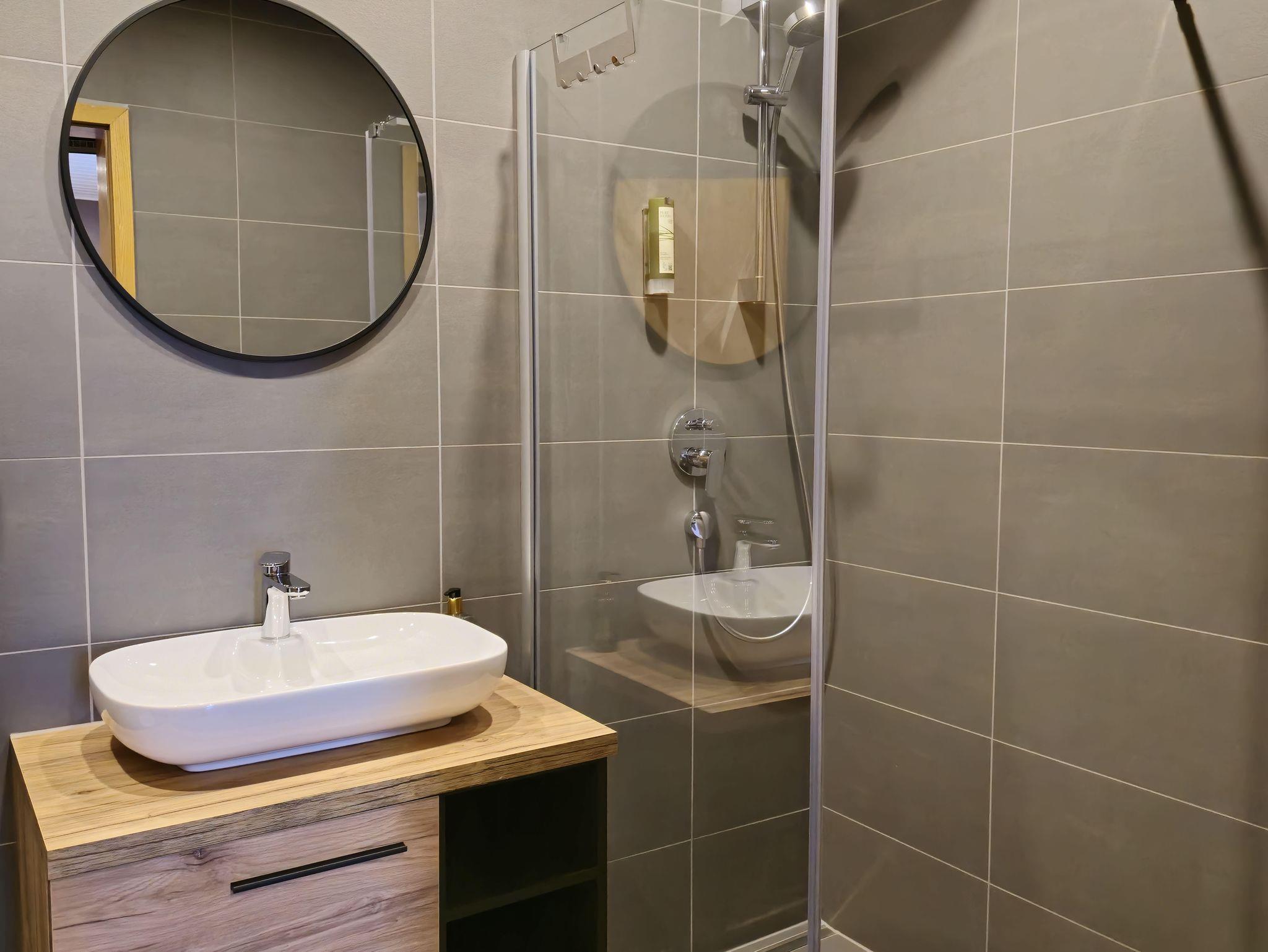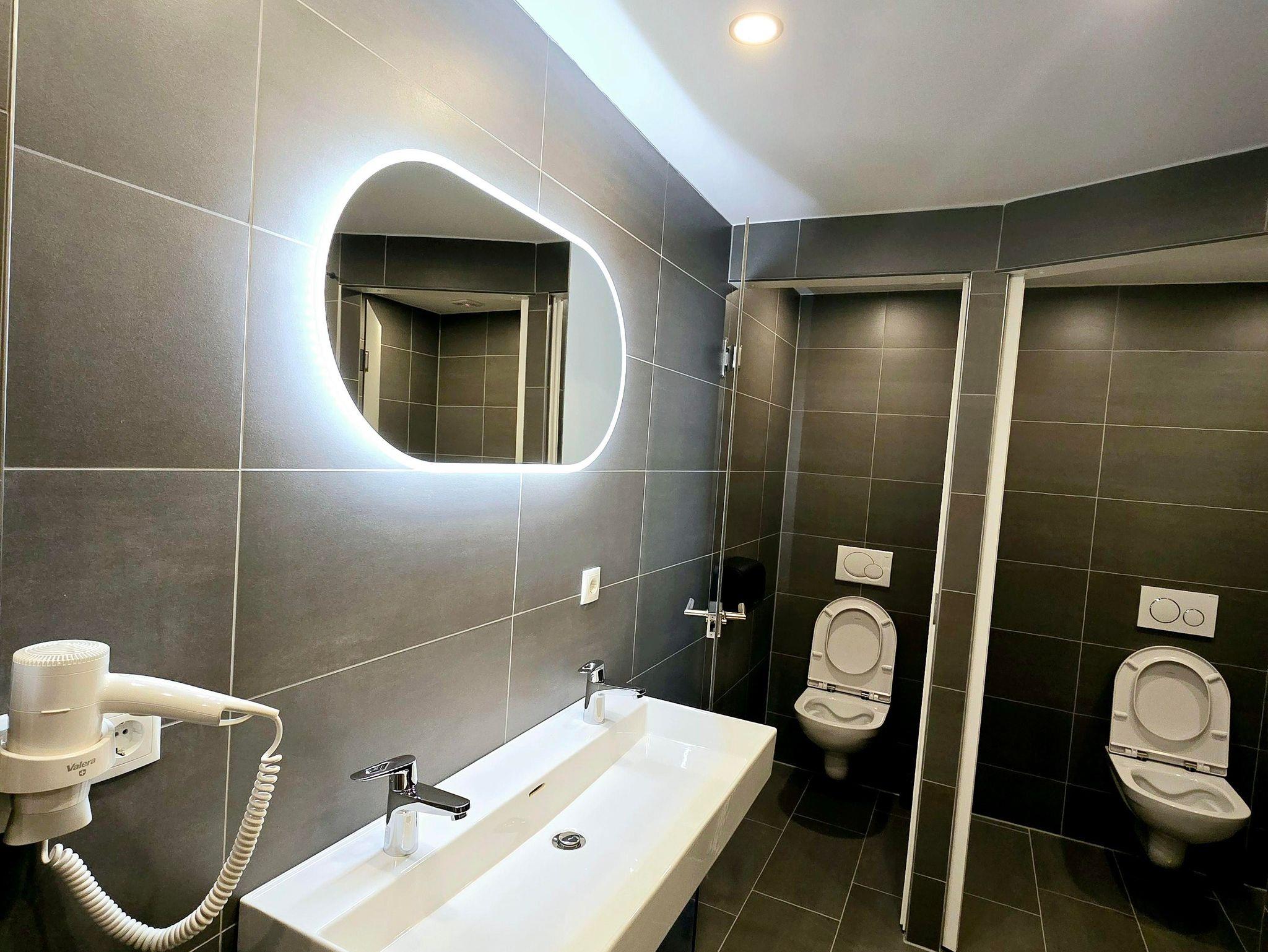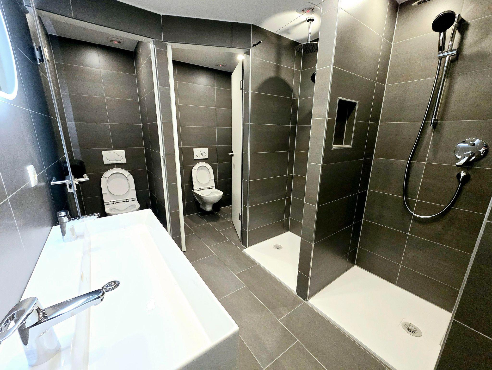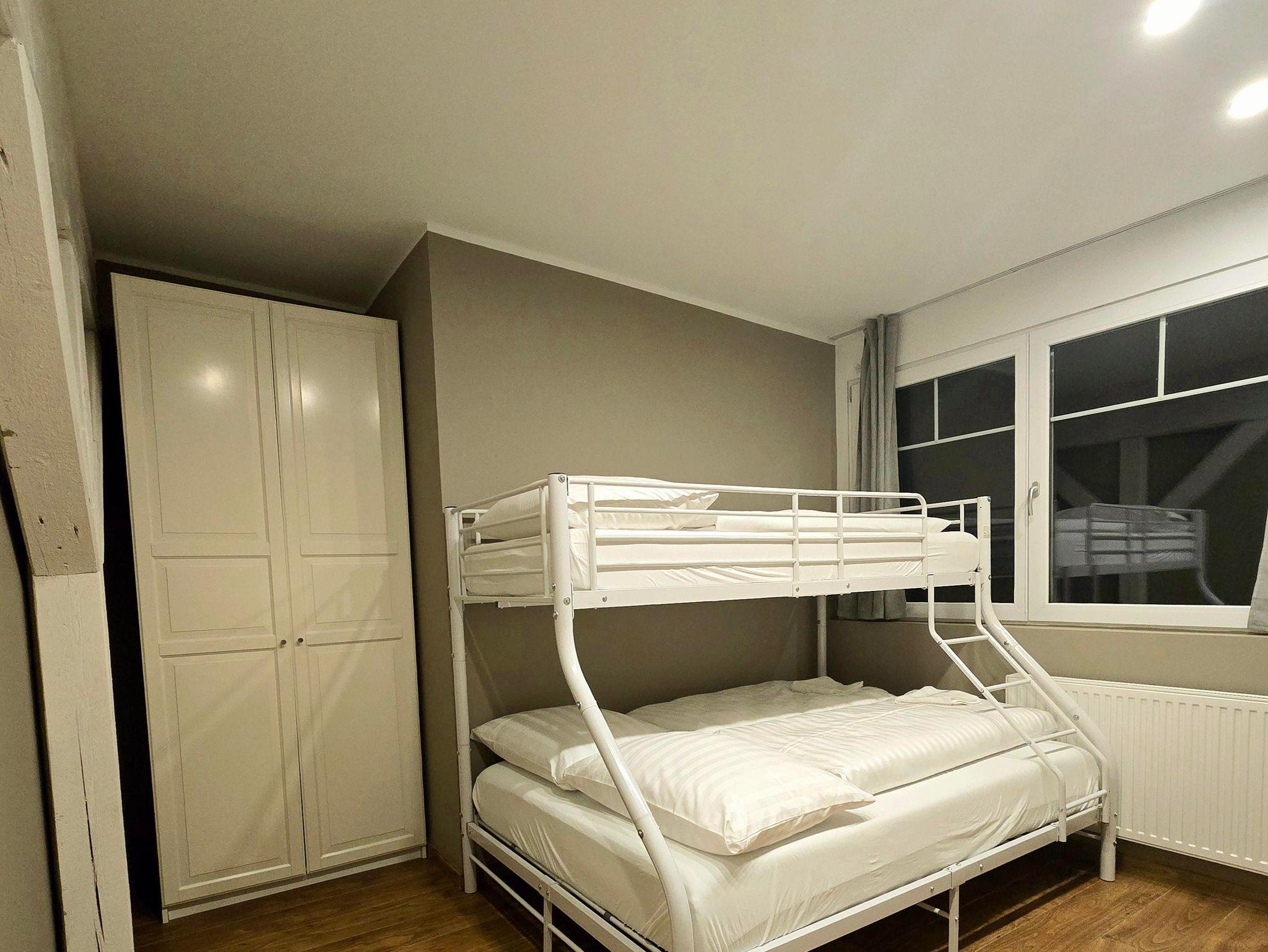 Die Penthousewohnung im Art & Sporthotel befindet sich im zweiten Stock, erstreckt sich über 160 m² und bietet Platz für bis zu 18 Personen. Es verfügt über drei Schlafzimmer, die jeweils mit zwei Dreierbetten ausgestattet sind, bestehend aus einem Doppelbett unten und einem Einzelbett oben. Die Wohnung umfasst zwei Bäder, die jeweils mit zwei Duschen und zwei Toiletten ausgestattet sind, sowie eine vollausgestattete Küche mit ausreichend Geschirr. Ein großer Esstisch und eine Sitzecke mit zwei Couches und einem TV bieten zusätzlichen Komfort.