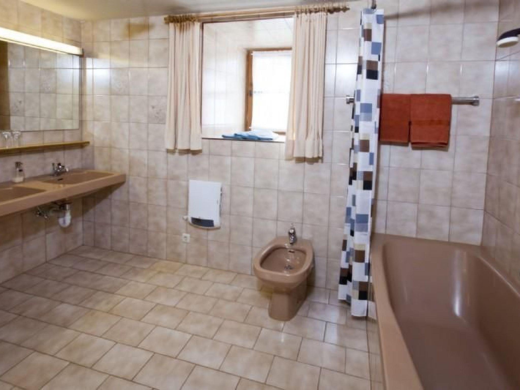 This holiday apartment renovated in 2014 is on the first floor and provides 70m² of living space. The homely, rustic atmosphere is enhanced by the parquet flooring, elegant wooden furniture, and thick walls painted white. There are two separate bedrooms. The centrepiece of the apartment is the living room-kitchen with a fully-equipped kitchen unit, a dining table with four chairs and a comfortable living room area. Convenient and extensive self-catering is enabled by a dishwasher, a stove with four rings and an oven, a microwave, coffee machine, fridge and freezer compartment. After a day trip you can relax in the living room on a three-seater sofa and an armchair, next to the display cabinet with suitable glasses for a drink in the evenings. Satellite TV provides entertainment in the evening. The apartment is heated with radiators in all the rooms.