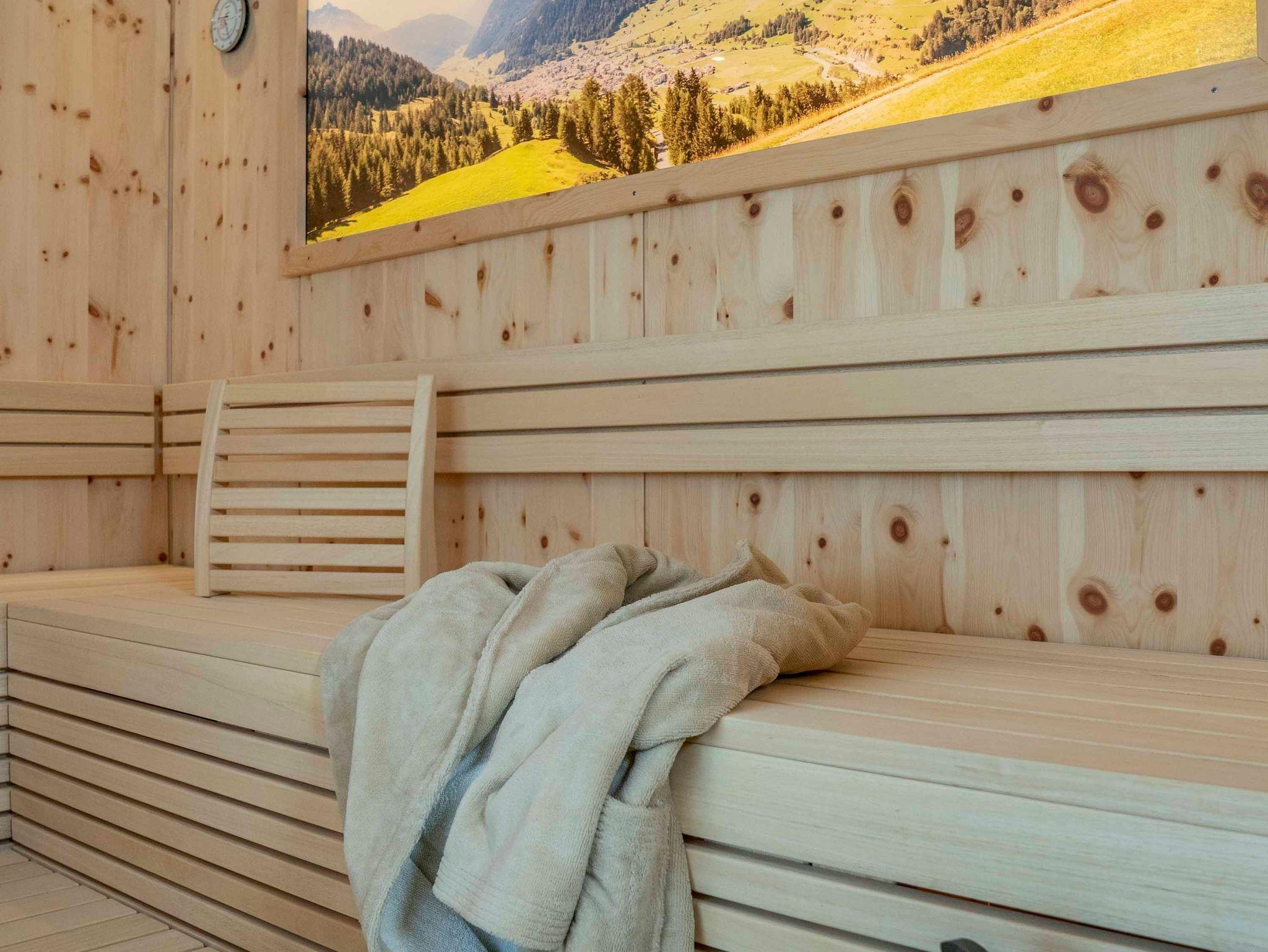 Ein feiner Wohlfühlbereich mit Sauna, Infrarotkabine, Teebar, Panoramaruheraum mit Entspannungsliegen und Relax-Liegwiese für wohltuende Momente.