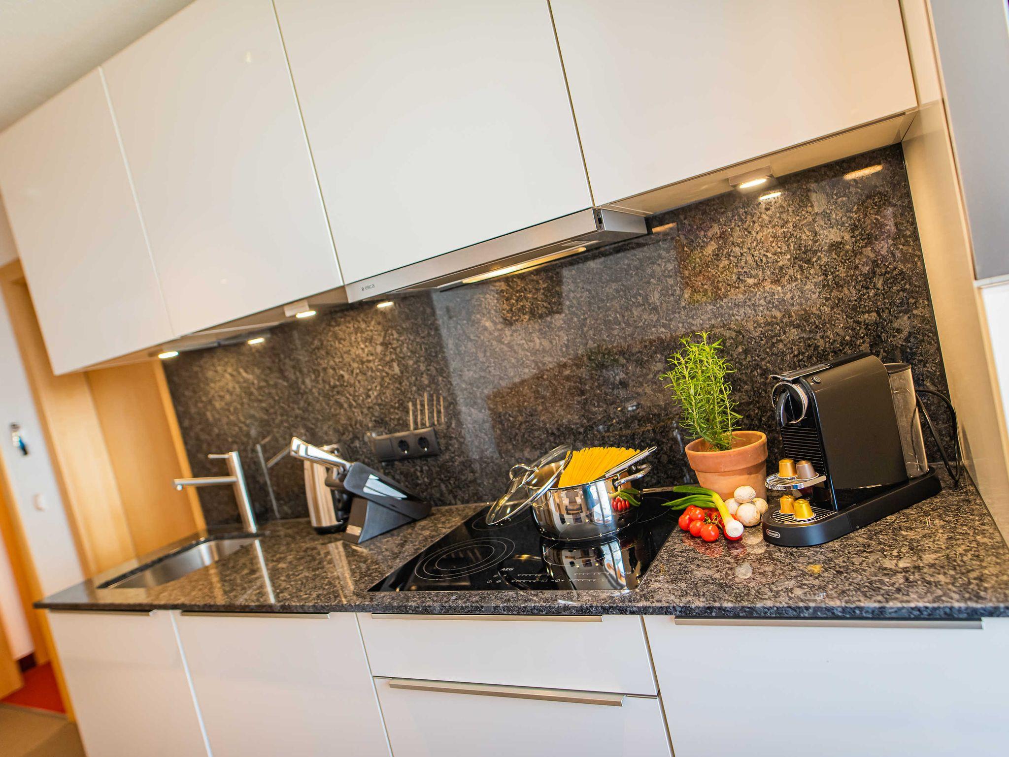 Kochnische mit Ceran-Kochfeld, Kühlschrank mit Gefrierfach,