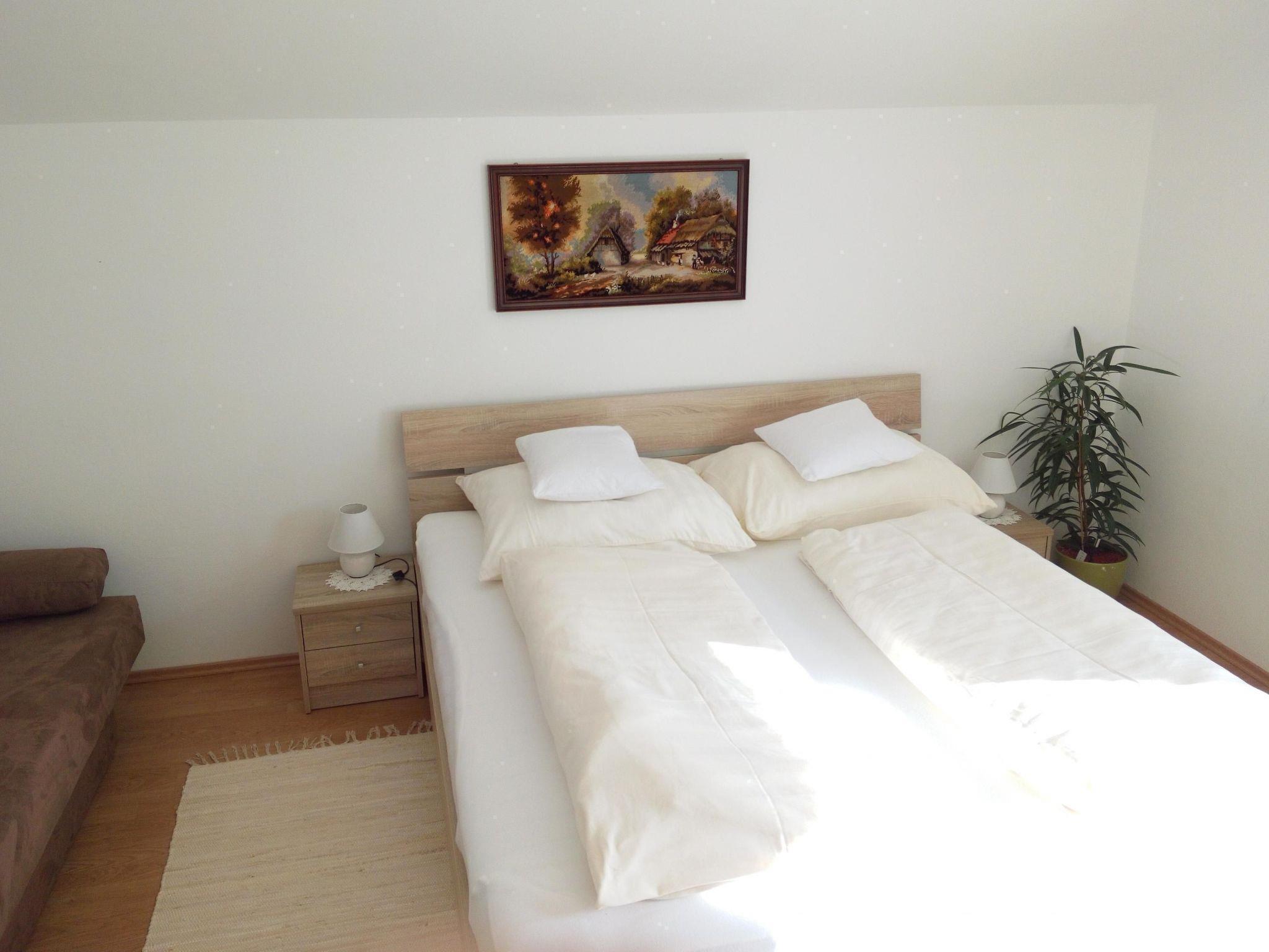 The 60m² oasis of well-being is on the first floor and a maximum of five people can leave everyday working life far behind here. After an exciting day, adults and children can look forward to playing a game together on the big sofa in the living room-kitchen. A wood-burning stove ensures a particularly cosy atmosphere. While somebody is conjuring up breakfast, lunch or dinner in the fully-equipped kitchen with a four-ring stove and oven, coffee machine and fridge with freezer compartment, the other guests can watch an exciting film (satellite TV) or share their experiences with their friends at home via Internet. There are two separate bedrooms with double beds. One of the bedrooms has a balcony with a view of the surrounding mountains and a fifth bed (folding bed) can be added to this room if required. The spacious bathroom has a shower with massage jets for relaxing at the end of the day.