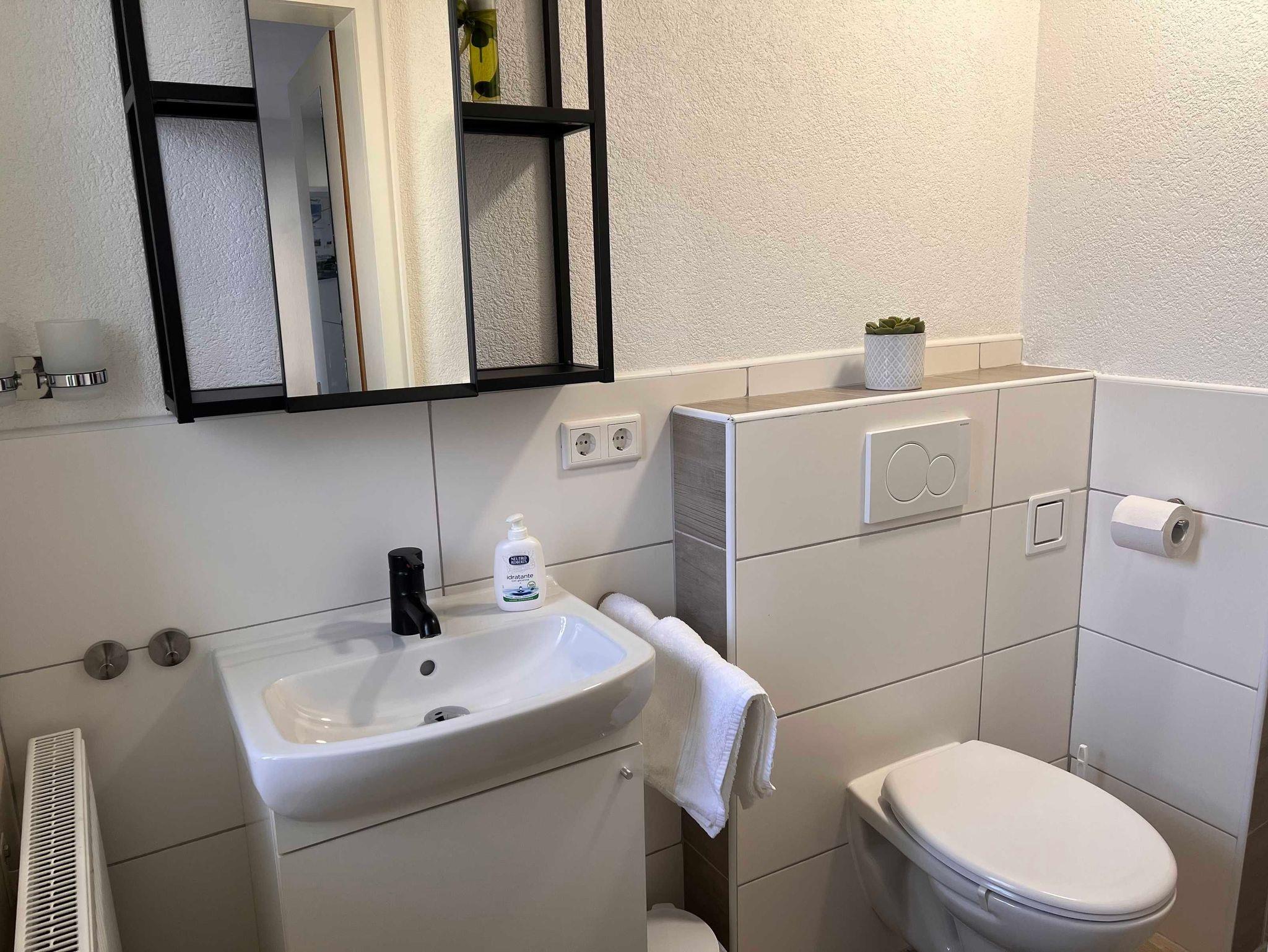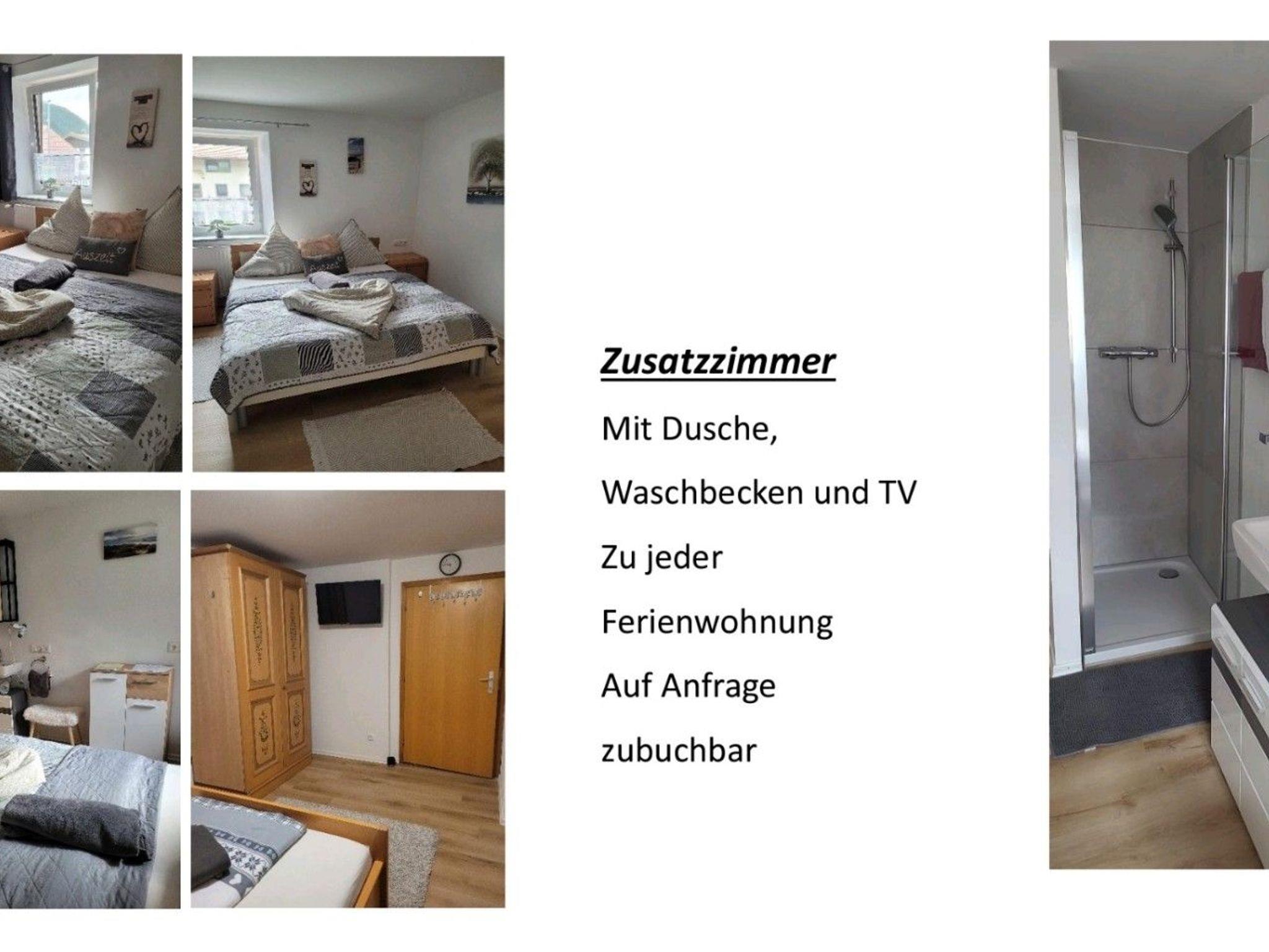 Diese ca. 110m² große Fewo im EG verfügt über einen eigenen Eingang, 2x Doppelzimmer und 1 Dreibettzimmer zzgl. Kinderbett, 1 x Bad mit WC/DU und Badewanne. Desweiteren verfügt diese Wohnung über eine große & gemütliche Küche sowie einem kleinen Wohn- und Fernsehzimmer.