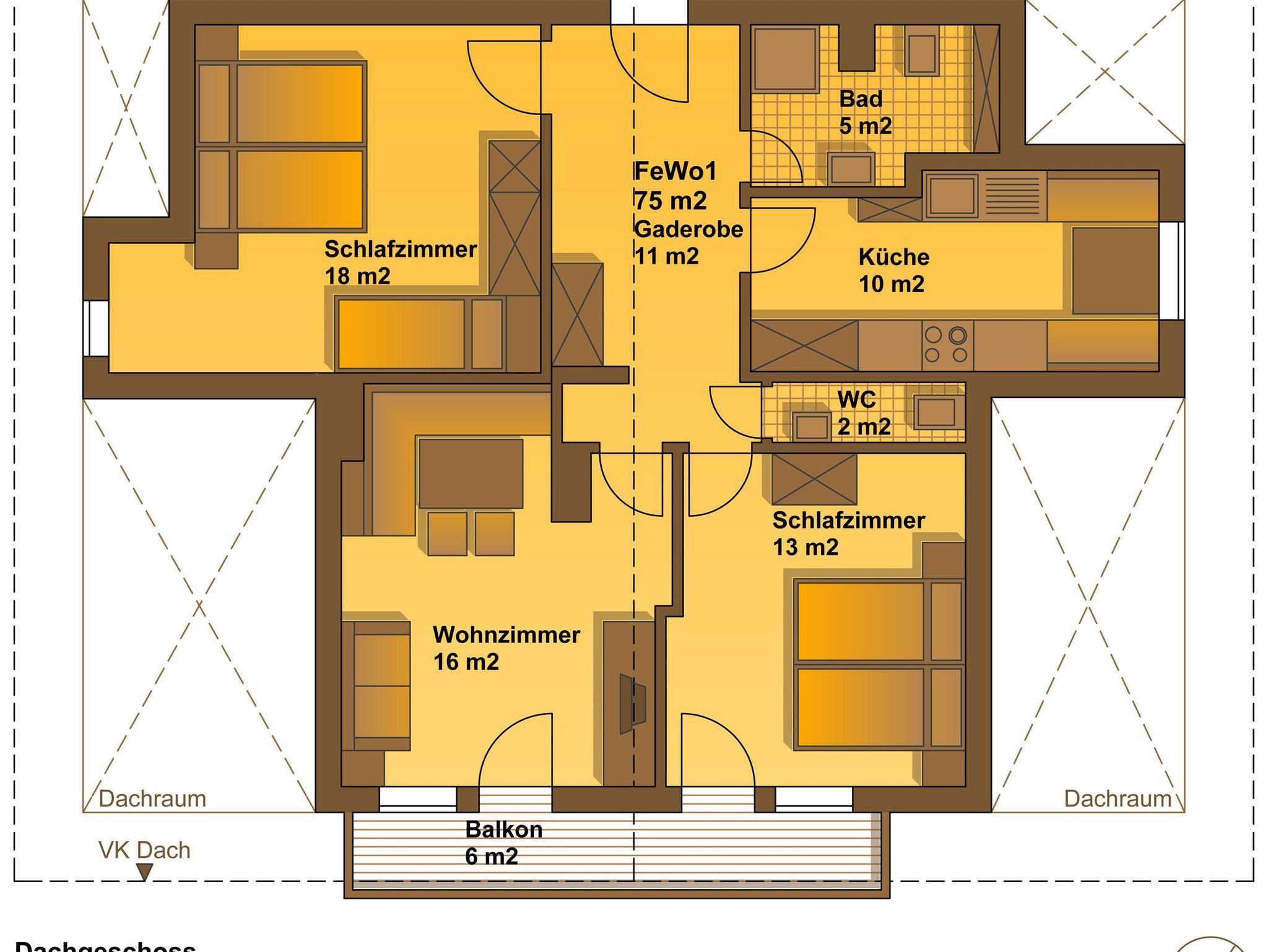 Sie wohnen in einer gemütlichen, modern eingerichteten Ferienwohnung mit rund 75m² Wohnfläche, die ausreichend Raum zum Wohlfühlen bietet. Die Wohnung ist ideal für Familie oder Gäste, die etwas mehr Platz und Komfort schätzen.