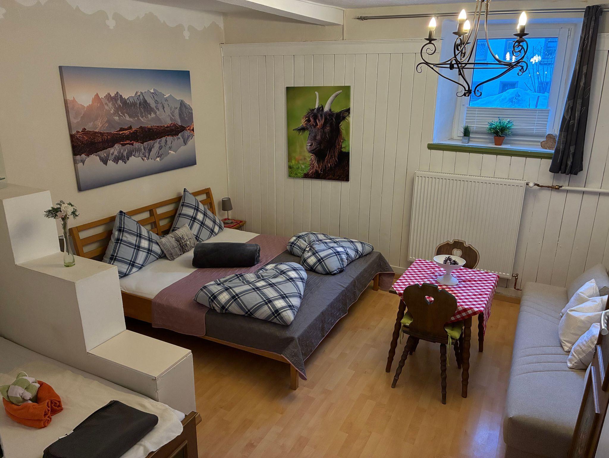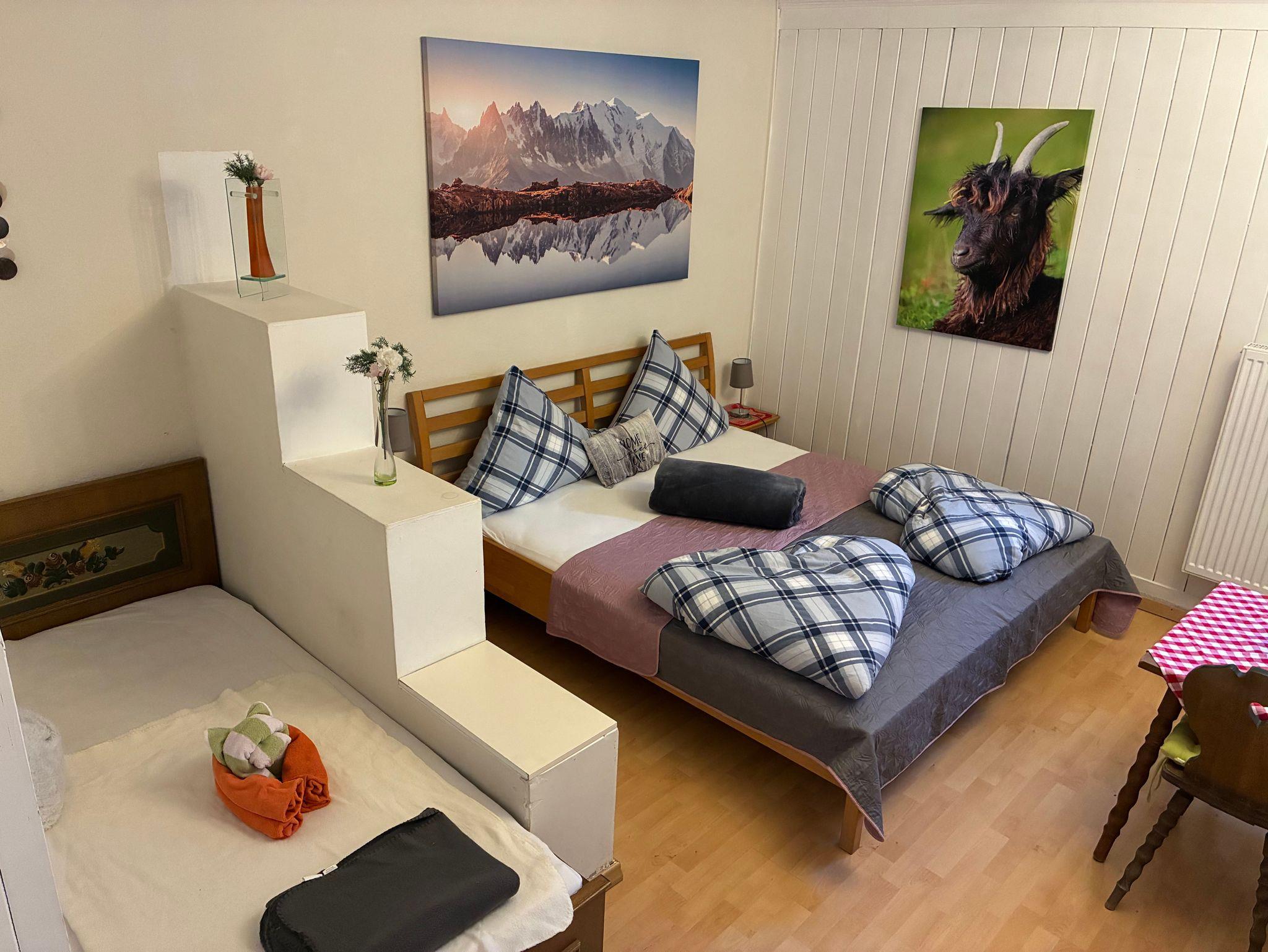 Die Ferienwohnung Edelweiss bietet Platz für bis zu 8 Personen, verteilt auf 3 Schlafzimmer. Sie verfügt über ein Badezimmer mit Dusche und Badewanne. Besonders geschätzt wird das abgeschlossene Wohnzimmer, das zusätzlichen Komfort bietet. Zudem hat die Ferienwohnung einen eigenen Eingang.