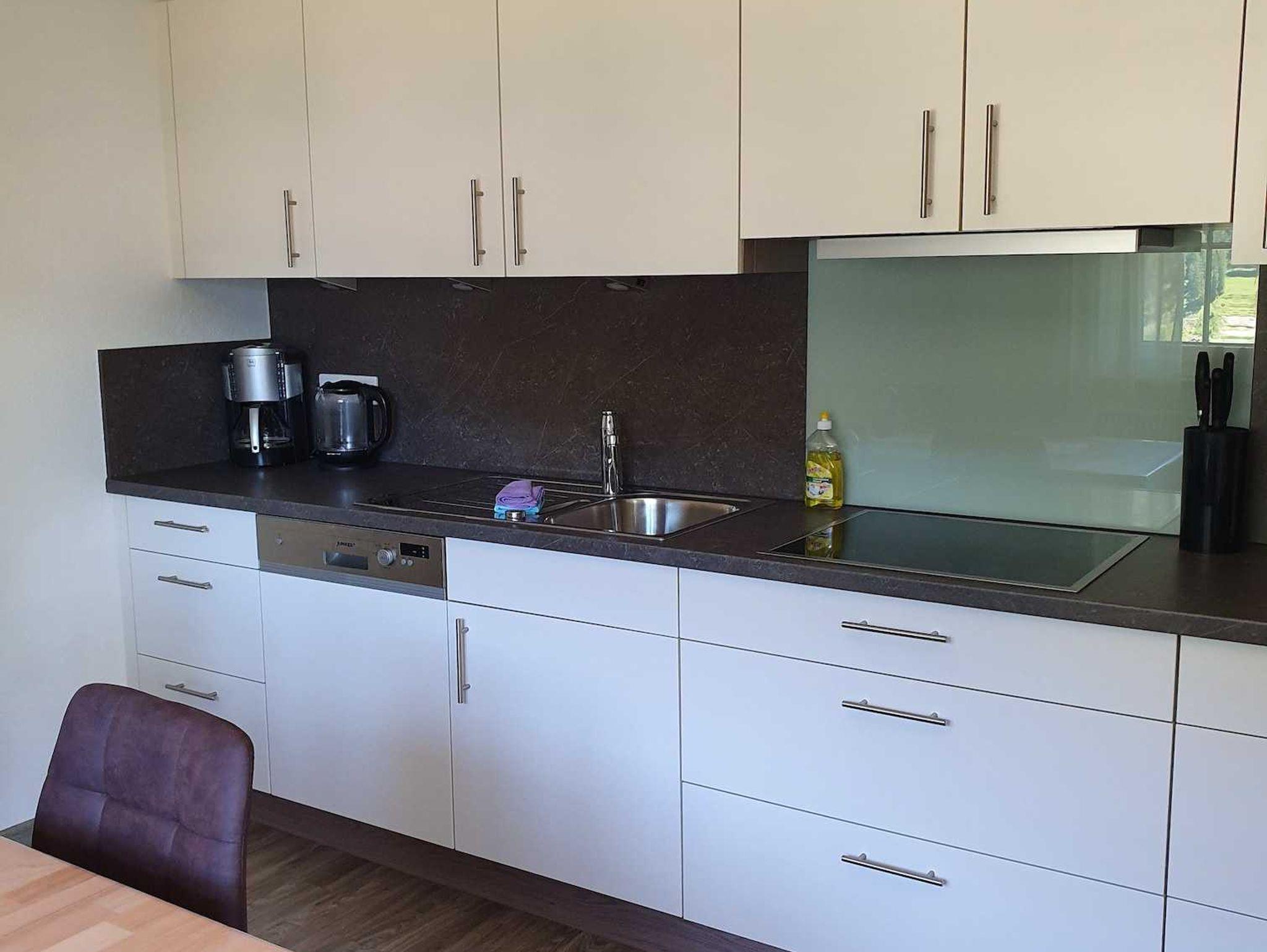1 Schlafzimmer, separate Küche mit Essecke, Wohnbereich mit Eckcouch/Ausziehbett und Schwedenofen, Dusche/WC, Haarfön, Wasserkocher,Mikrowelle,TV, Wlan ganz neu modern eingerichtete Ferienwohnung