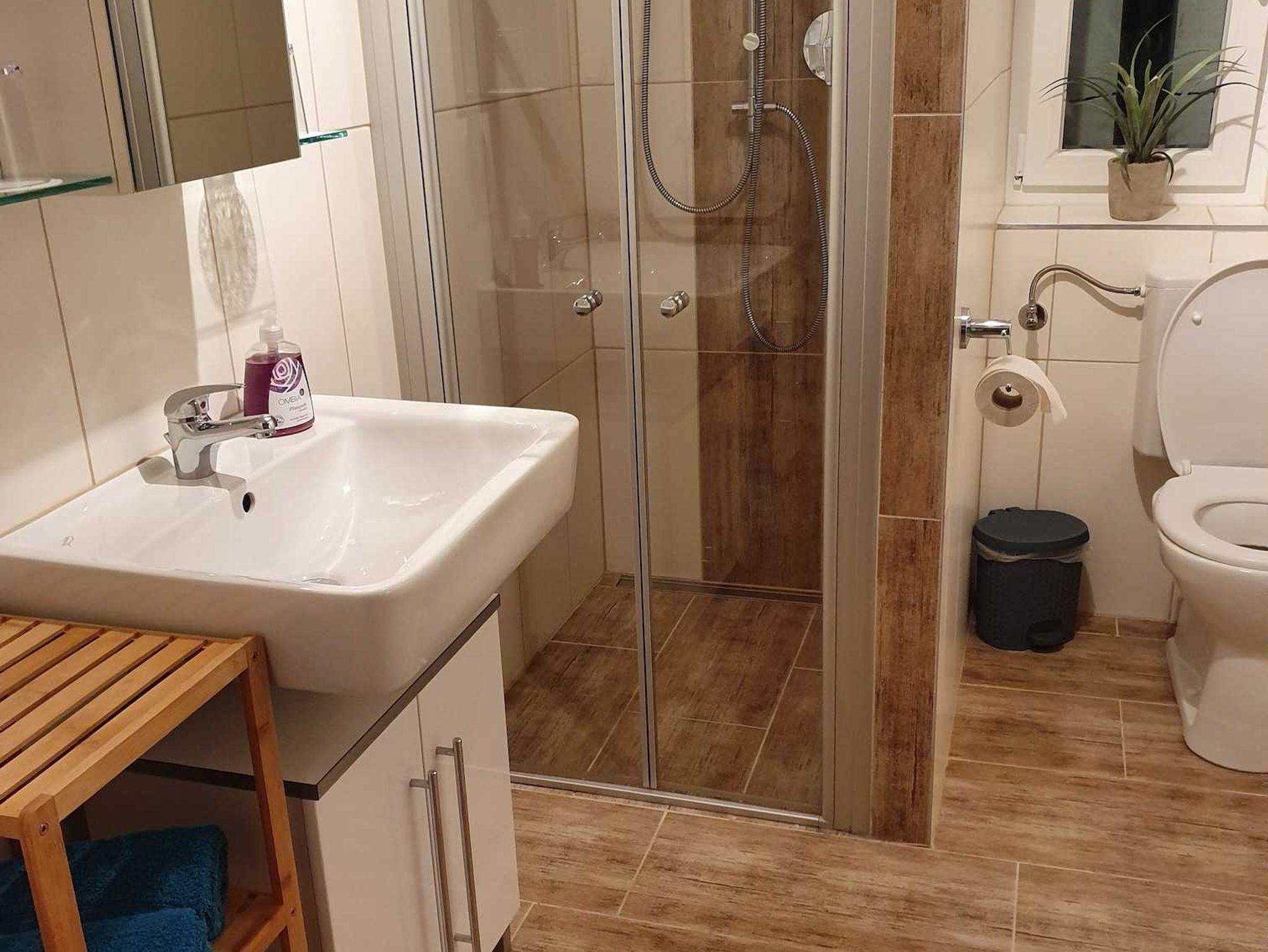 1 Schlafzimmer, separate Küche mit Essecke, Wohnbereich mit Eckcouch/Schlafsofa und Schwedenofen, Dusche/WC, Haarfön, Wasserkocher,TV, Wlan