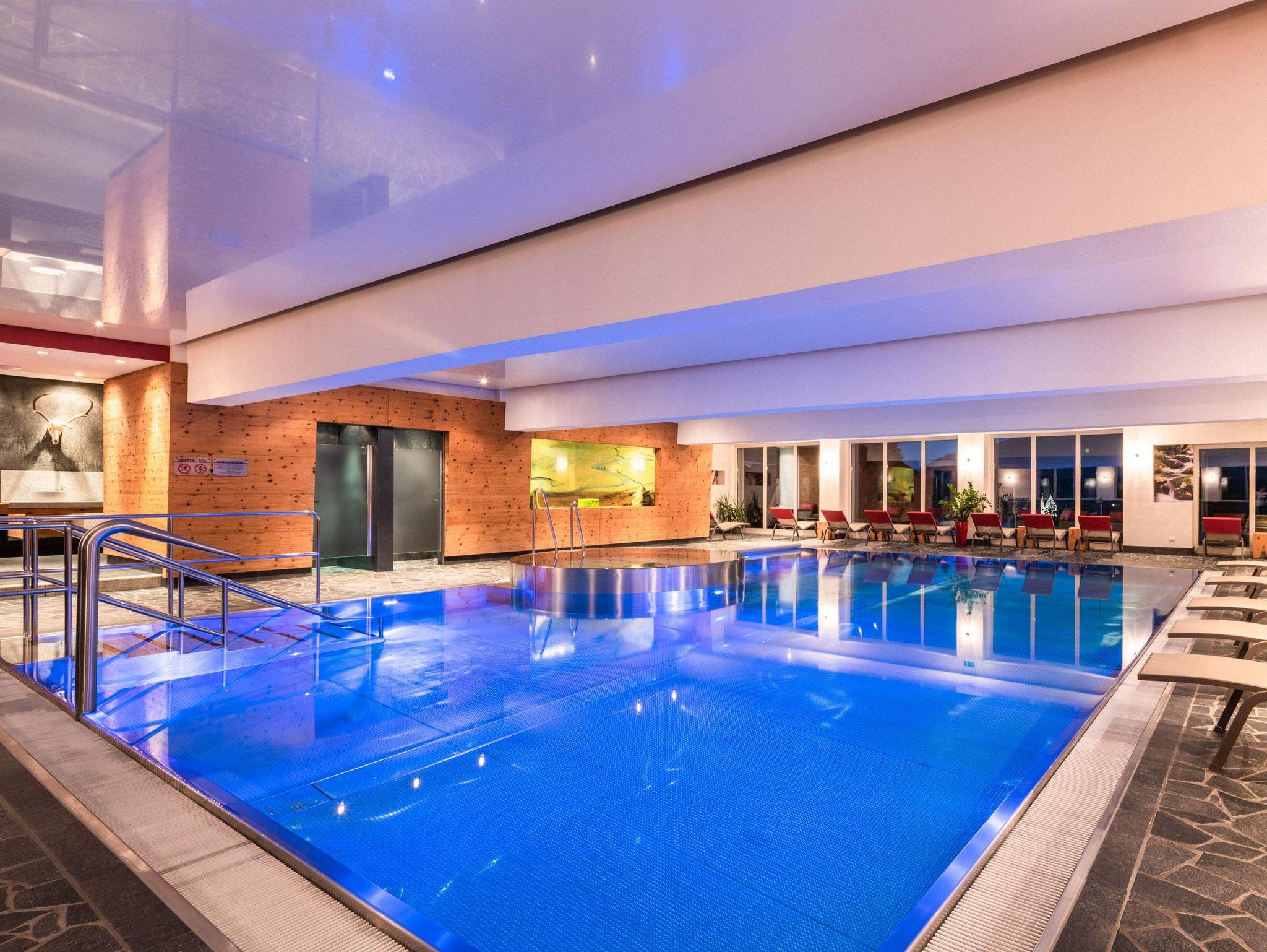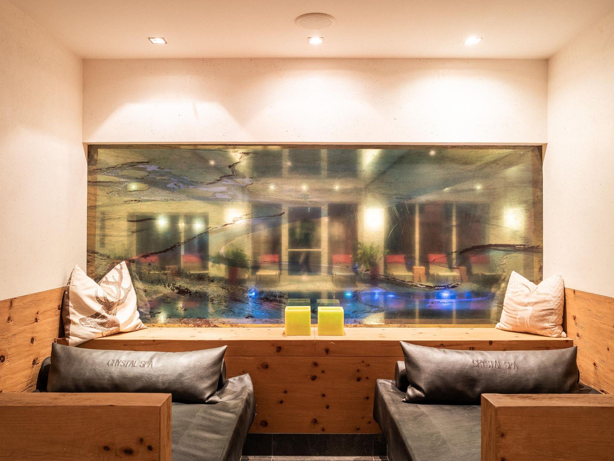 1200 m² Crystal-Spa mit Farblichthallenbad, Natur-Außenpool, 7 Saunen, Ruheraum Bergblick, Infratot-Wärmeliegen, Familien-Ruheraum mit Wasserbetten, Familien-Dress-on-Sauna, Massage,.. das Wohnzimmer im Wintergarten für gemütliche Stunden, Hotelbar mit Loungebereich, großer Speisesaal, Gaststube, Parkplätze mit Aufladestation für E-Autos (kostenpflichtig), Gemütliche Zimmer: Doppelzimmer, Wohlfühlzimmer, Studios und Suiten! Highlight: Das Baumhaus – dein Urlaubsnest im Forest 147m²