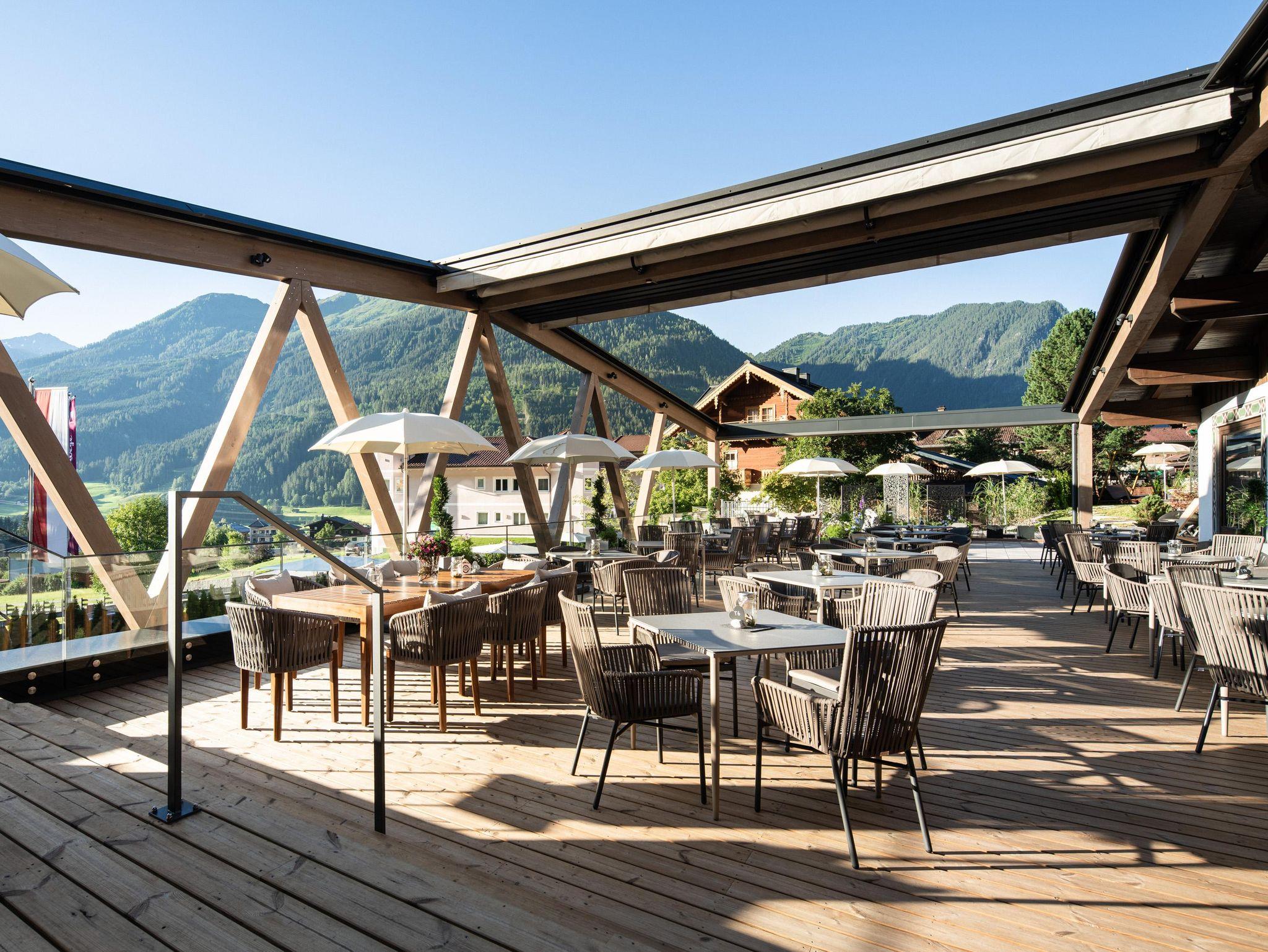 Im Sommer: Genusspension (all-inkl) mit reichhaltigem Frühstücksbuffet, Wanderjause oder Mittagssnack, alkoholfreie Getränke von der Saftbar, Kaffee & Tee bis 20:00 Uhr, 5-gang Genießermenü mit Salat- und Eisbuffet am Abend. 5-7 geführte Wanderungen pro Woche (Montag bis Freitag)