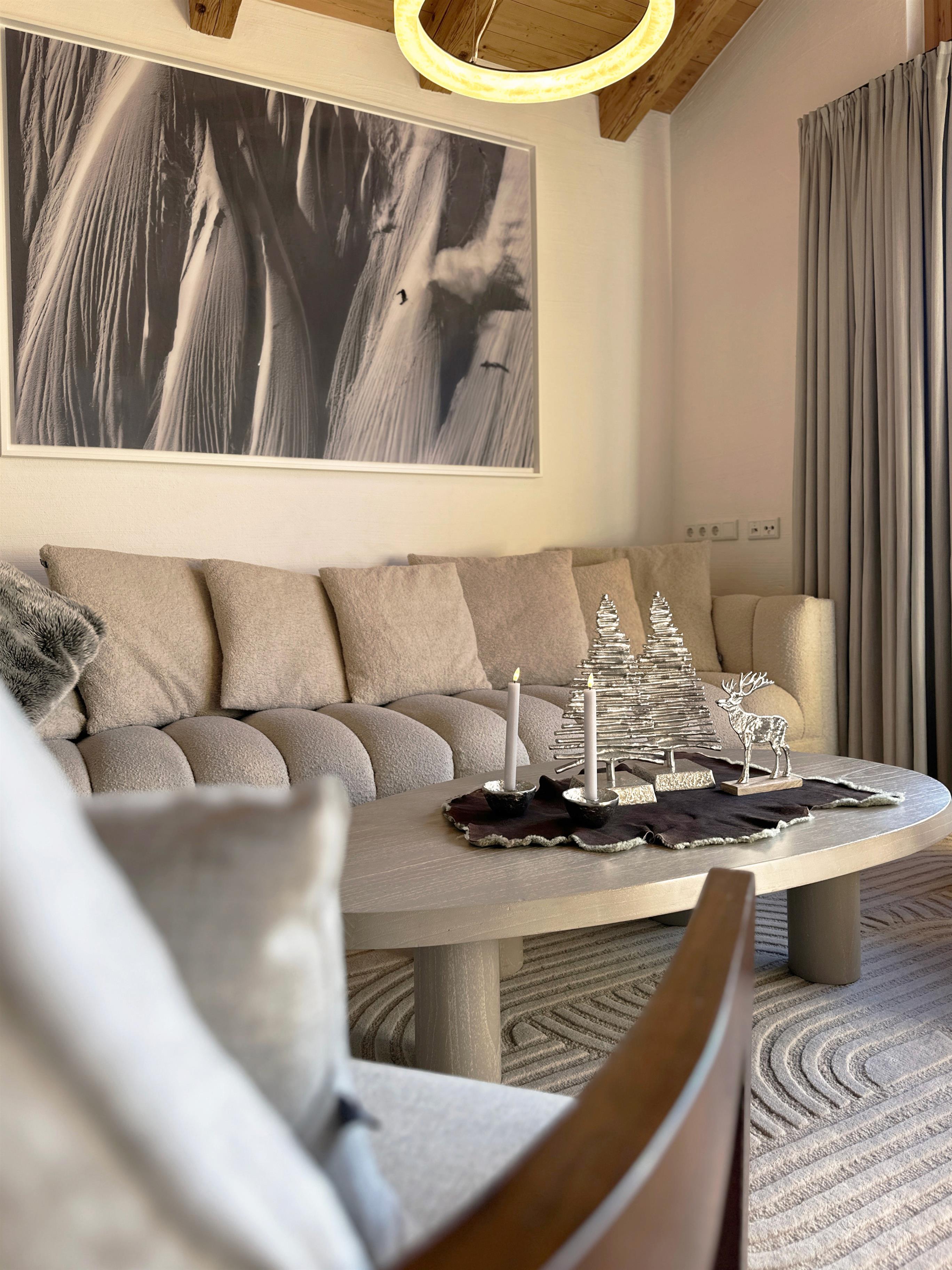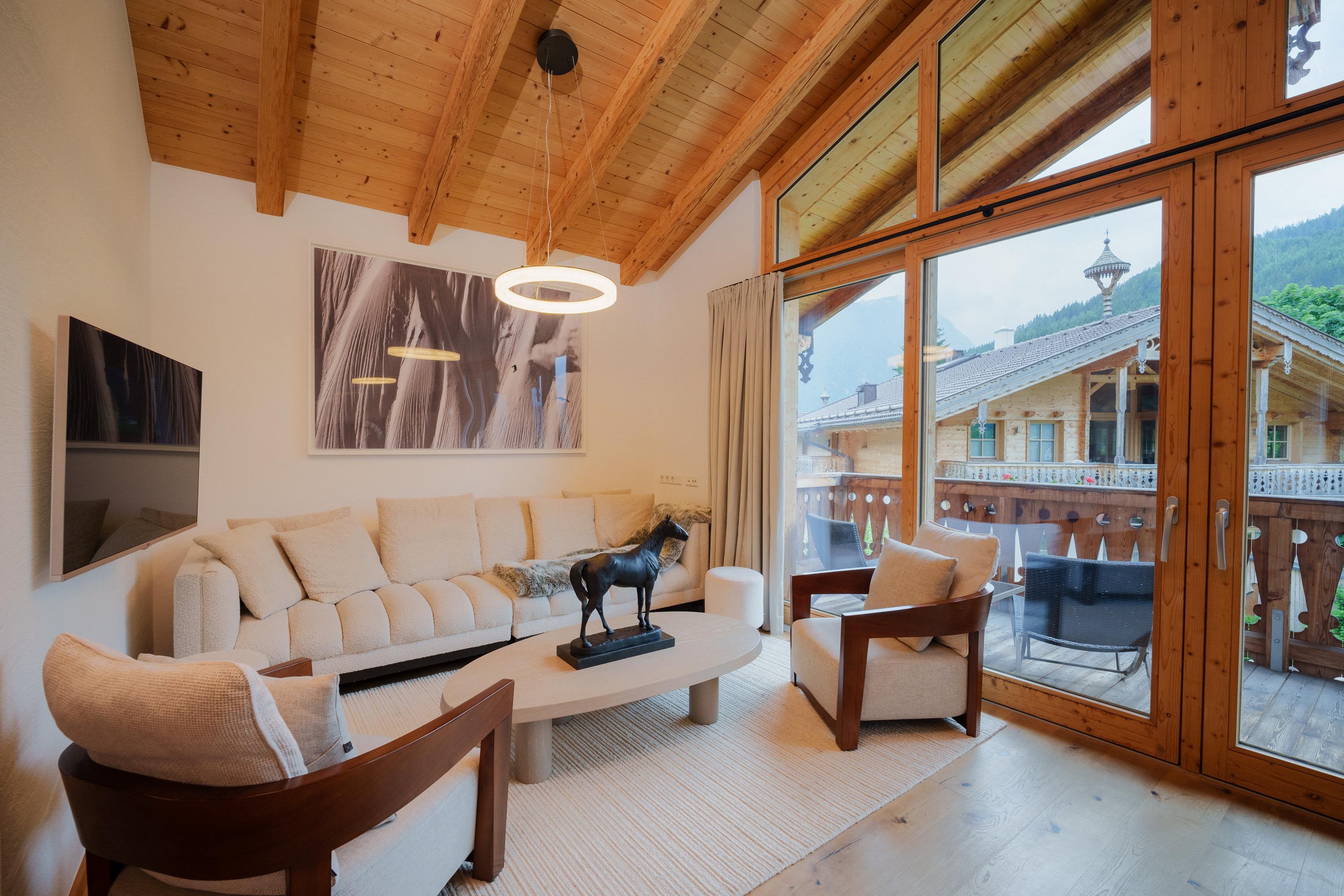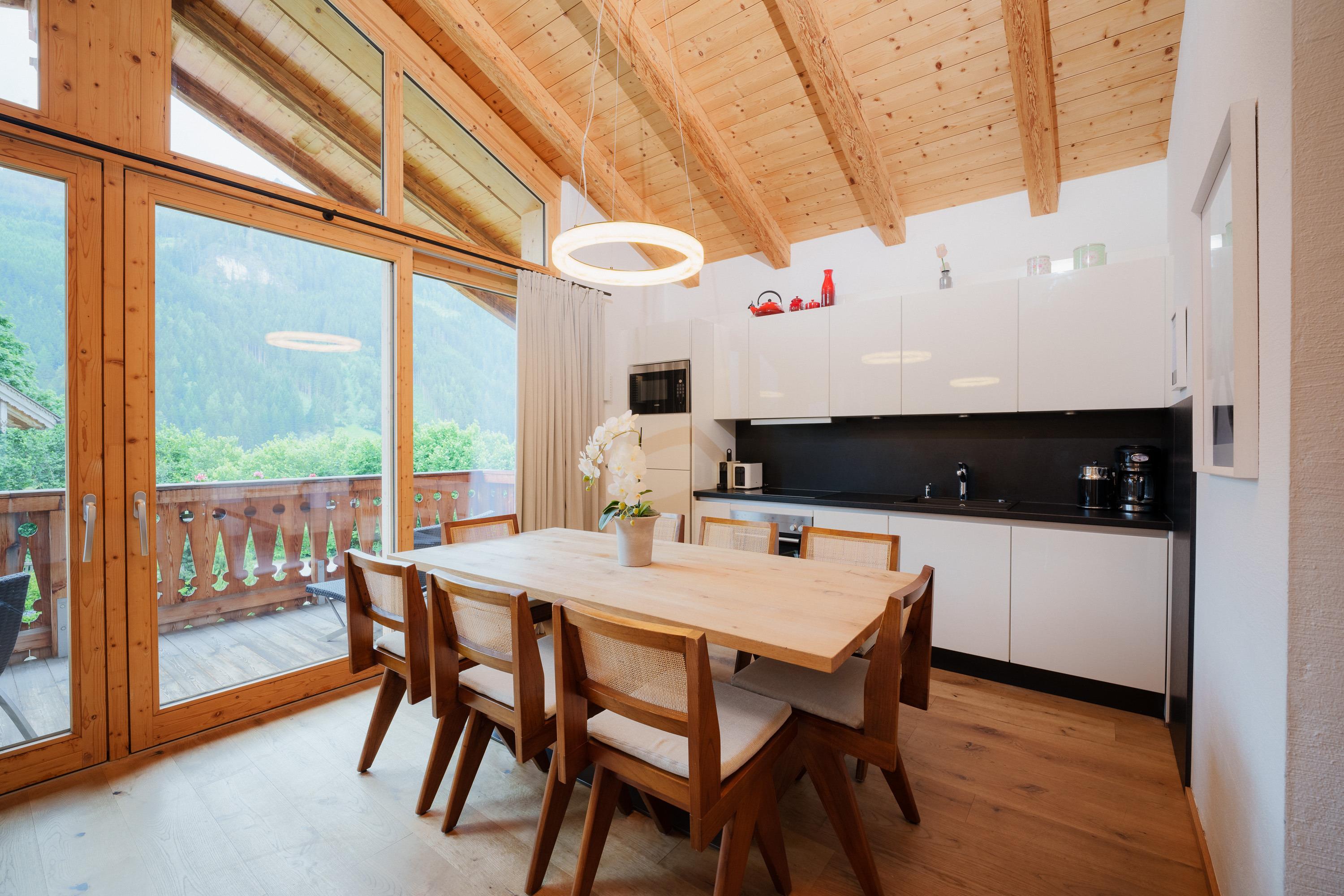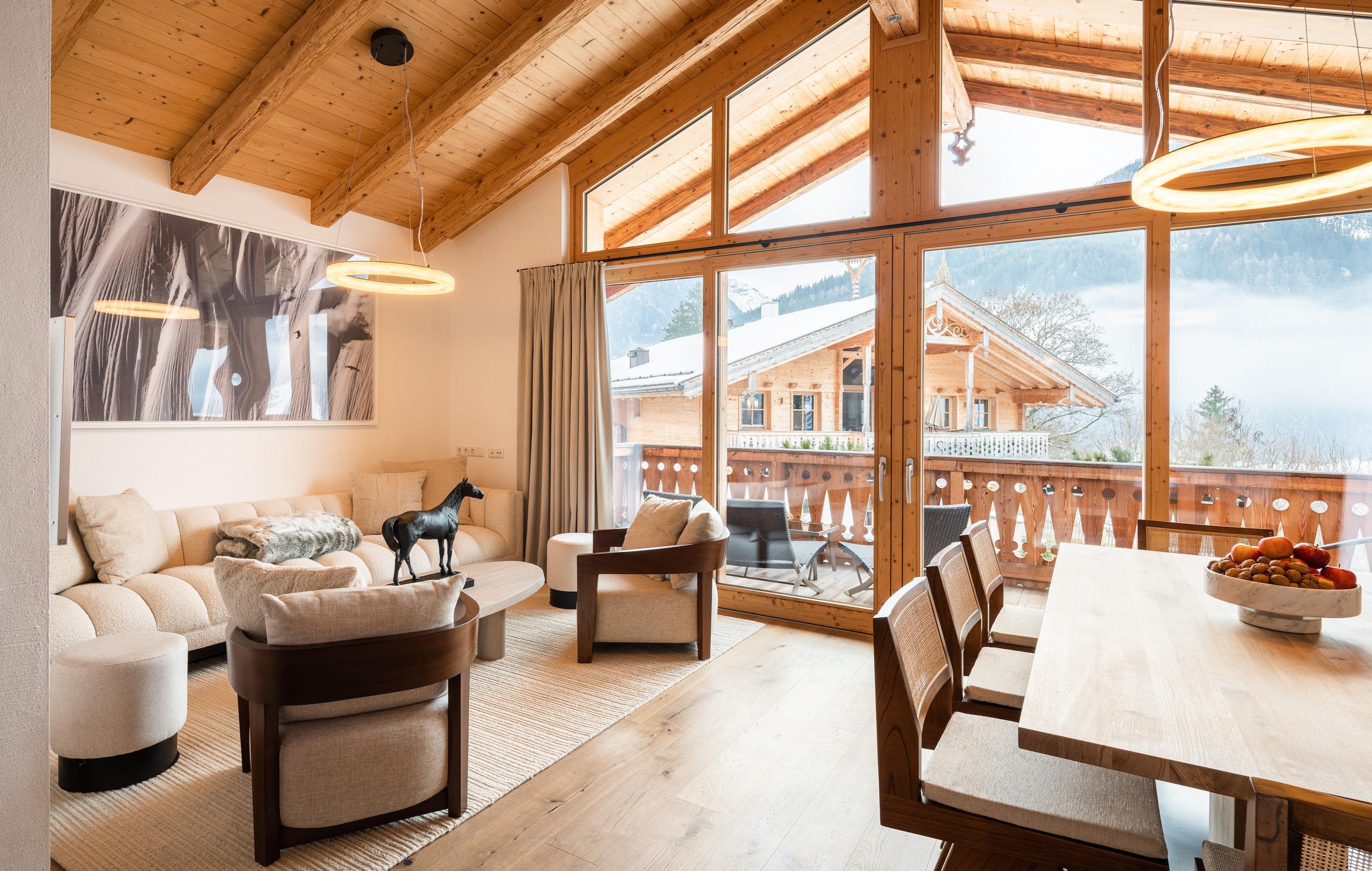 Das exklusive Alpen-Chalet bietet großzügigen Wohnkomfort und Platz für bis zu 8 Personen, einschließlich 2 Kindern. Die stilvolle Einrichtung kombiniert traditionelle Gemütlichkeit mit modernen Annehmlichkeiten und schafft eine einzigartige Wohlfühlatmosphäre.