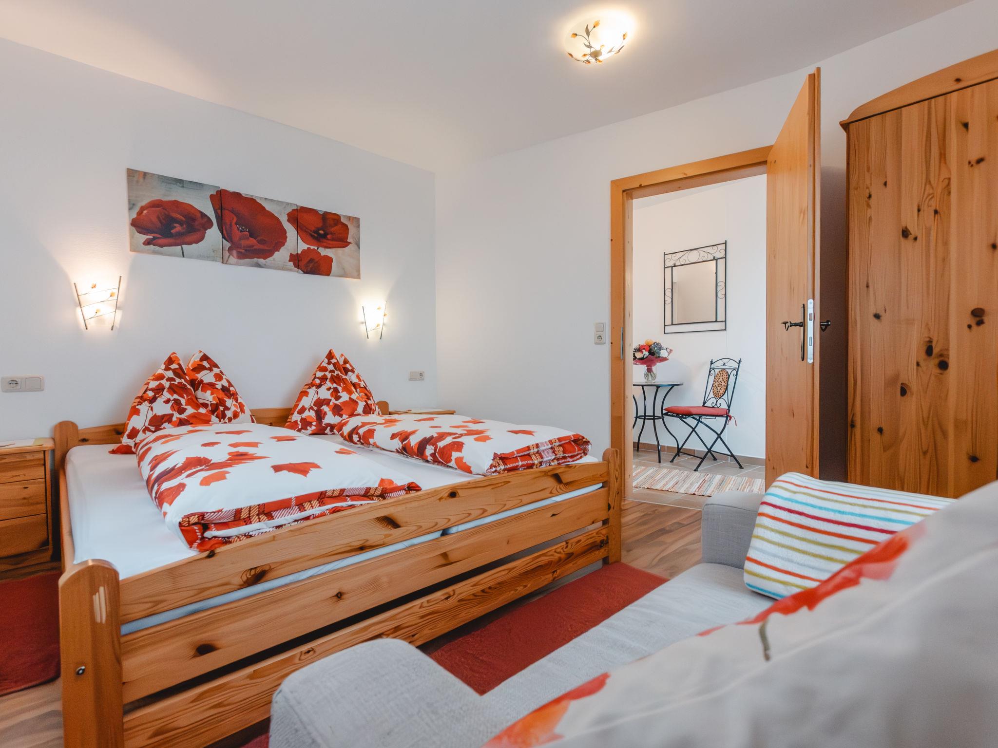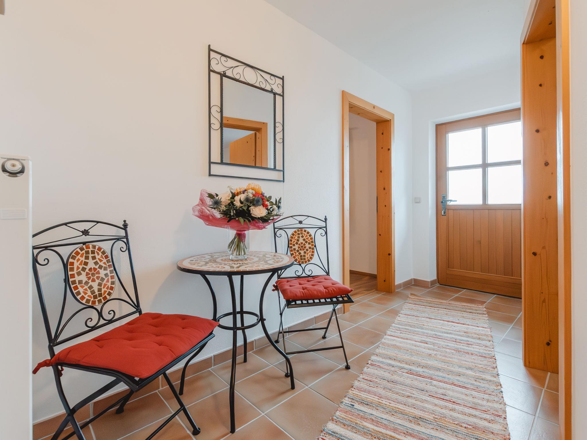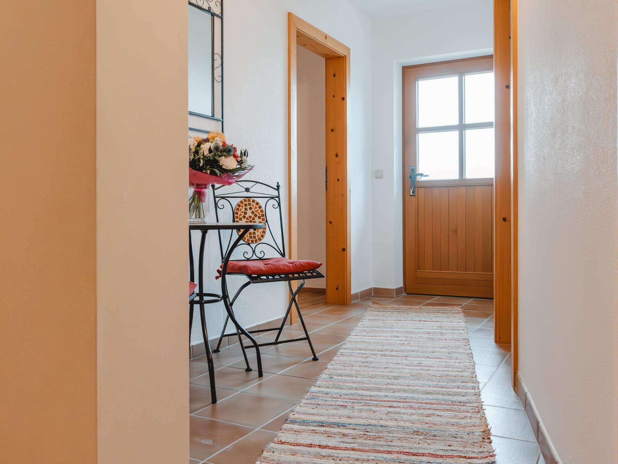 "Ferienhaus Taubenstein", 5-room house 160 m2 on 2 levels. Spacious and bright, cosy and wooden furniture furnishings: entrance hall. Living room with dining nook, cable TV, flat screen and tiled stove. Exit to the balcony. 1 double bedroom. Open kitchen (oven, dishwasher, 4 ceramic glass hob hotplates, toaster, kettle, electric coffee machine). Bath/shower, sep. WC. On the lower ground floor: 1 double bedroom. 1 room with 1 sofabed and 1 double bed. 1 room with 1 x 2 bunk beds. Shower, sep. WC. Parquet floors, natural stone floors. Large balcony, large terrace. Terrace furniture, balcony furniture, deck chairs. Marvellous panoramic view of the mountains and the countryside. Facilities: washing machine, iron, baby cot for up to 2 year olds, hair dryer. Internet (WiFi, free). Please note: non-smokers only. Smoke alarm, fire extinguisher.