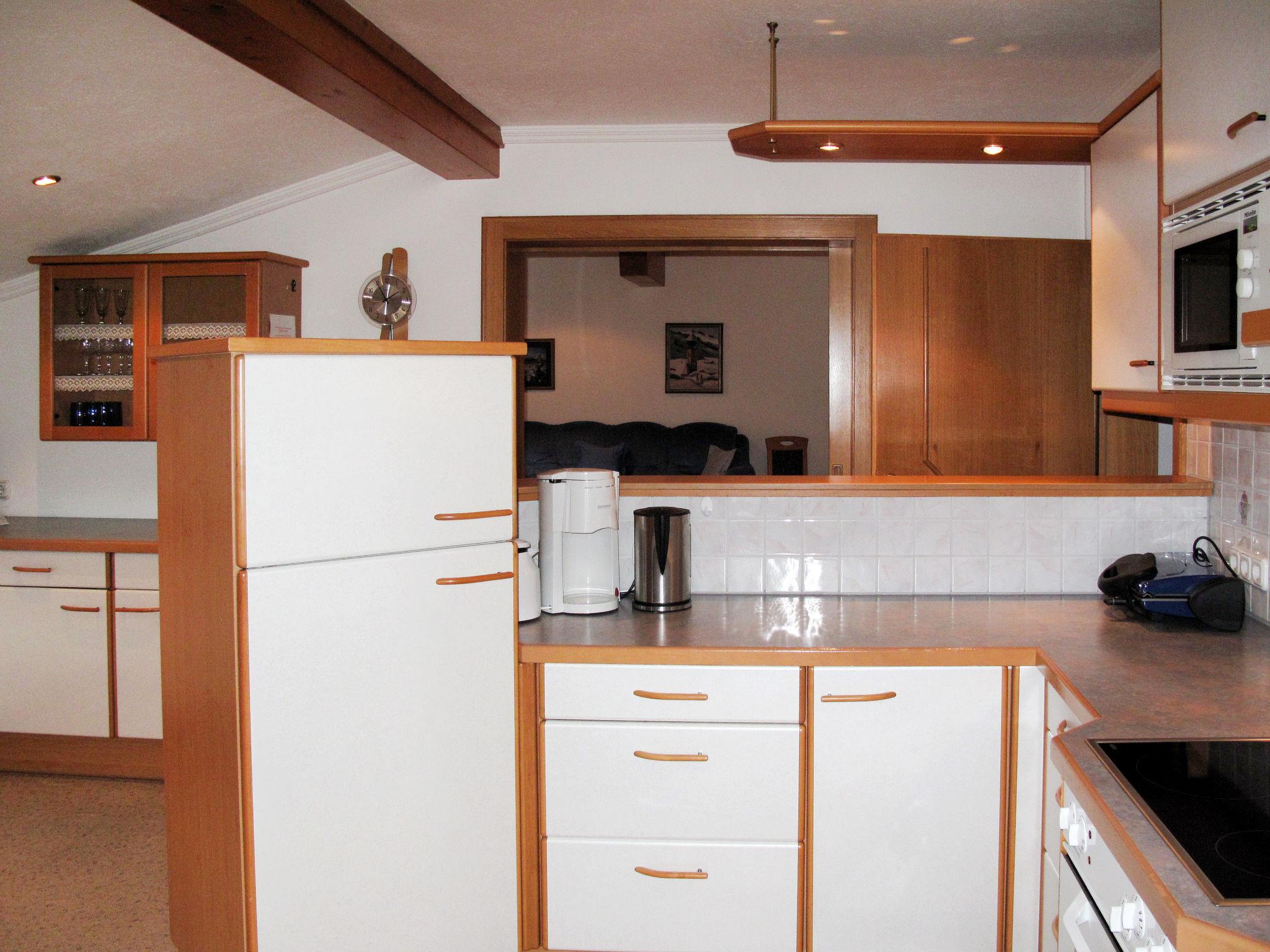 "Liftblick", 3-room apartment 105 m2 on 2nd floor. Cosy furnishings: large living/sleeping room with 1 double sofabed and cable TV. Exit to the balcony. 2 rooms, each room with 1 double bed. Exit to the balcony. Large kitchen (oven, dishwasher, 4 ceramic glass hob hotplates, toaster, kettle, microwave, electric coffee machine) with dining nook. Exit to the balcony. Bath/shower, sep. WC. Heating. Wooden floors, carpet. Balcony. Facilities: baby cot. Internet (WiFi, free). Garage (1 car). Please note: non-smokers only. 50614-001012-2020