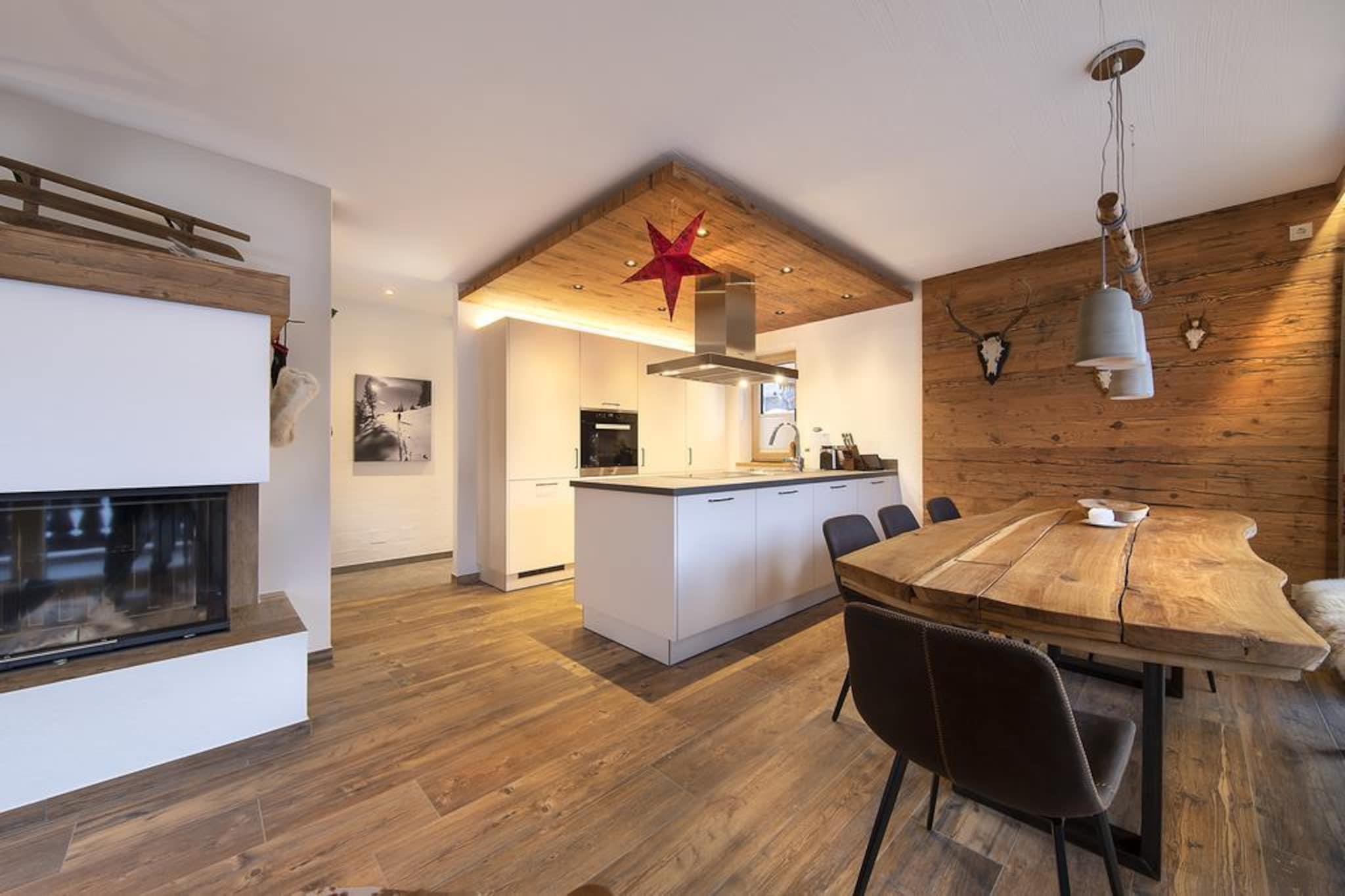 In a very special location, south-west of the famous Neukirchen am Großvenediger, surrounded by fresh mountain air, green meadows and beautiful snowy white slopes, this beautiful, luxurious chalet is built on the sunny slope of the Rossberg. The beautiful chalet was built with character. The liberal use of wood, distinctive details, a perfect finish, combined with the use of high-quality materials, make the house extremely comfortable and luxurious. You feel at home all the way from the first moment. Your chalet, where you are the only guests, has 3 floors. One of these floors is the living floor, which offers a great view through the huge windows. In addition to a living and dining area, with cosy wood burning stove, there is also a modern, open kitchen equipped with all modern equipment. The bedrooms, which are distributed over the floors, are very atmospheric and have high-quality furnishings. You will also have your own private sauna. You can park your car (or two cars) in the partly covered parking spaces, subject to availability. There are more chalets in the immediate vicinity, creating a kind of village. There is a centrally located ski rental and ski school. In addition, there is an "Imbiss" with a small menu for a snack or drink. Do you like fresh bread every day? No problem, you can order these at the reception. The ski lift with practice slope is within walking distance of the chalet, perfect for families with small children or beginners. Advanced skiers can be brought to the lift of the beautiful Wildkogel Arena ski area with the free ski bus. Due to the location right on the slopes, you can ski back to your chalet when there is plenty of snow. Would you like something different? The ski areas Zillertal Arena or Kitzbühel / Kirchberg are both only a few minutes by car. In summer, the surrounding mountains and many attractions in the immediate vicinity offer plenty of opportunities for the active holidaymaker or those seeking peace and quiet. In the period from May to October, you will receive the National Park Sommercard as a guest with free access to the lifts, swimming pools, activities, public transport and much more. Highly recommended! A stock of firewood is included in the price.