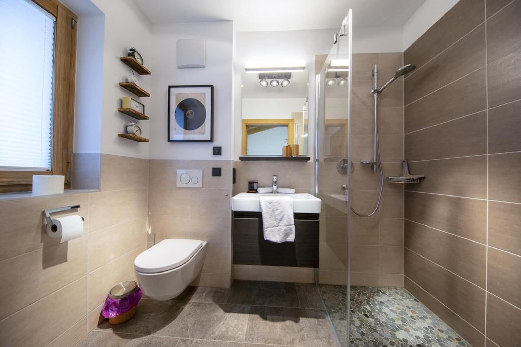 Ground floor: (hallway, ski storage, Internet access) On the 1st floor: (Living room(TV, balcony), open kitchen(cooker, oven, dishwasher, fridge-freezer), toilet, relaxation area(shower, sauna, toilet, deckchairs)) On the 2nd floor: (Bedroom with bathroom(double bed, shower, washbasin, toilet), Bedroom with bathroom(double bed, shower, washbasin, toilet), Bedroom with bathroom(double bed, shower, washbasin, toilet)) carport, Internet access, TV(cable, digital), stove(tiled), balcony or terrace, parking, parking, swimming pool(shared with other guests, natural swimming pond)