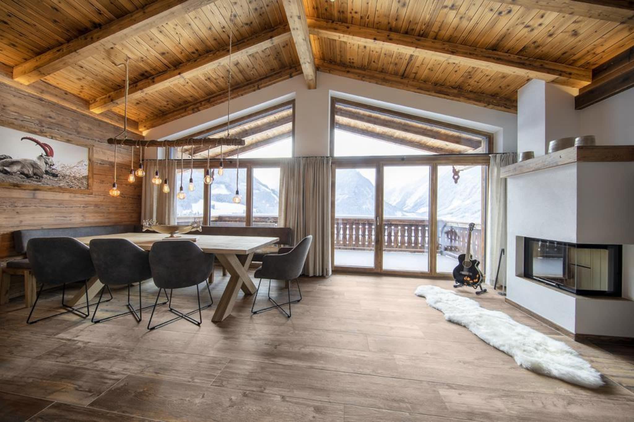 In a very special place, southwest of the well-known Neukirchen am Großvenediger and amidst fresh mountain air, green meadows and beautifully snowy white hills, this very luxurious chalet was built on the sunny slope of the Roßberg. The magnificent chalet has been designed with character. The use of lots of wood, specific details and perfect workmanship combined with the use of high-quality materials ensure a particularly comfortable and luxurious house. You immediately feel at home. Your chalet, which you will of course live in alone, has three floors. One of the floors is the living floor, which offers an outstanding view with its huge windows. In addition to a living and dining area with a cozy wood-burning stove, there is a modern open kitchen equipped with up-to-date appliances. The bedrooms, which are spread across the floors, are very comfortable and furnished to a high quality. You also have your own private sauna. You can park your car (two pieces) in the partially covered parking spaces. There are other chalets in the immediate vicinity, creating a kind of village. A ski rental with a ski school is centrally located. There is also a snack bar with a small menu for a snack or a drink. Would you like fresh bread rolls every day? No problem, these can be ordered at reception. The ski lift with practice area is easily accessible on foot from the chalet and is perfect for families with small children or beginners. Advanced skiers can take the free ski bus to the lift of the magnificent Wildkogel Arena ski area. With the location right on the slopes, you can ski back to the vicinity of your chalet if there is enough snow. Would you like to experience something different? The Zillertal Arena or Kitzbühel/Kirchberg ski areas are only a few minutes away by car