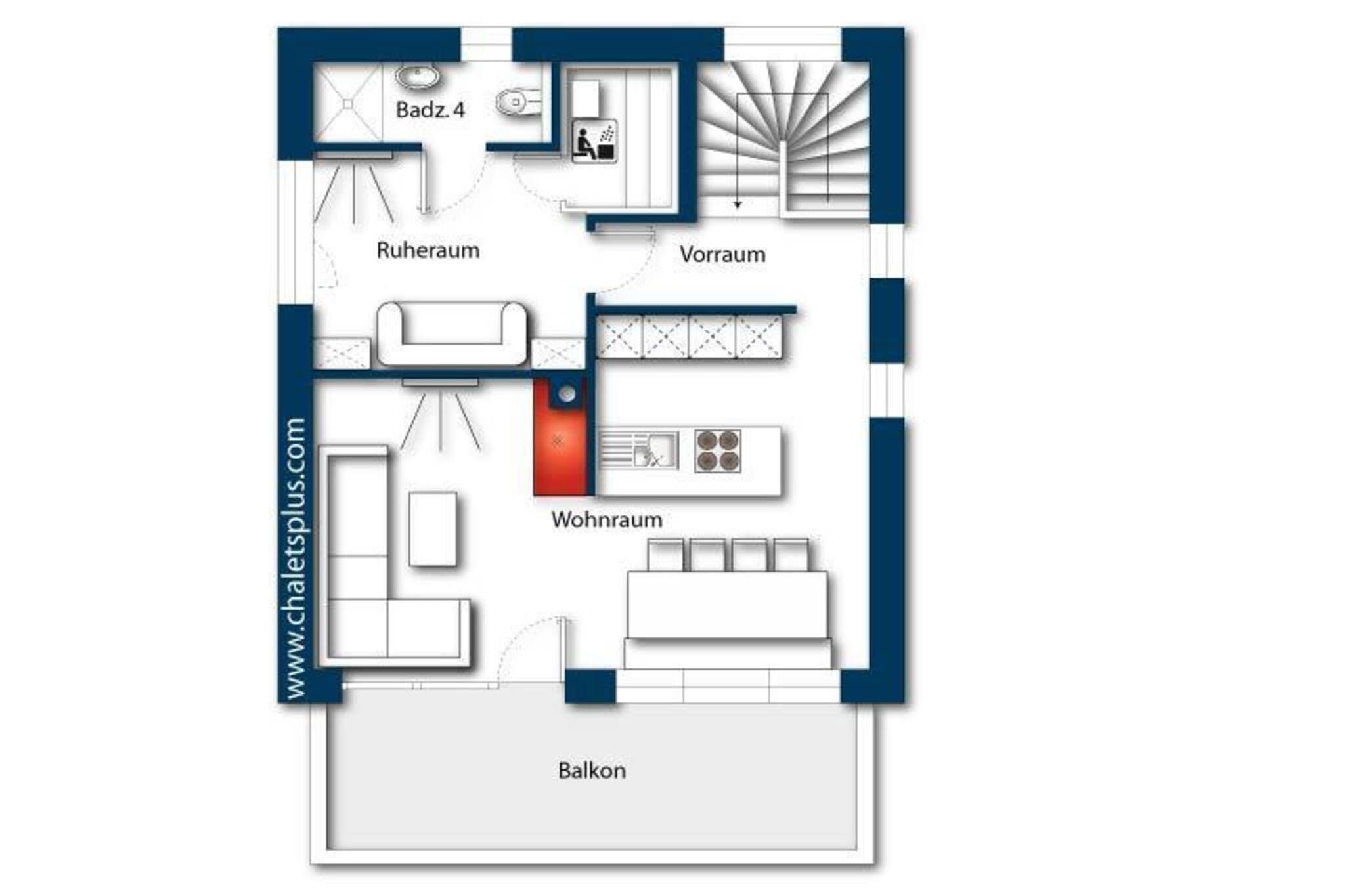 Ground floor: (hallway, Bedroom with bathroom(double bed, shower, washbasin, toilet), Internet access) On the 1st floor: (Living room(TV, balcony), open kitchen(cooker, oven, fridge-freezer), toilet) On the 2nd floor: (bedroom(double bed), bedroom(double bed), bedroom(double bed), bathroom(shower, washbasin, toilet), bathroom(shower, washbasin, toilet)) relaxation area(shower, sauna, toilet, deckchairs), ski storage, carport, Internet access, stove(tiled), balcony or terrace, parking, parking, swimming pool(shared with other guests, natural swimming pond)