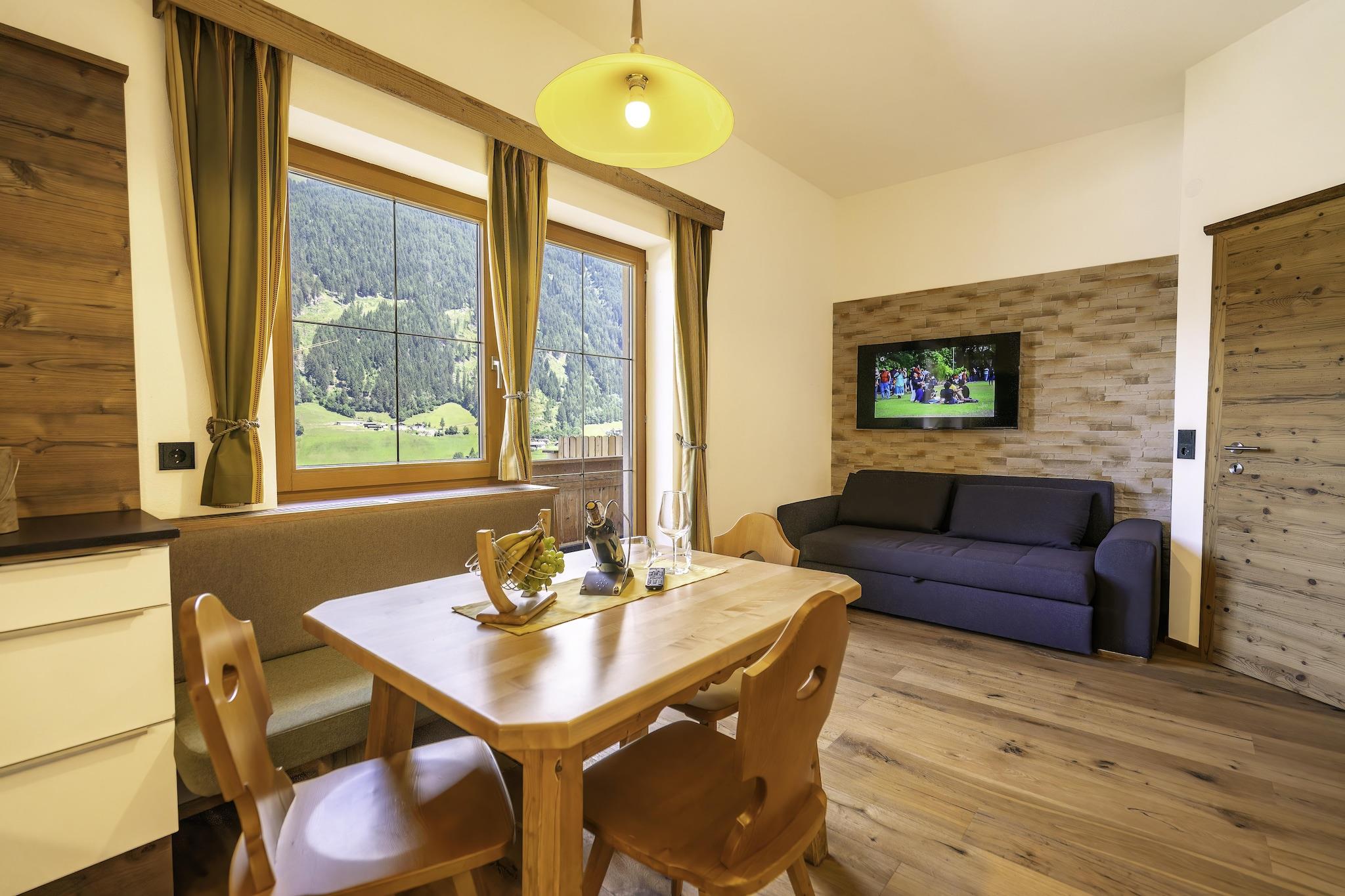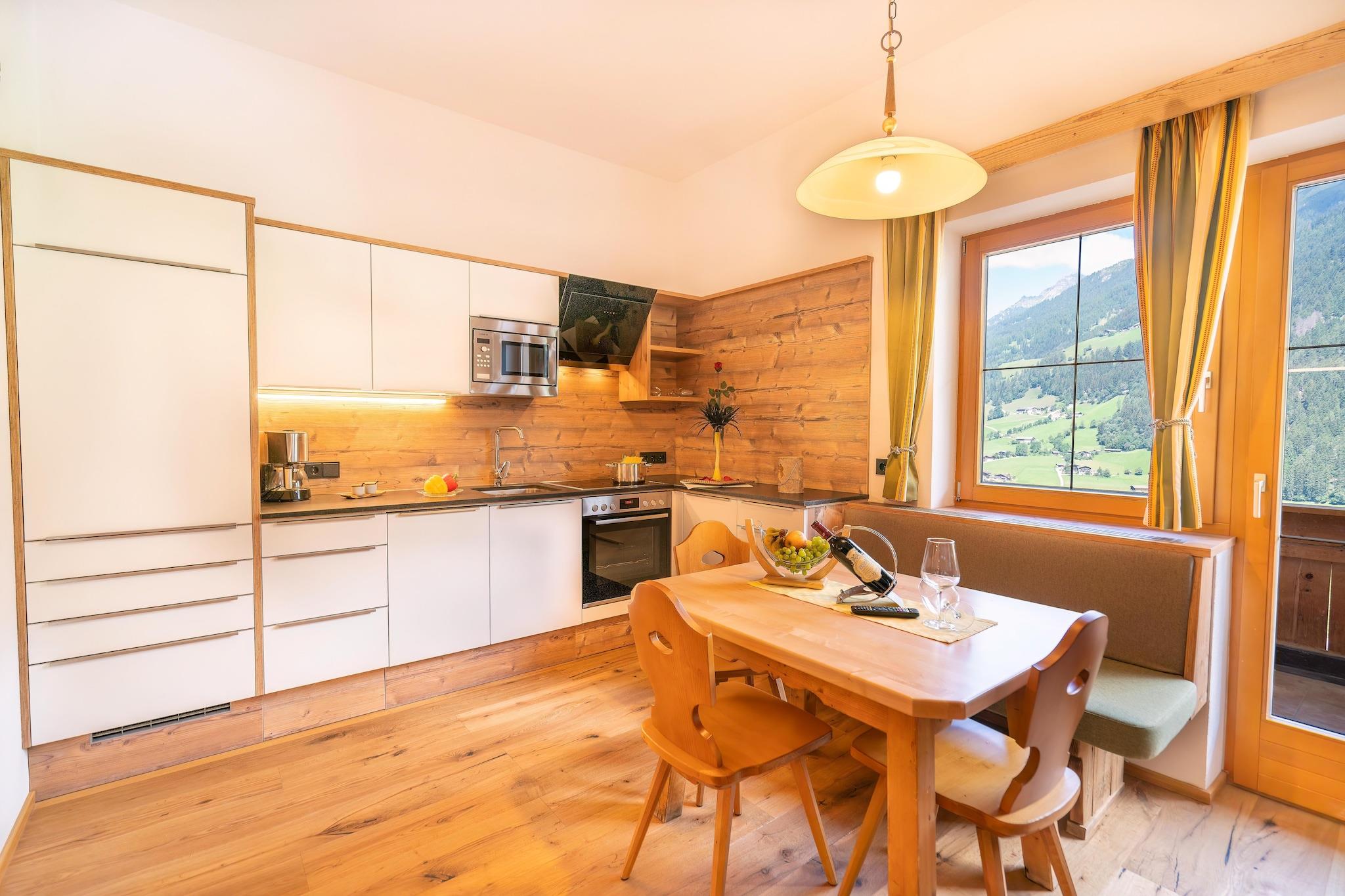 This completely renovated holiday apartment in a modern alpine style in Neustift in the Stubai Valley is a fantastic base for mountain and ski enthusiasts. Spend your holiday in this comfortable atmosphere, surrounded by nature! The impressive mountain scenery of the Stubai Valley can be rediscovered time and again while hiking, mountaineering, and mountain biking. Unlimited skiing fun on the Stubai Glacier, a family-friendly atmosphere at the Schlick 2000 ski resort, or the beginner-friendly Serlesbahnen ski area offer something for everyone. The Stubai Apartments are within walking distance of the nearest ski lift and the center of Neustift. The apartment, furnished with high-quality materials and furniture, features a cozy living, cooking, and dining area. The open-plan bedroom has a king-size bed, and the living area includes a sofa bed for two. There is also a balcony with a table and chairs for outdoor seating, satellite TV, Wi-Fi, and a convenient ski room with boot warmers in the basement. The apartment is furnished with high-quality materials and features a comfortable living, cooking, and dining area. Parking space no. 19 is allocated to this apartment and is available free of charge to guests directly in front of the building.