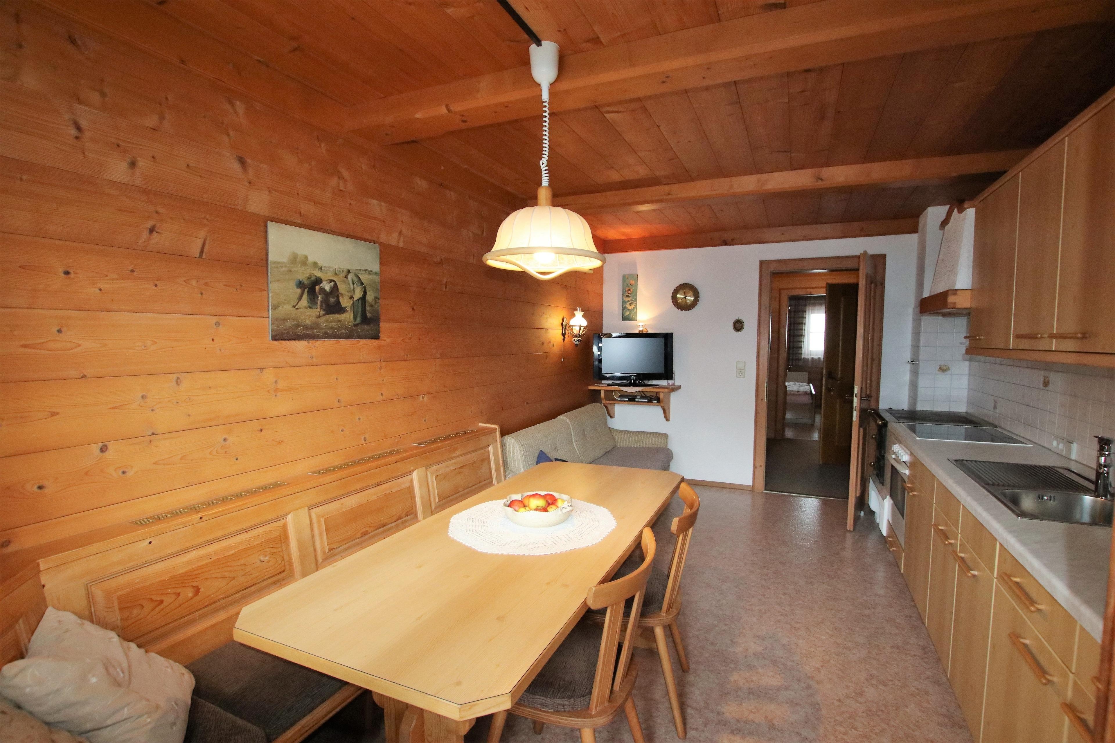4-Zimmer-Wohnung, in der 1. Etage, mit ca. 70 m² Wohnfläche. Wohnküche (Backofen und Herd mit 4 Ceranfeldern, zusätzlicher Holzherd, Kühlschrank, Kaffeemaschine und Wasserkocher, ein Essplatz mit Eckbank. Balkon mit Panoramablick. Dusche/WC. Schlafzimmer mit Doppelbett, und direktem Zugang zu einem weiterem Doppelzimmer, (Einzelbett als Zusatzbett). Neben der Wohnung befindet sich ein weiteres Doppelzimmer mit Dusche/WC.