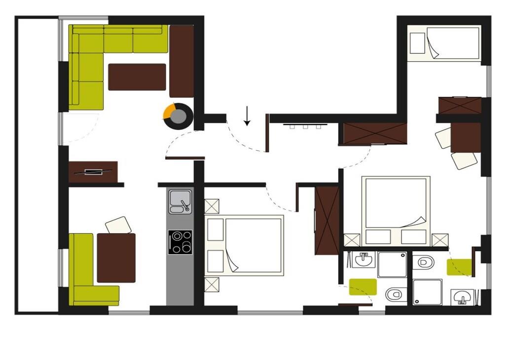 The Lärchenwald holiday home is located on the sunny high plateau of Niederthai at 1,550 meters above sea level. Thanks to its location off the Ötztal main road, Niederthai and the Lärchenwald house are the epitome of peace and relaxation in every season. Our comfortable 80 square meter apartment offers ample space for relaxing after an active day in the Ötztal mountains. The apartment features two separate bedrooms, each with its own shower/WC, a bunk room (ideal for children), a fully equipped kitchen with a dining table, a cozy living room with a tiled stove, satellite TV, and a south-facing balcony with a magnificent view. As an additional service, we offer free Wi-Fi.