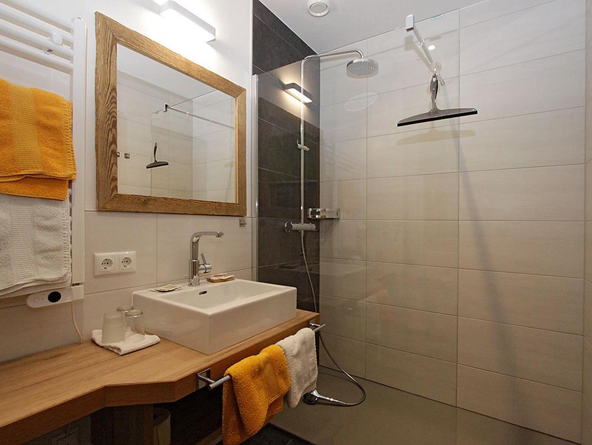Helle moderne Bäder, D/WC, SAT-TV, integriertes Radio. Frühstücksbuffet und Parklplatz beim Haus.