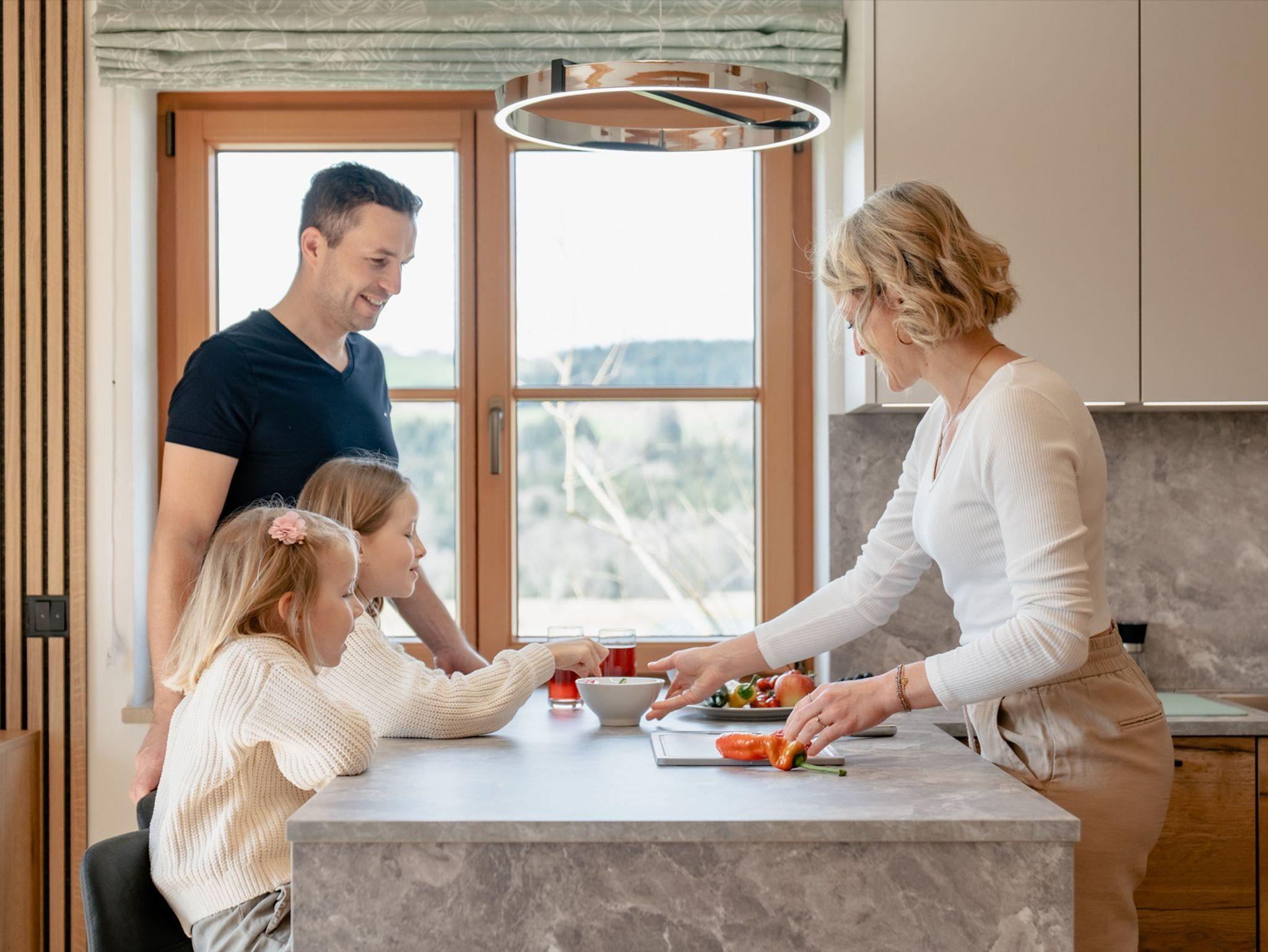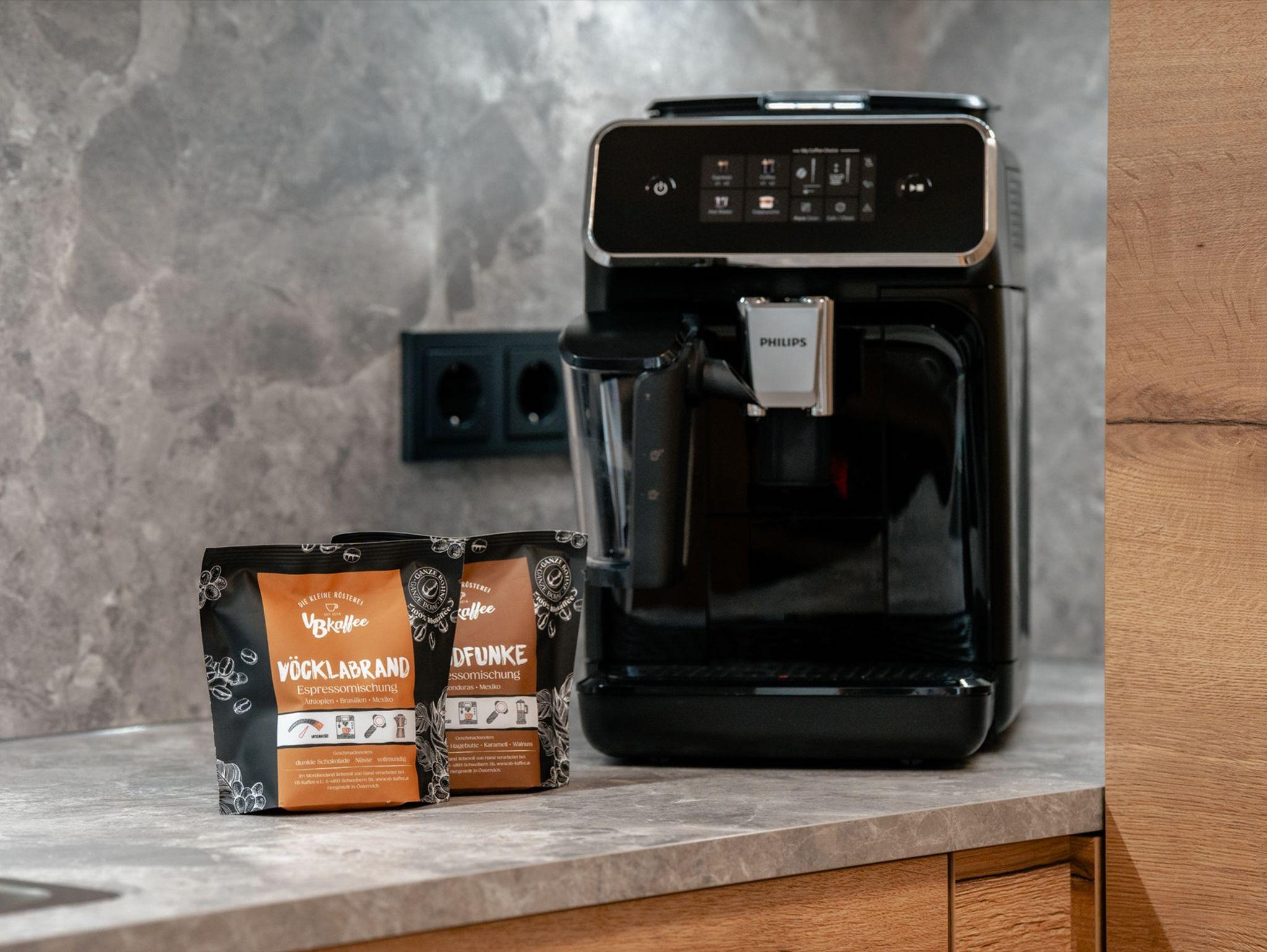 Die gut ausgestattete Küche lädt euch zum gemütlichen Pyjama-Frühstück ein. Zur Ausstattung der Küche zählen z.B.: ein großer Kühlschrank, Kaffeevollautomat, ein Wasserkocher sowie ein Kochfeld mit Backrohr.