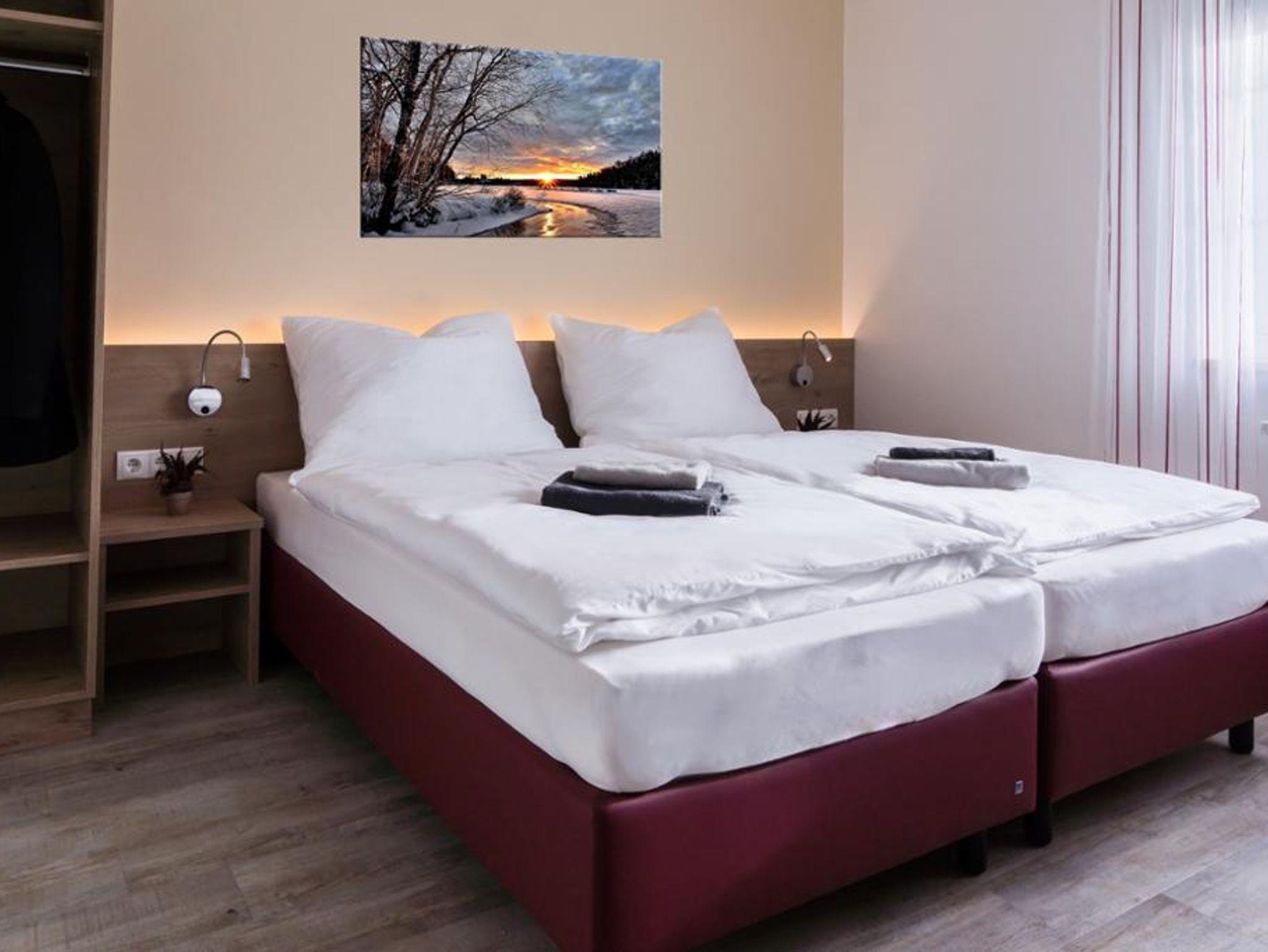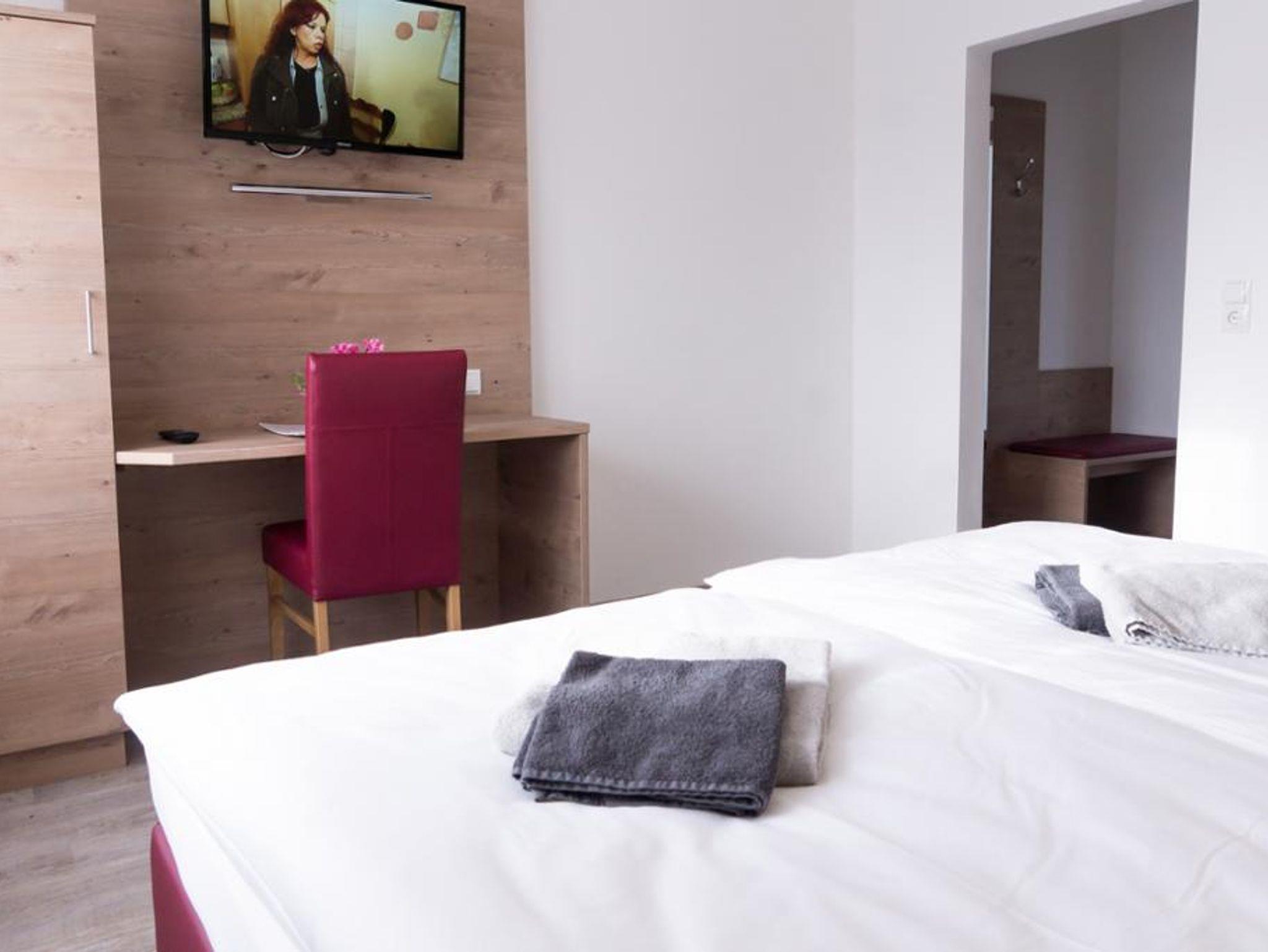 Zimmerausstattung: Dusche, WC, Fön,Gäste-WLAN, Flat Screen TV mit Sat.