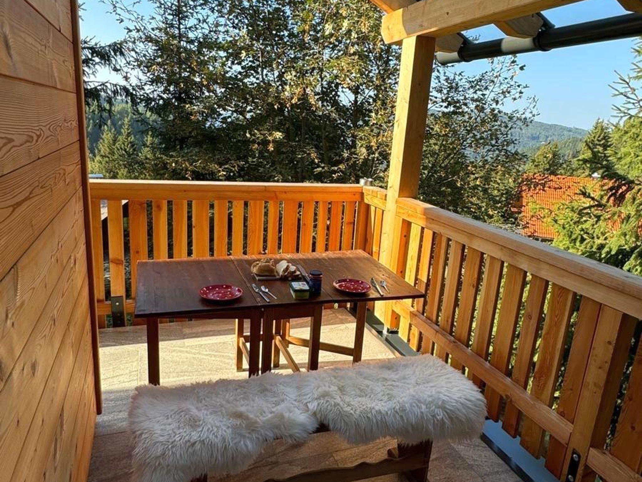 Der Balkon mit der überdachten Winterlounge ist ein gemütliches Plätzchen um bei einer Tasse Tee das Winterparadies zu genießen.