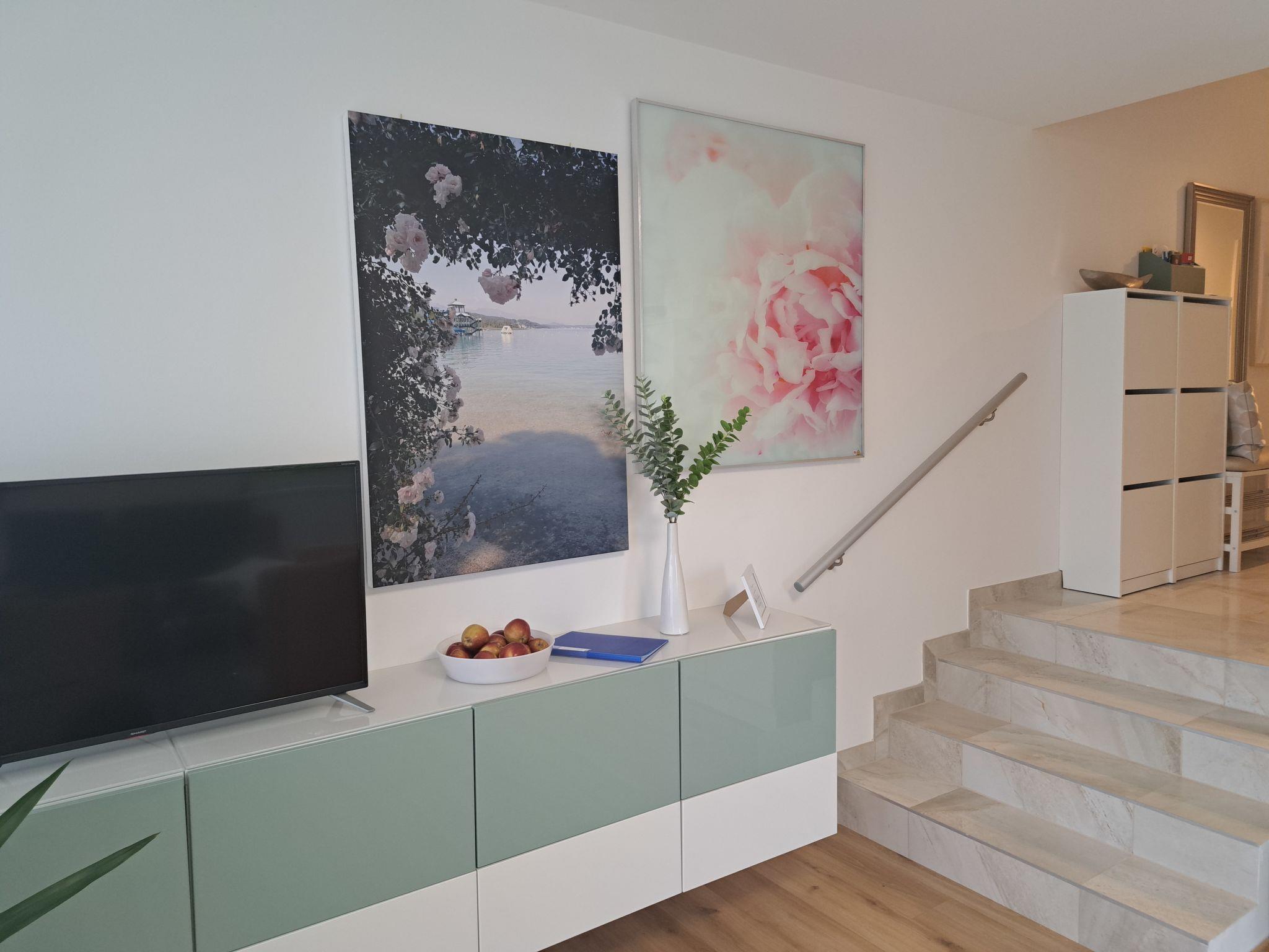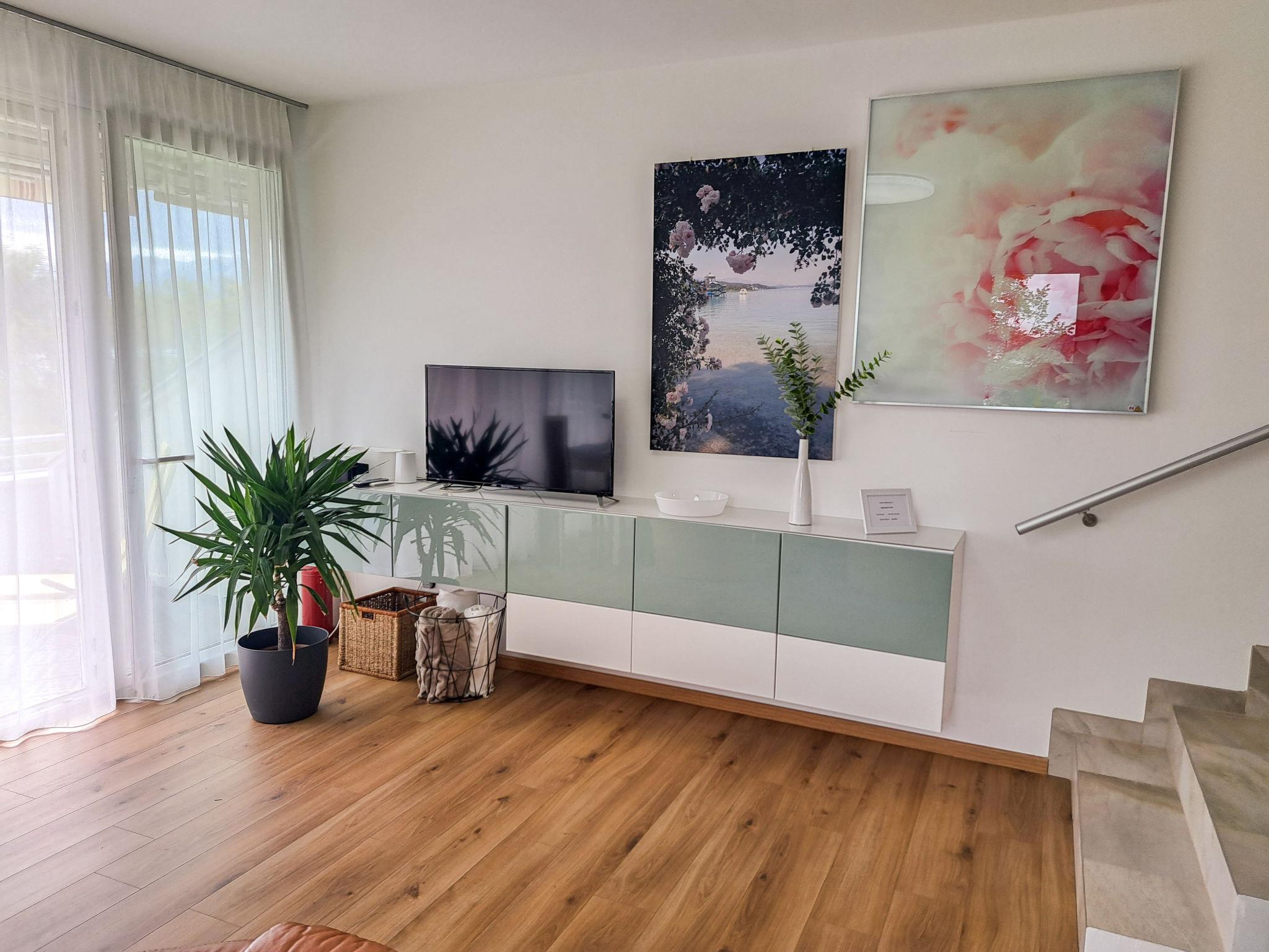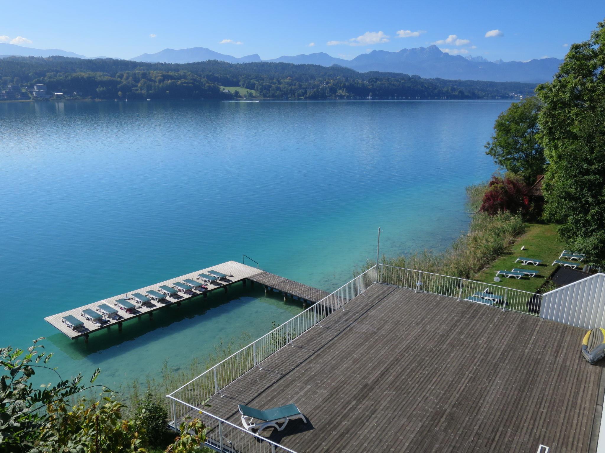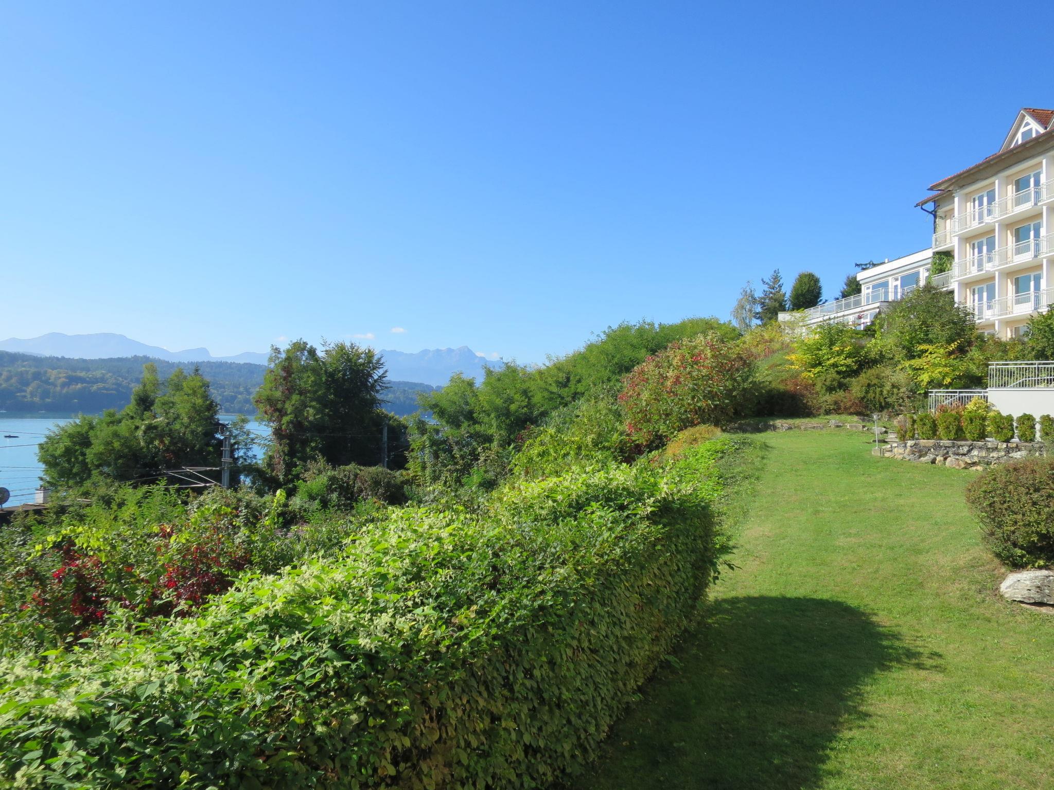 Töschling 2 km from Pörtschach: Residence "Appartement Vinzek", 4 storeys. 24 apartments in the residence. In the district of Töschling, in an elevated position, 250 m from the lake, direct access to the beach, south facing position. For shared use: lawn for sunbathing. Private beach, parking at the house. Supermarket 700 m, restaurant 400 m, bus stop "Töschling" 300 m, railway station "Töschling" 400 m. Nearby attractions: Minimundus 14 km, Pyramidenkogel 24 km, Reptilienzoo Happ 14 km. Well-known ski regions can easily be reached: Gerlitzen 35 km. Well-known lakes can easily be reached: Wörthersee 250 m. Please note: railway line 150 m from the property.