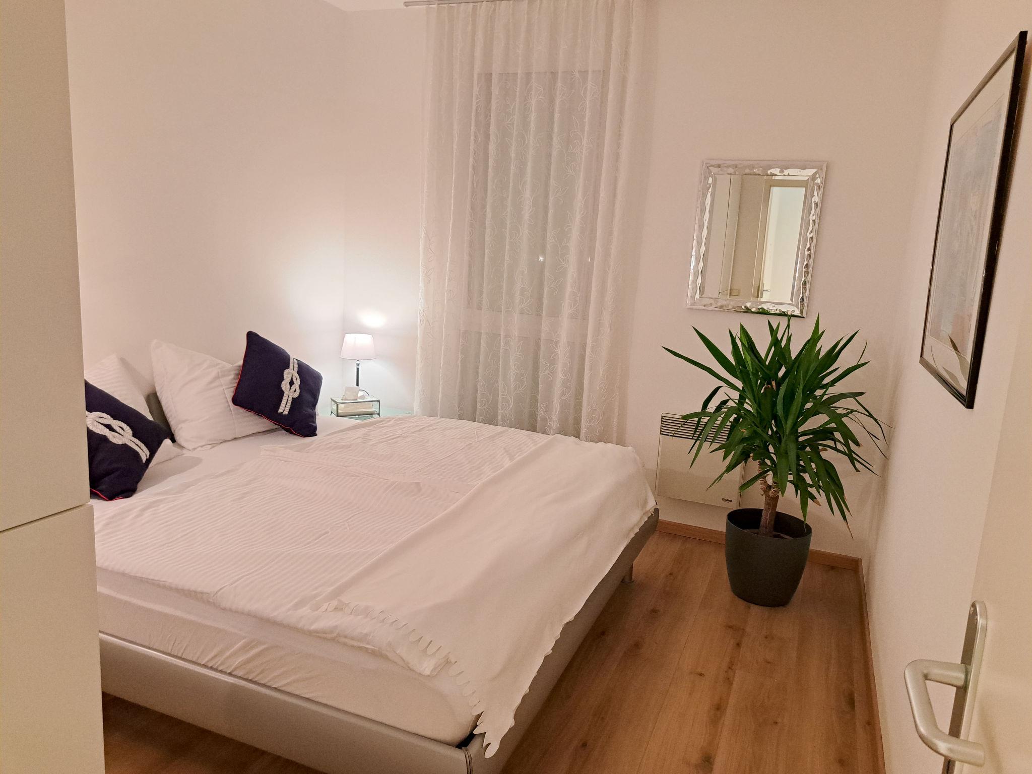 "Vinzek", 3-room apartment 60 m2. Bright, very beautiful furnishings: living/dining room with bath/WC, satellite TV and electric heating. Exit to the terrace. 2 double bedrooms. Open kitchen (dishwasher, 4 ceramic glass hob hotplates, toaster, kettle, microwave, electric coffee machine). Parquet floors. Terrace, south facing position. Terrace furniture, electric barbecue. Very beautiful panoramic view of the lake. Facilities: washing machine. Internet (WiFi). Parking (1 car) at the house. Please note: non-smokers only. Smoke alarm.