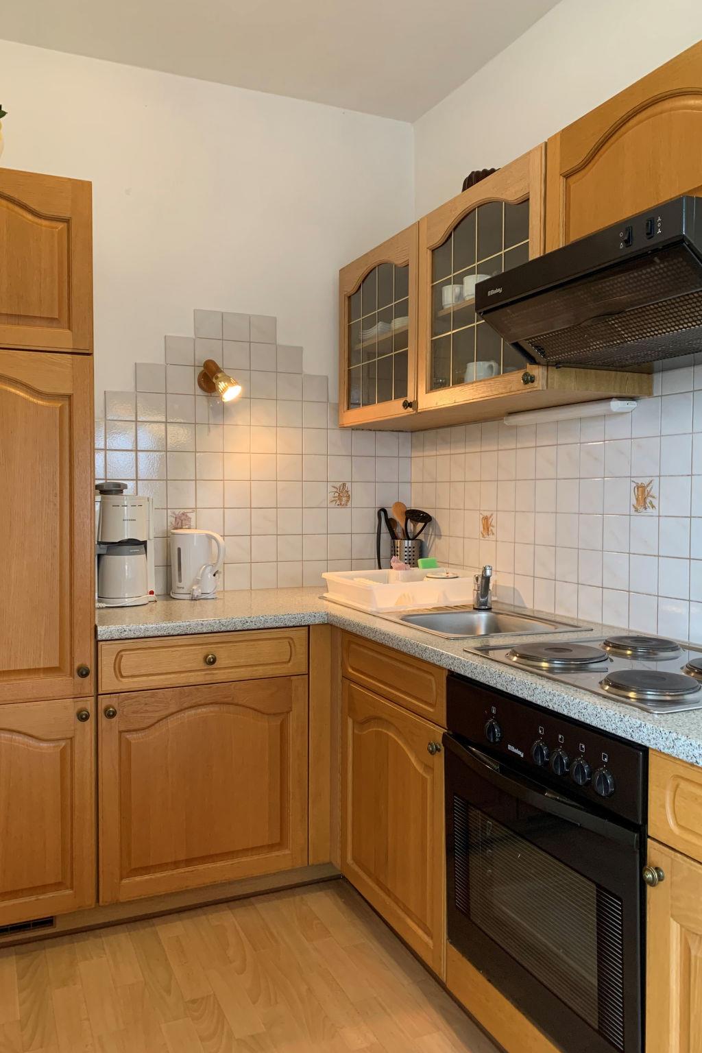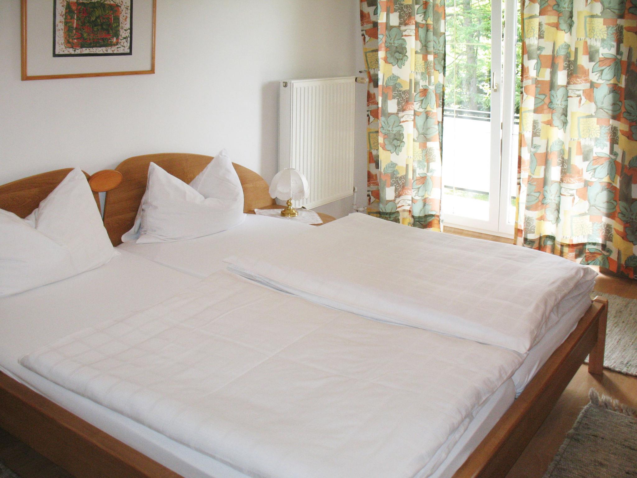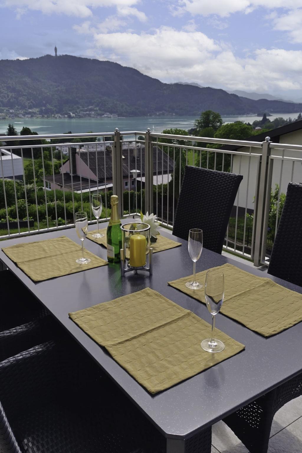"Meran", 2-room apartment 56 m2 on 1st floor. Bright, tasteful furnishings: living/sleeping room with 1 double sofabed, dining table, satellite TV and radio. Exit to the balcony. 1 double bedroom. Exit to the balcony. Open kitchen (4 hot plates, oven, electric coffee machine). Shower/WC. Heating. Parquet floors. Terrace 12 m2, south facing position and west facing position. Balcony furniture, deck chairs (2). Marvellous view of the lake. Facilities: baby cot. Internet (WiFi). Please note: non-smokers only. Maximum 1 small pet/ dog allowed. Smoke alarm.