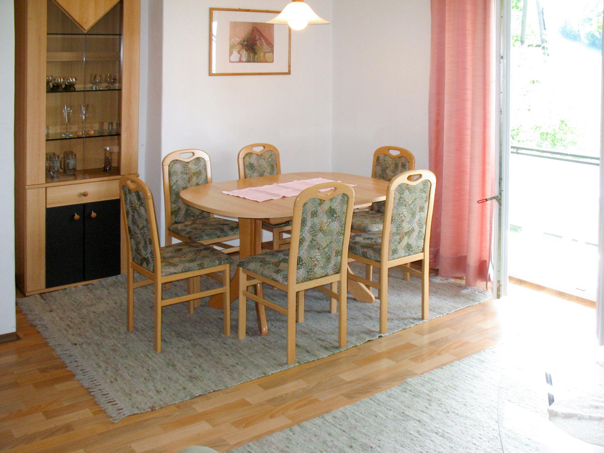 "Meran", 3-room apartment 70 m2 on 1st floor. Bright, tasteful furnishings: living/dining room with dining table, satellite TV and radio. Exit to the balcony. 1 room with 1 bed and 1 double bed. Exit to the balcony. 1 room with 1 bed and 1 double bed. Kitchen (4 hot plates, oven, microwave, electric coffee machine). Shower, sep. WC. Heating. Parquet floors. Small balcony, south facing position, small balcony, south facing position. Balcony furniture. Very beautiful panoramic view of the lake. Facilities: baby cot. Internet (WiFi). Please note: non-smokers only. Maximum 1 small pet/ dog allowed.