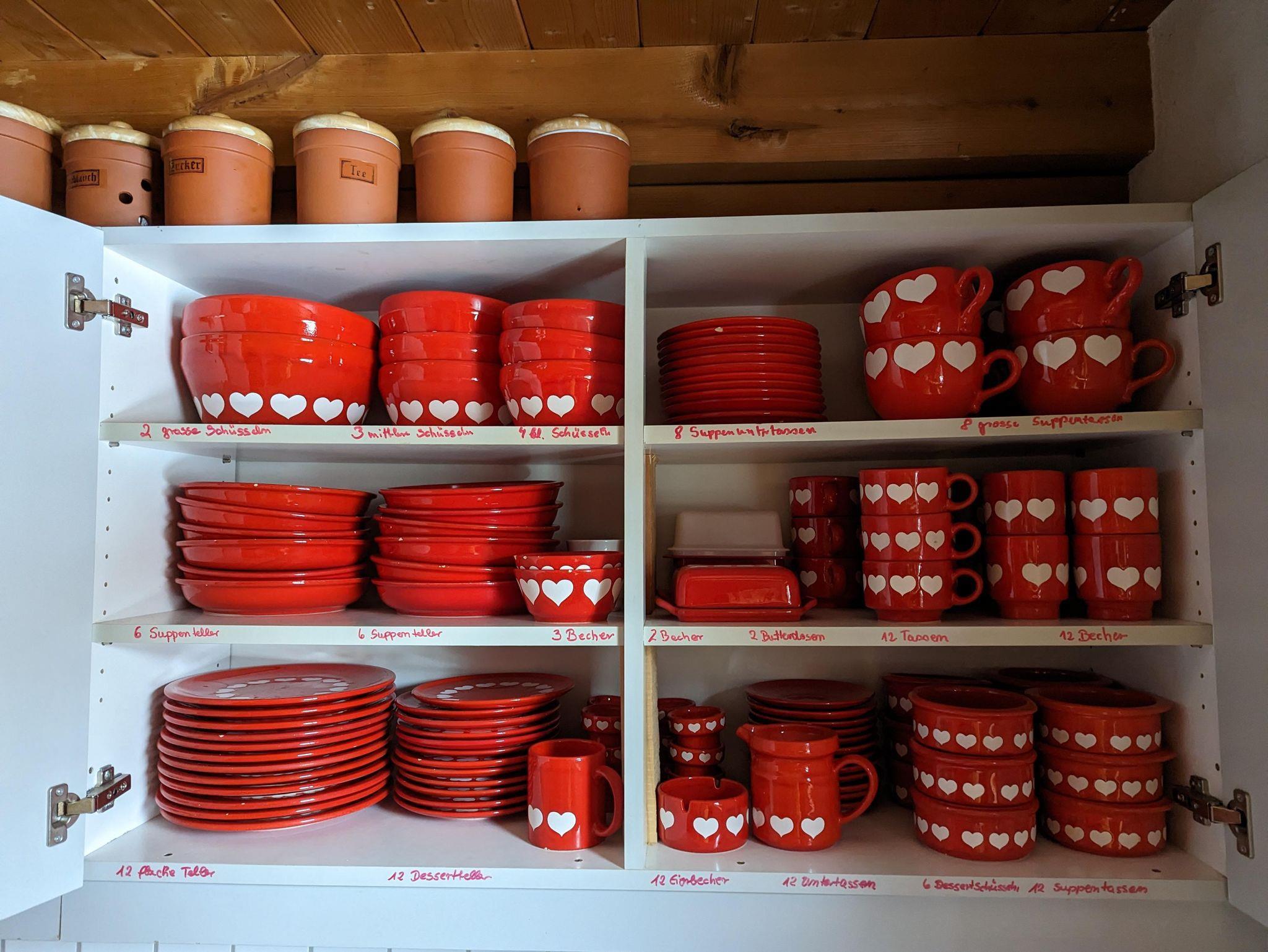 Im Schrank steht rotes Geschirr mit weißen Herzen, im Holzkorb liegen Anzünder für einen muckeligen Kaminabend und in der Sauna duften die Aufguss-Öle nach frischen Kräutern. Lassen Sie den Alltag hinter sich und fliehen Sie in die herrlich reine Bergluft, die unsere Hütte umgibt.