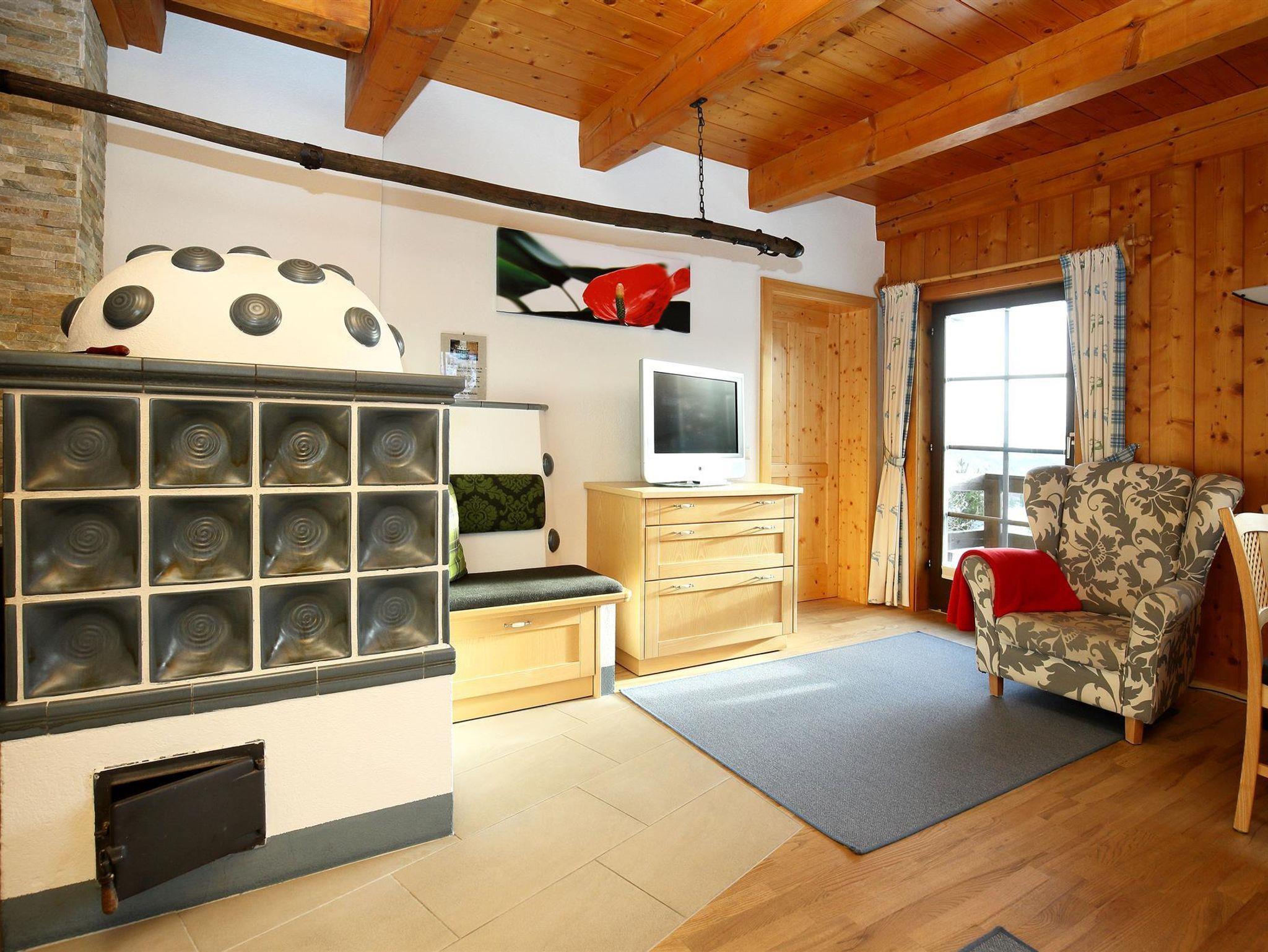 Die Ferienwohnung Typ XL hat 64 m² Wohnfläche, einen großen Wohnraum mit integrierter Küche durch eine Anrichte getrennt, Kachelofen, zwei Doppelzimmer, Bad, getrenntes WC, Vorraum, Ausgang vom Wohnzimmer direkt ins Freie. Schöne Lage mit Blick zur Piste und zum See. Unser ****App. Typ XL ist eine tierfreie Wohnung, deshalb für Allergiker bestens geeignet.