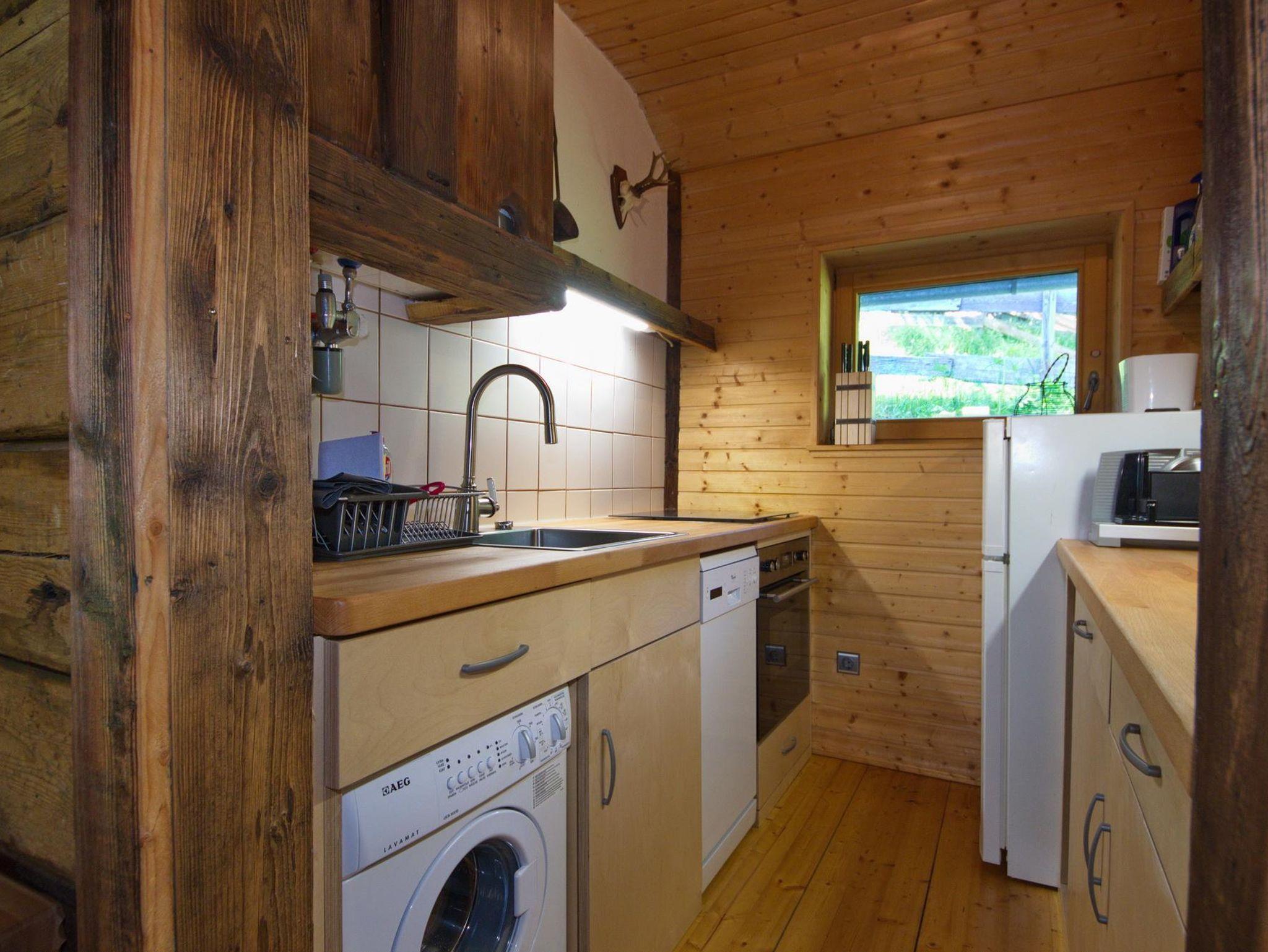 70 m² Wohnfläche, Zirbenholz-Sauna (auch Dampfbad möglich), Stube mit knisterndem Ofenfeuer im Holzherd, gemütlicher Fernsehbereich, kleine Küche mit Kühl-Gefrierkombination, E-Herd mit Backofen, Kaffeemaschine, Geschirrspüler, Waschmaschine, kleines Bad mit Dusche, WC und Fußbodenheizung, zwei Schlafzimmer im Dachgeschoss: ein Doppelbett, ein großes Einzelbett (für 2 Kinder geeignet), Aufbettung im Sofabereich möglich, WLAN, PKW-Stellplatz, Almwiese mit Sitzgruppe und Liegestühlen, 785 m² Grundstück mit Bach, Südhang