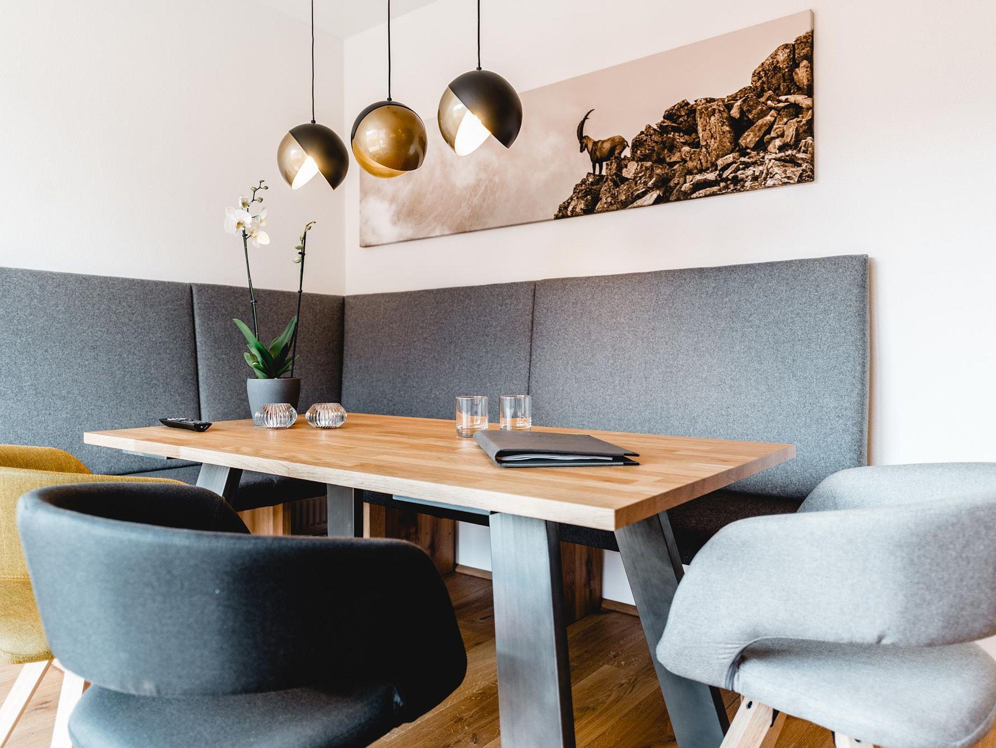 Beim Designkonzept der Apartments lag besonderes Augenmerk auf Gemütlichkeit und Wohnkomfort. Warme Farbtöne und natürliche Materialien verleihen dem Cabin8 das moderne und alpine Flair. Wir freuen uns Sie bei uns begrüßen zu dürfen!