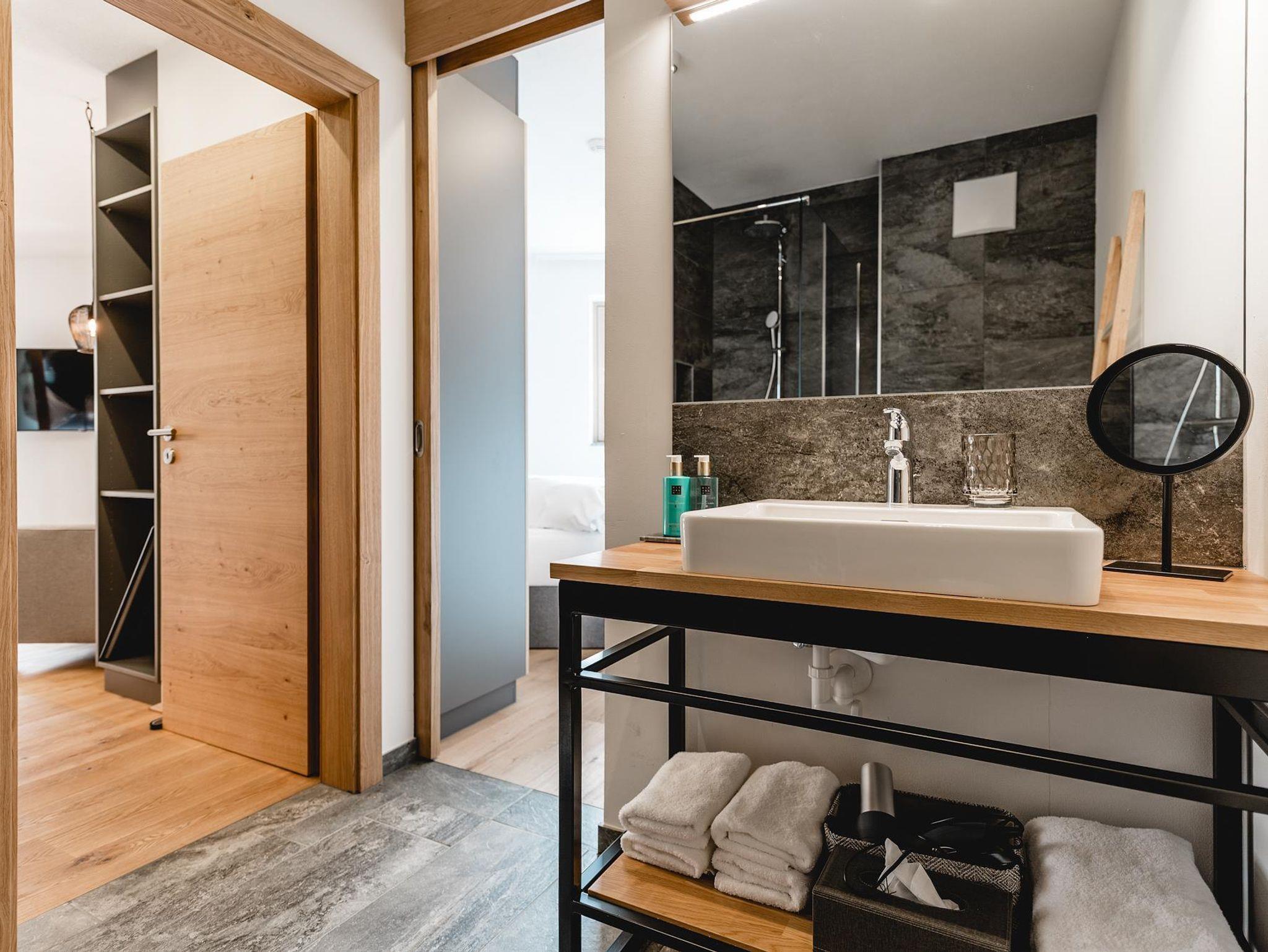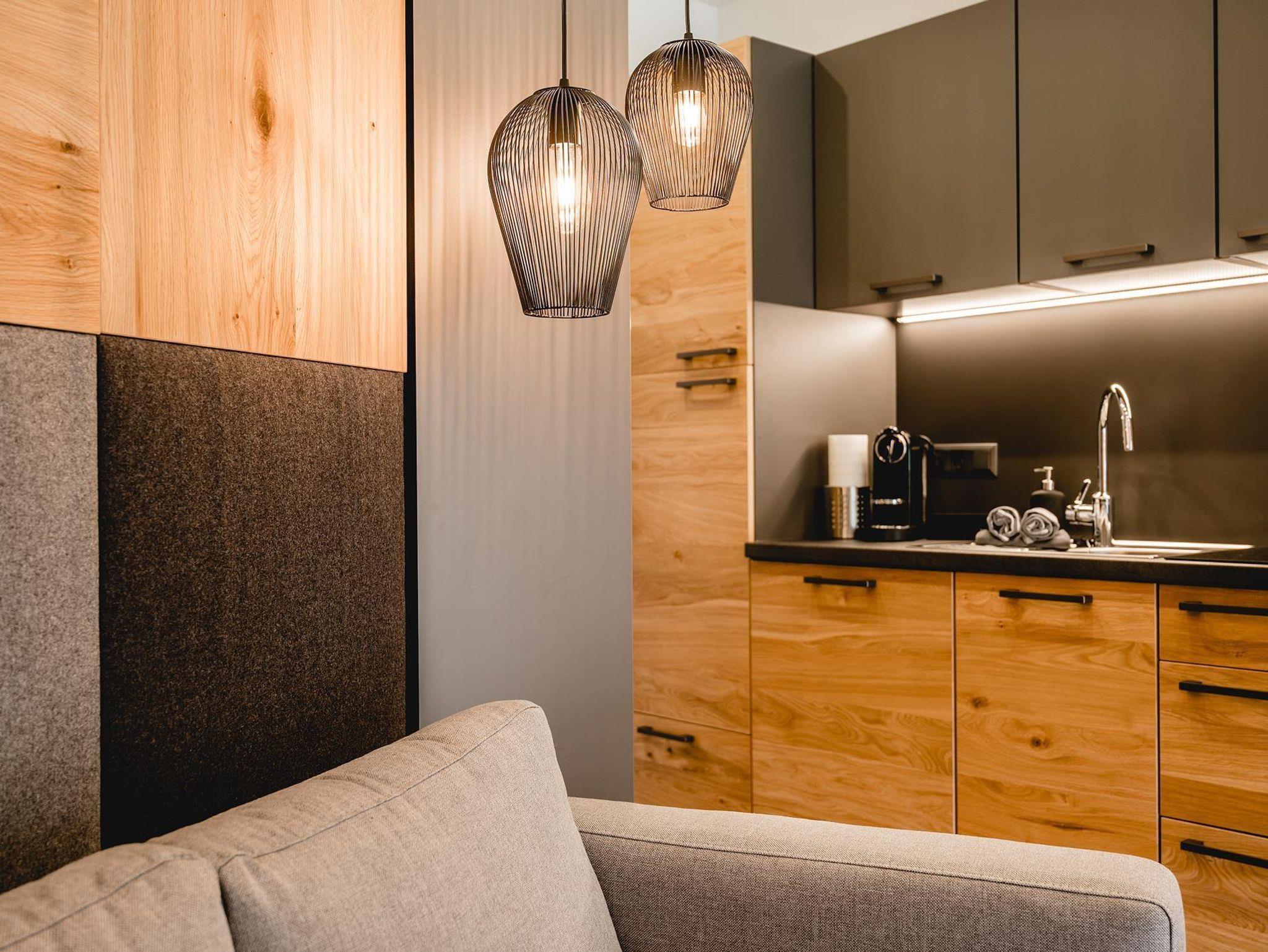 Beim Designkonzept der Apartments lag besonderes Augenmerk auf Gemütlichkeit und Wohnkomfort. Warme Farbtöne und natürliche Materialien verleihen dem Cabin8 das moderne und alpine Flair. Wir freuen uns Sie bei uns begrüßen zu dürfen!