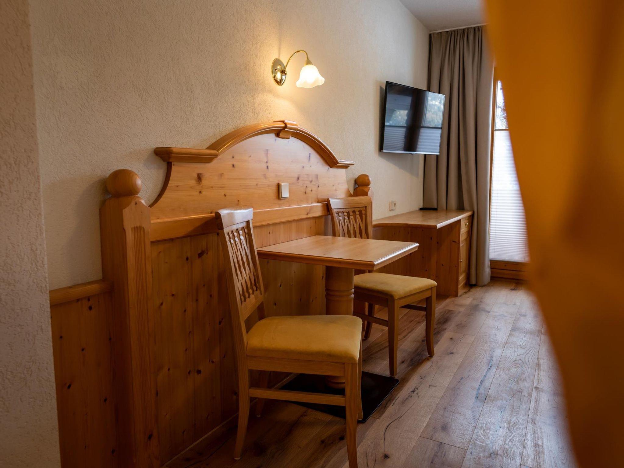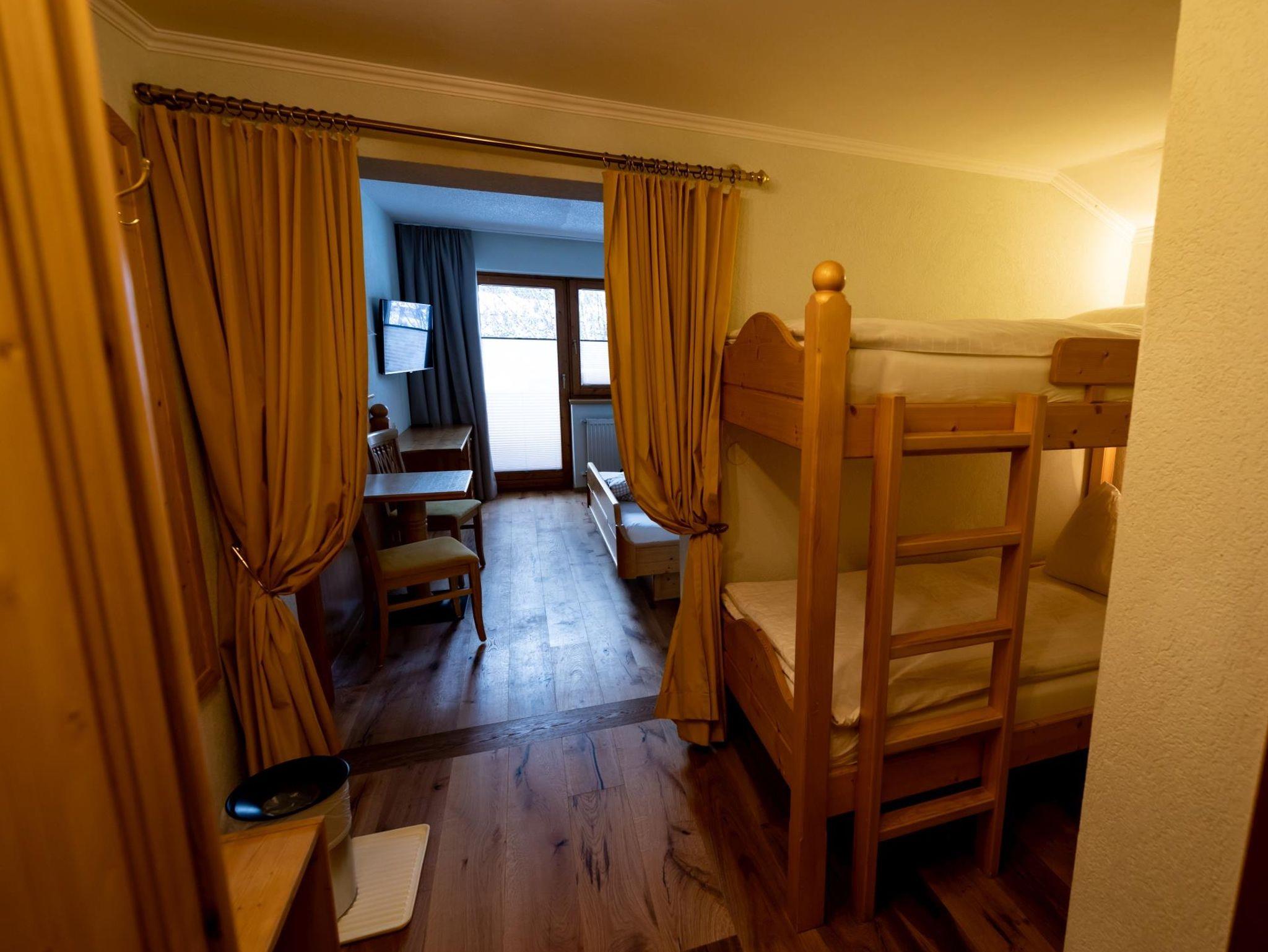 Das 30m² große Familienzimmer ist geeignet für 2 Erwachsene und 2 Kinder. Es ist ausgestattet mit einem Doppelbett, einem Stockbett für maximal 2 Kinder, Sitzecke, Dusche/WC, Sat-TV und Safe.