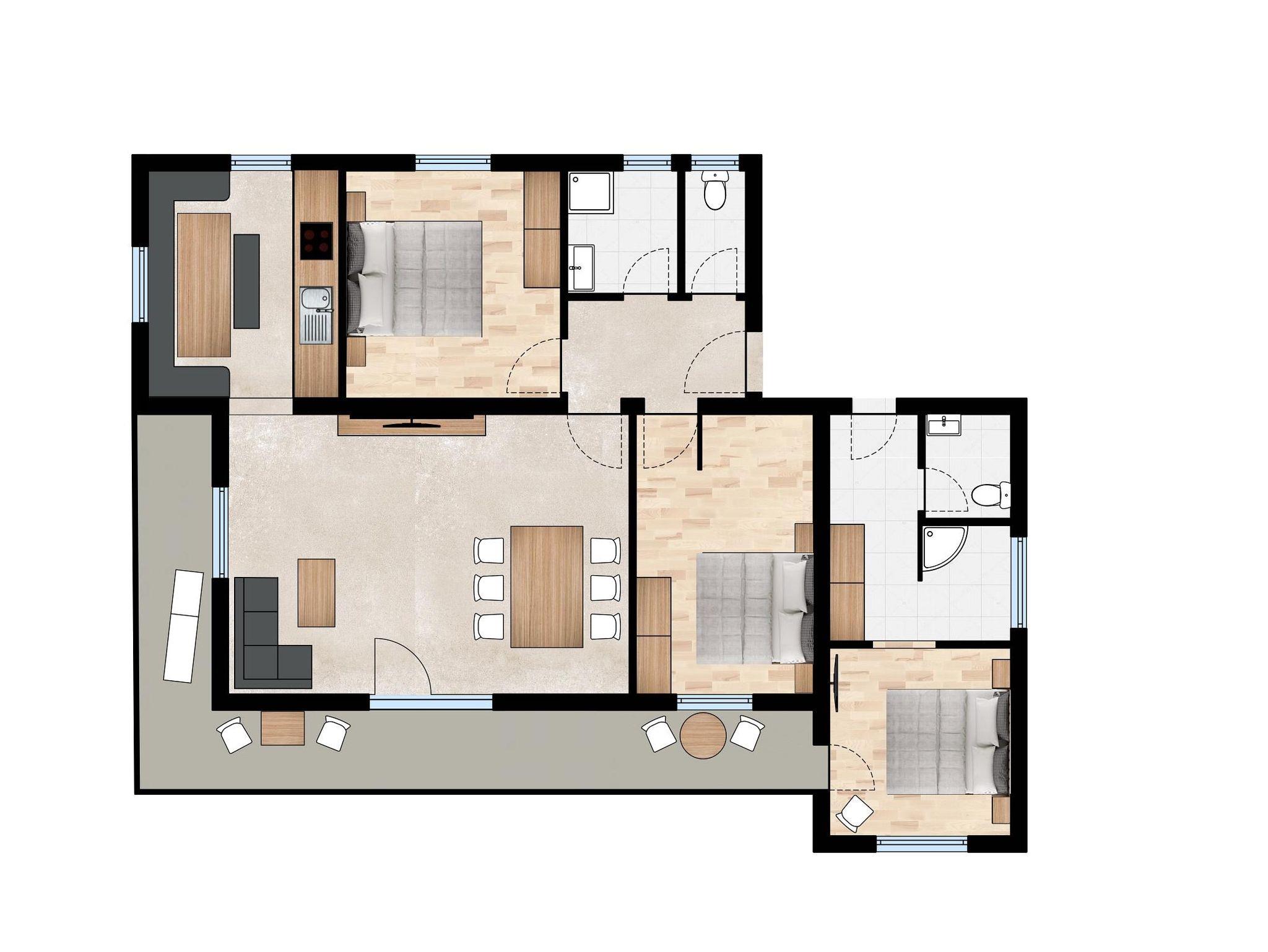 Ob 33m², 63m² oder 96m², ob zu zweit, mit Familie oder Freunden: Findet euer Lieblings-Apartment! Und genießt vom Balkon oder der Terrasse eurer Ferienwohnung den atemberaubenden Blick aufs Karwendelgebirge. Ein Gartengrill steht bereit und auf Wunsch gibt es Montag bis Freitag Brötchenservice.