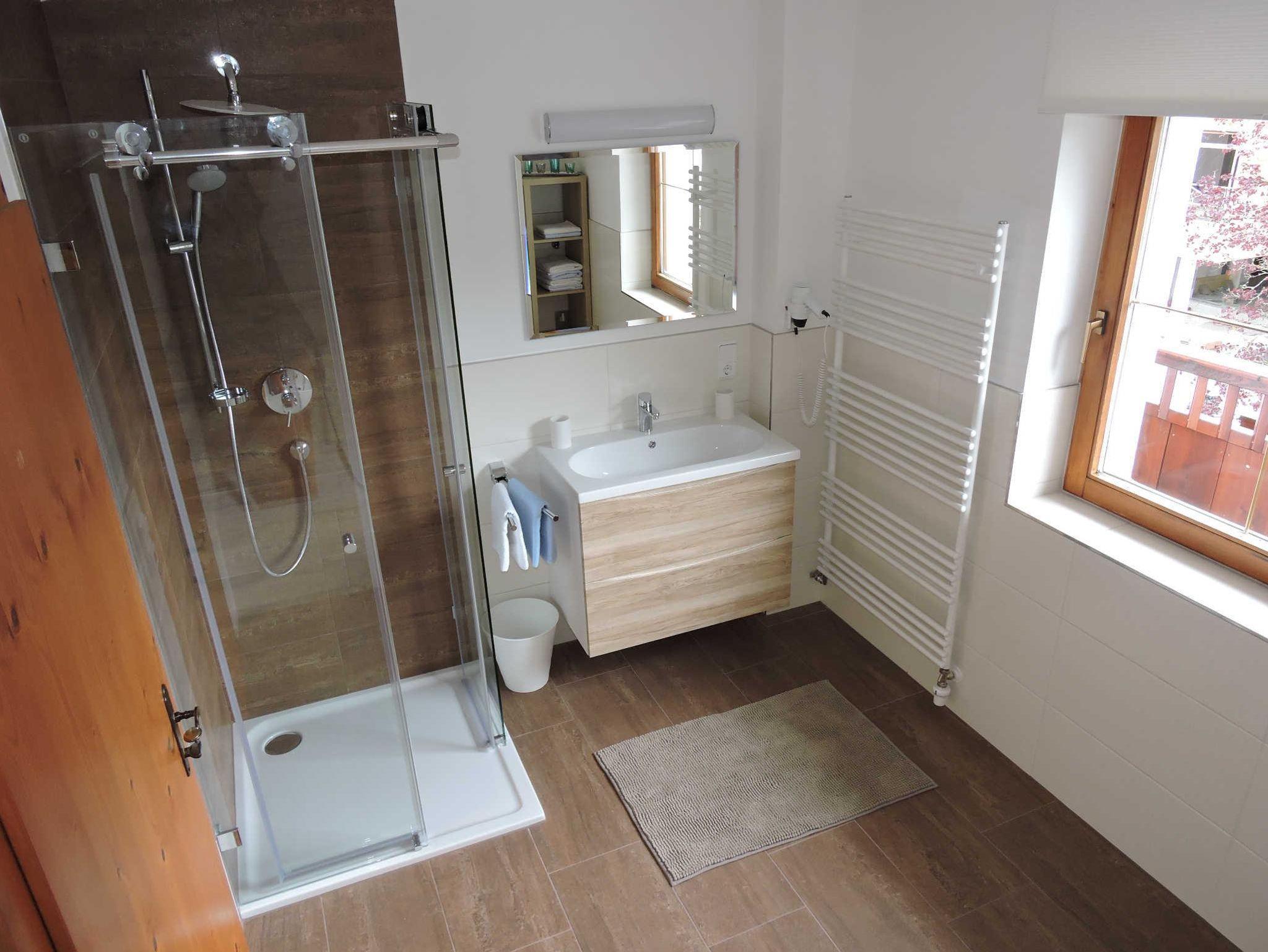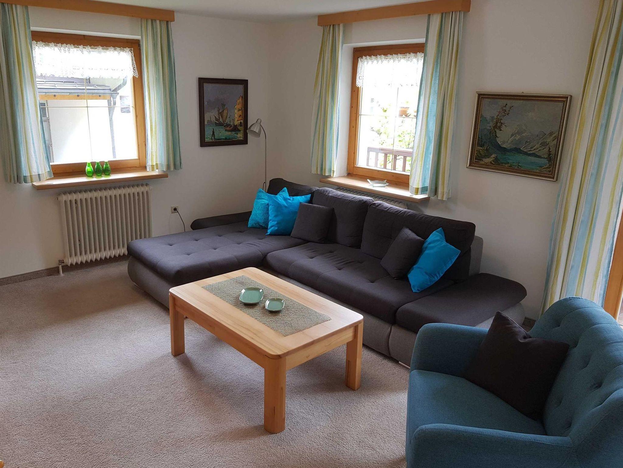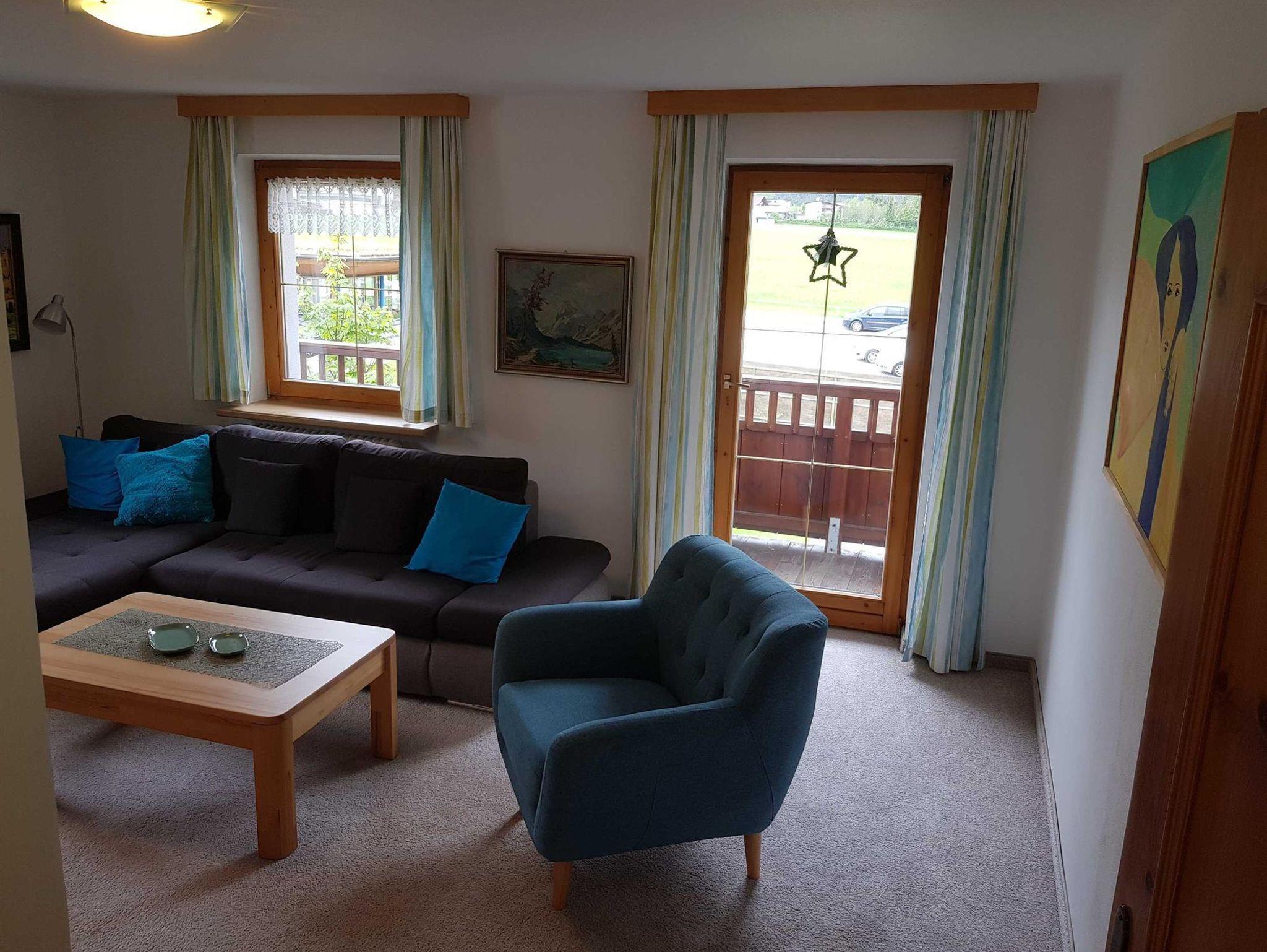 Komfortables Ferienappartement im ersten Stock mit ca. 75m² und Ost-Süd-, Westbalkon. Komplett eingerichtete Küche mit Backrohr, Mikrowelle, Wasser- und Eierkocher, Kaffeemaschine, Toaster und moderner Sitzecke. Das große Wohnzimmer hat eine gemütliche Couchecke, eine kleine Bibliothek und natürlich Sat-TV. Das großzügige Badezimmer ist mit Badewanne und Dusche sowie Radio ausgestattet. Ein separates WC sowie 2 Schlafzimmer, ausgestattet im Tiroler Landhausstil, vervollständigen unsere Ferienwohnung.
