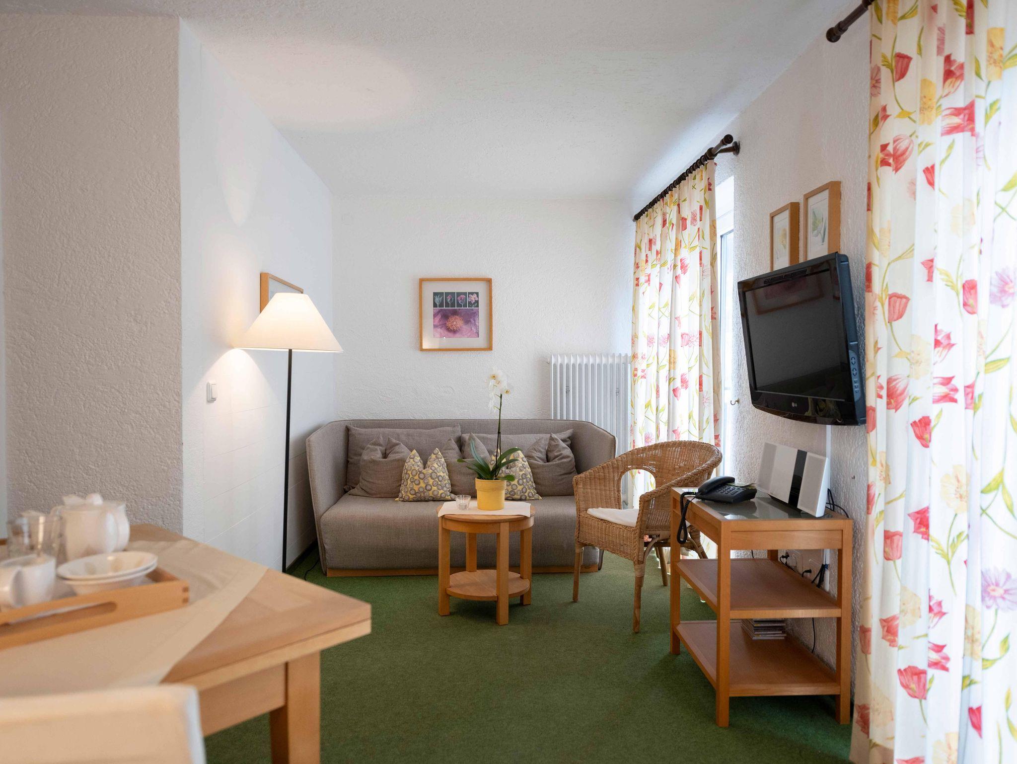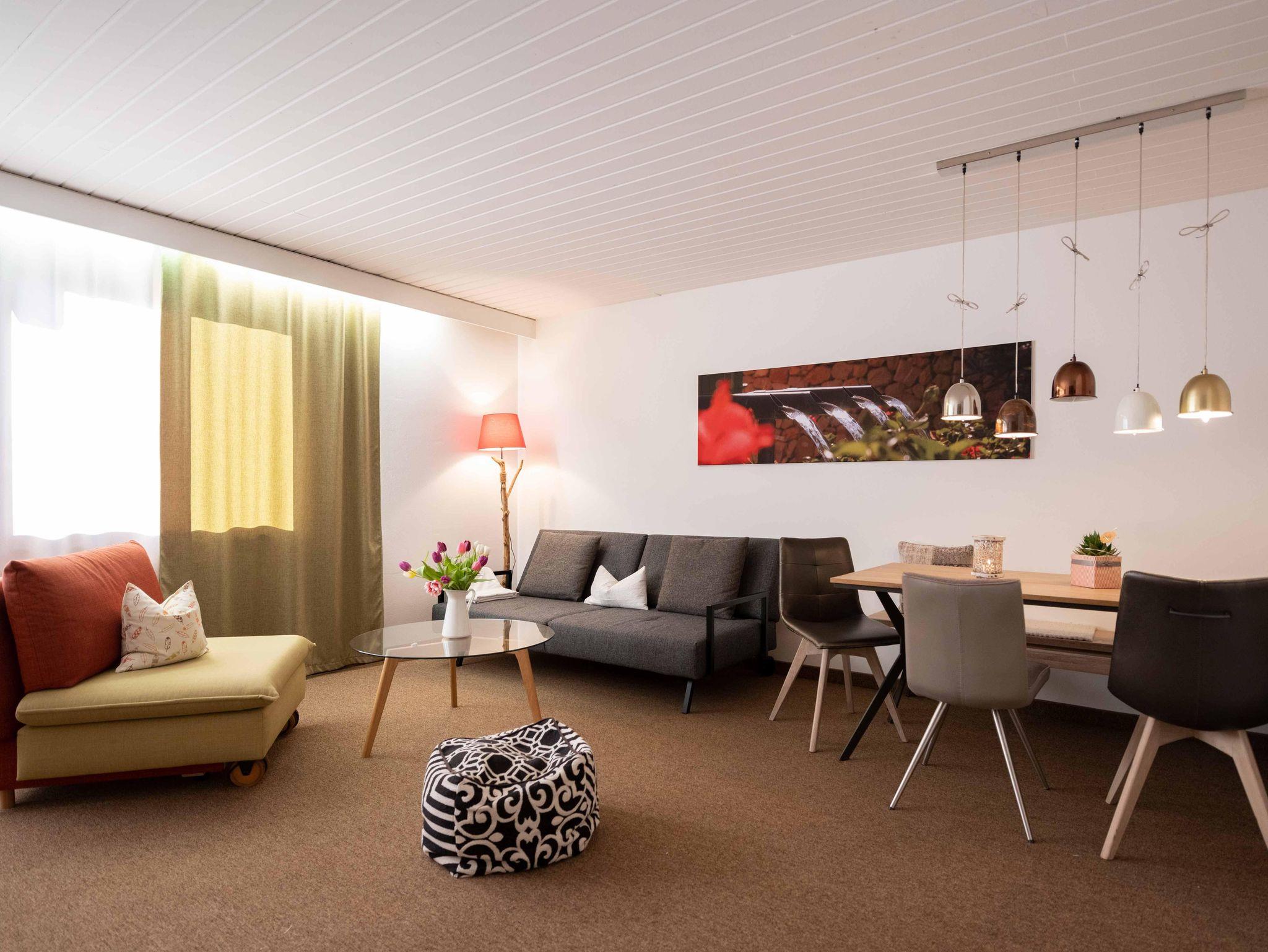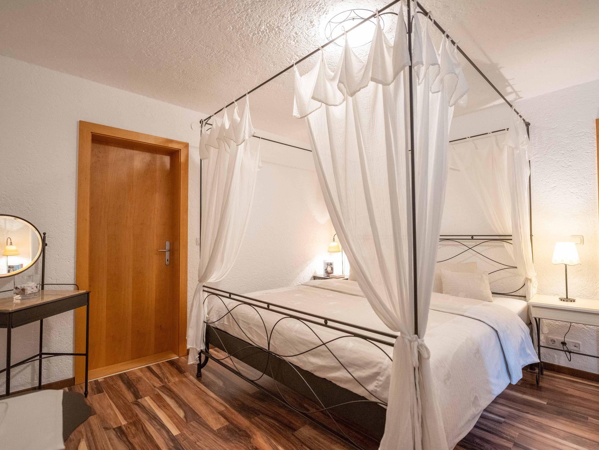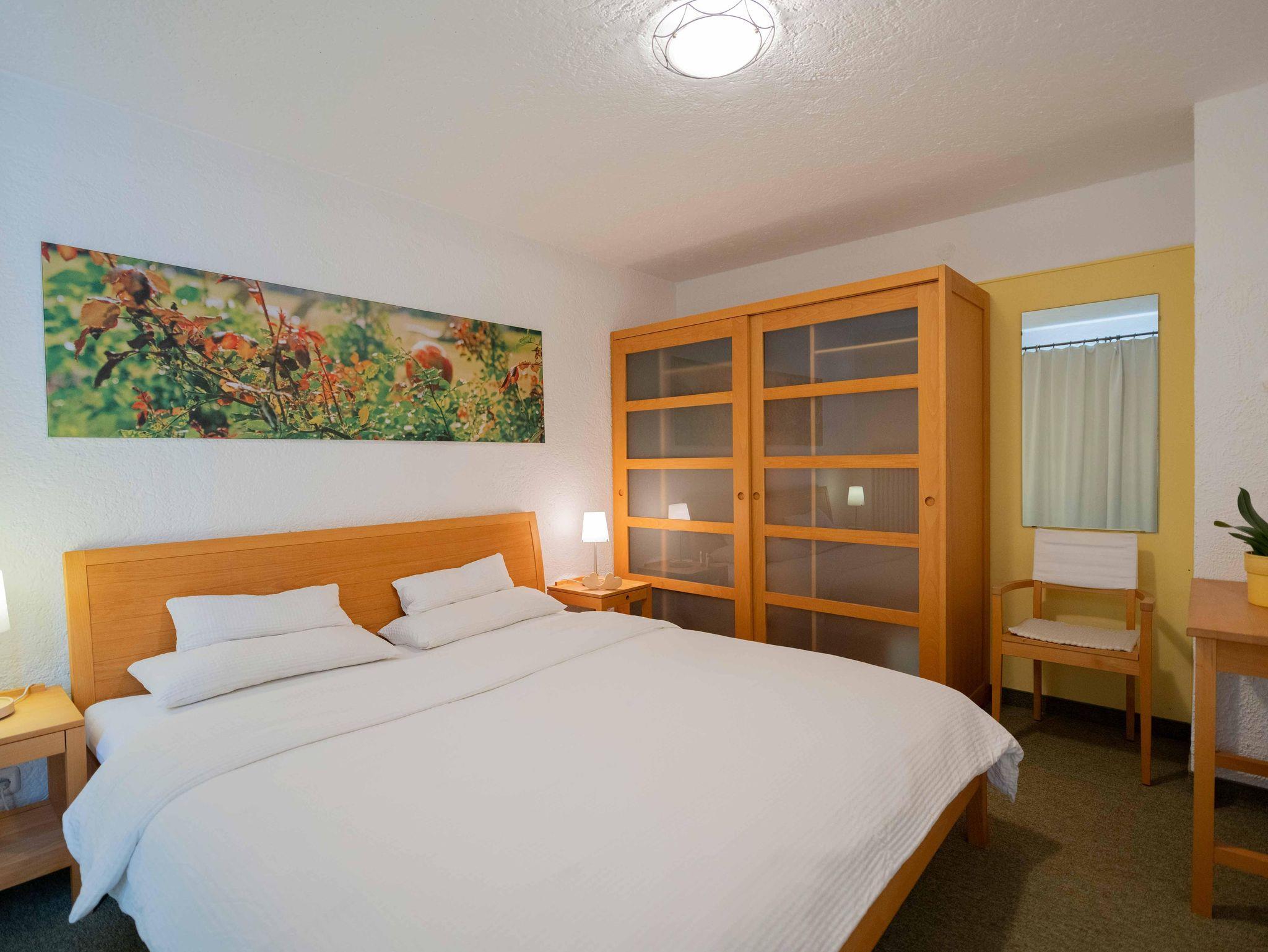 Ein gemütliches 2-Raum-Appartement mit einem getrennten Schlafraum und angrenzendem Wohn/Essraum (mit Doppelausziehcouch), komplett eingerichteter Küche, Dusche, WC, Sat-TV, Radio, Telefon/Modemanschluss, Safe, Balkon. Gerne auch mit reichhaltigem Frühstück.